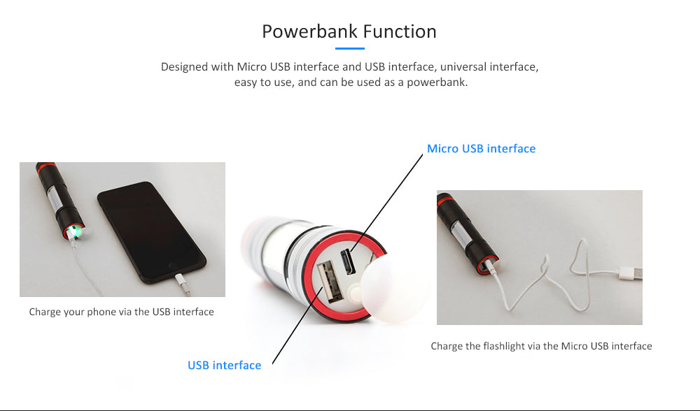 Yupard Portable Mini Powerbank Flashlight Long-range Glare Camping Fishing Riding Camping Lights