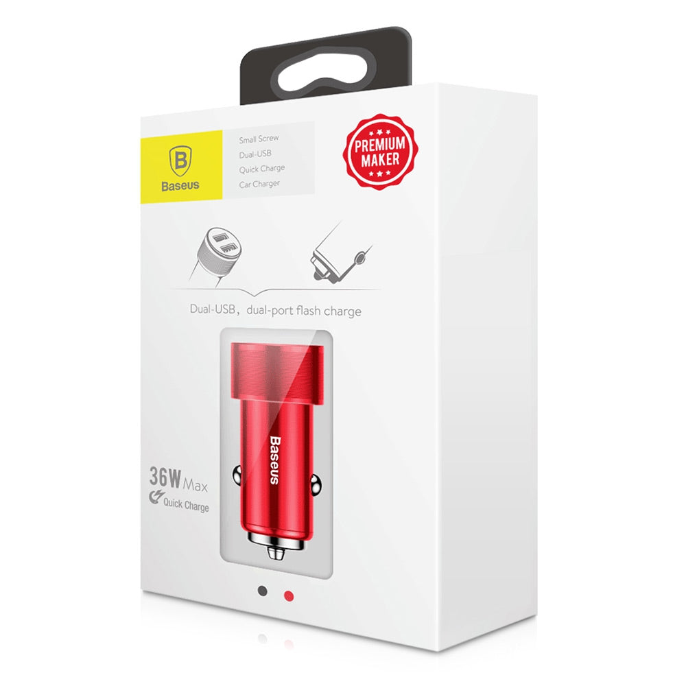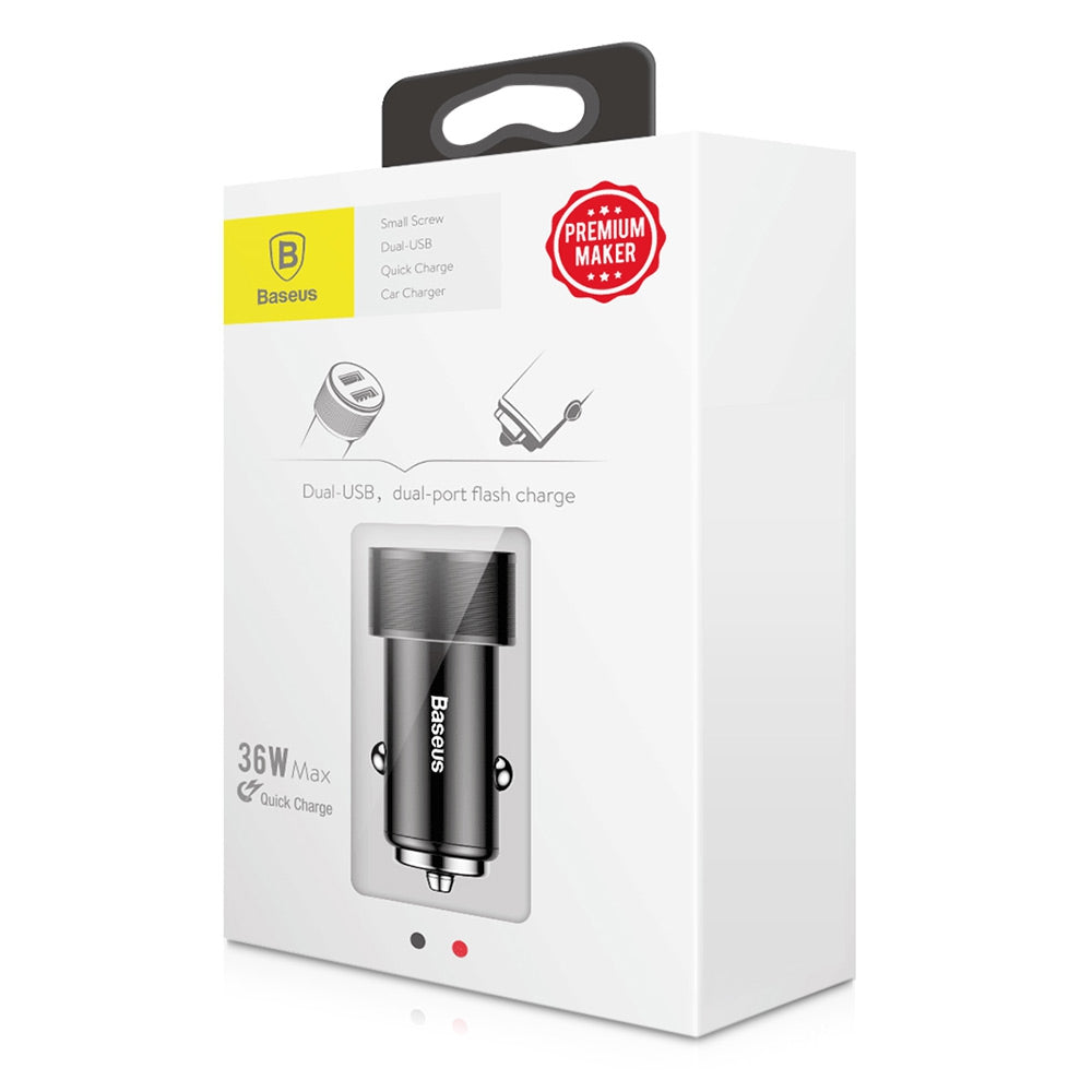 Baseus BSC - Cargador de coche USB dual QC3.0 con tornillo pequeño C15K