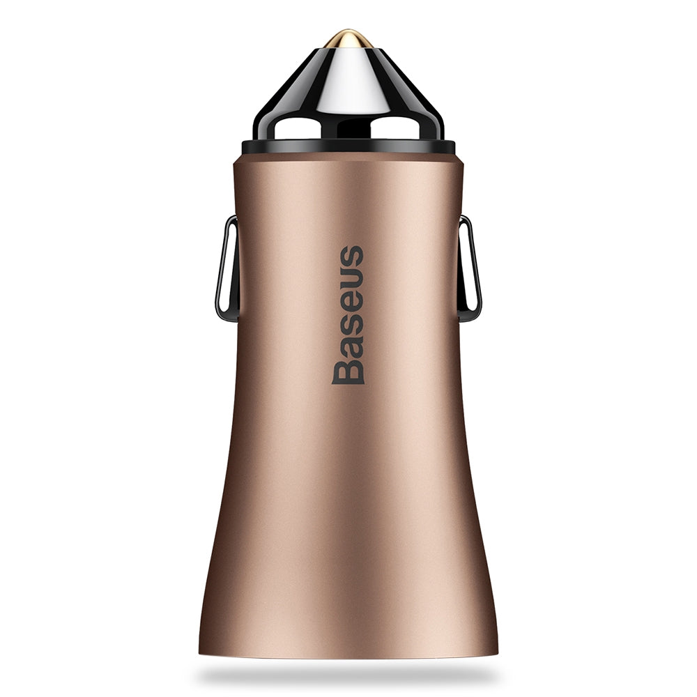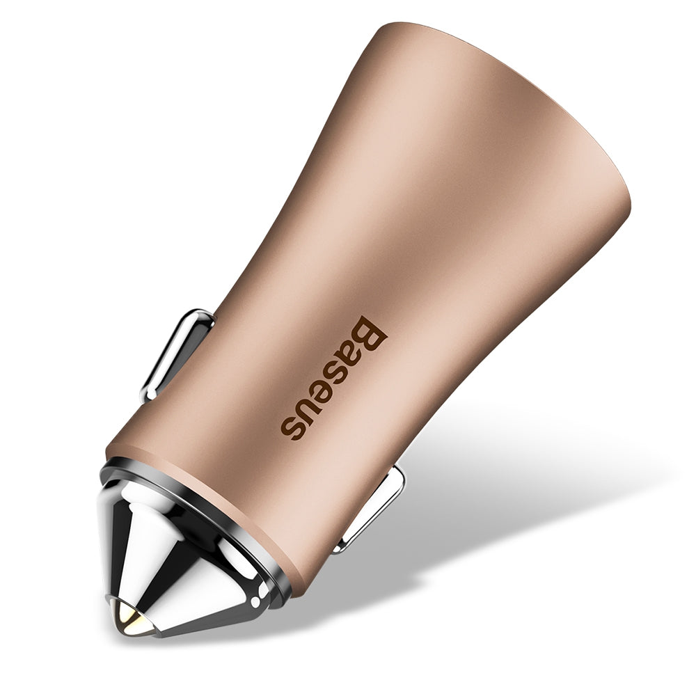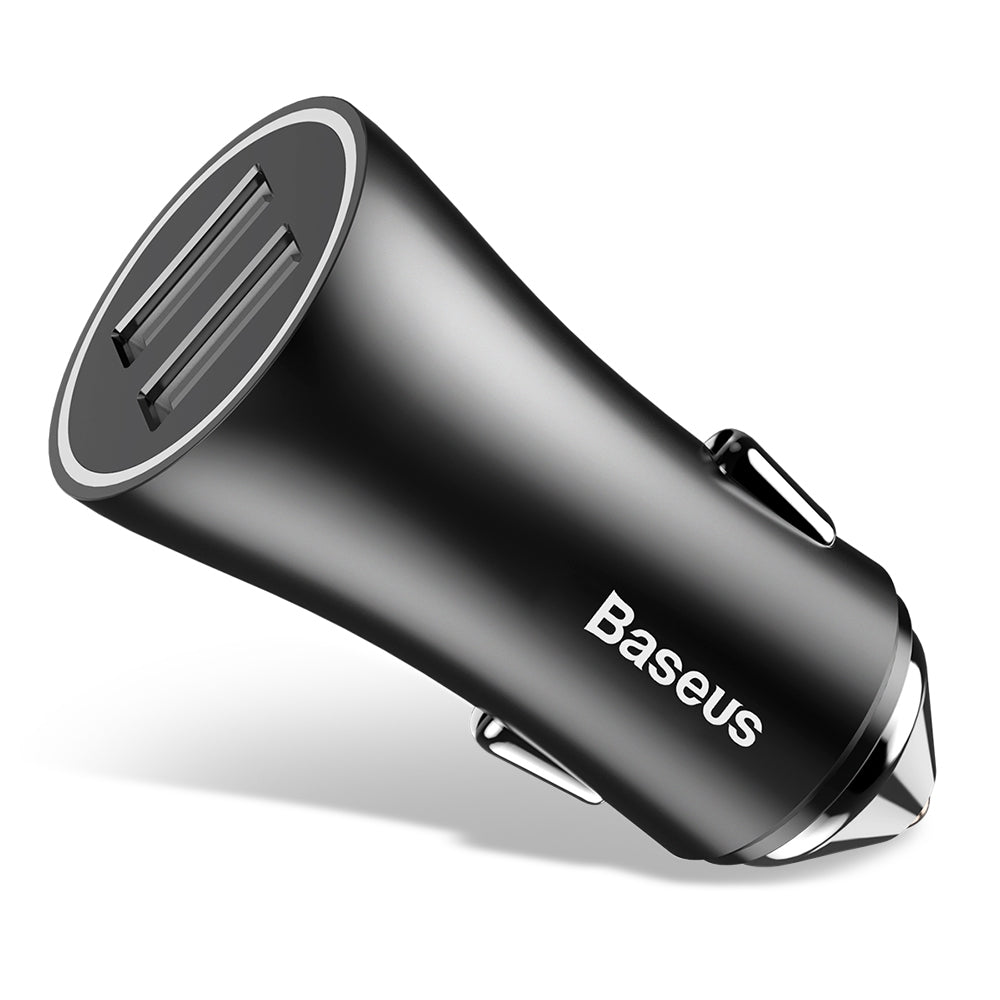 Cargador inteligente para coche Baseus Golden Contactor de 2,4 A con puerto USB dual
