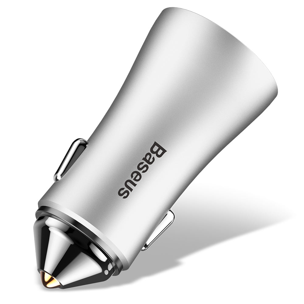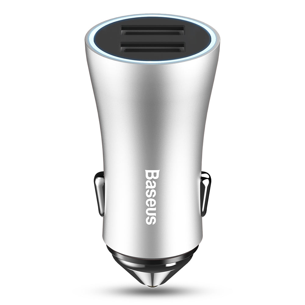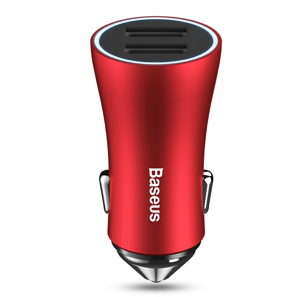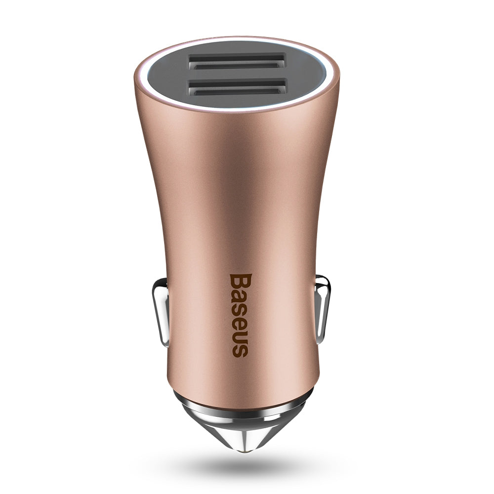Cargador inteligente para coche Baseus Golden Contactor de 2,4 A con puerto USB dual