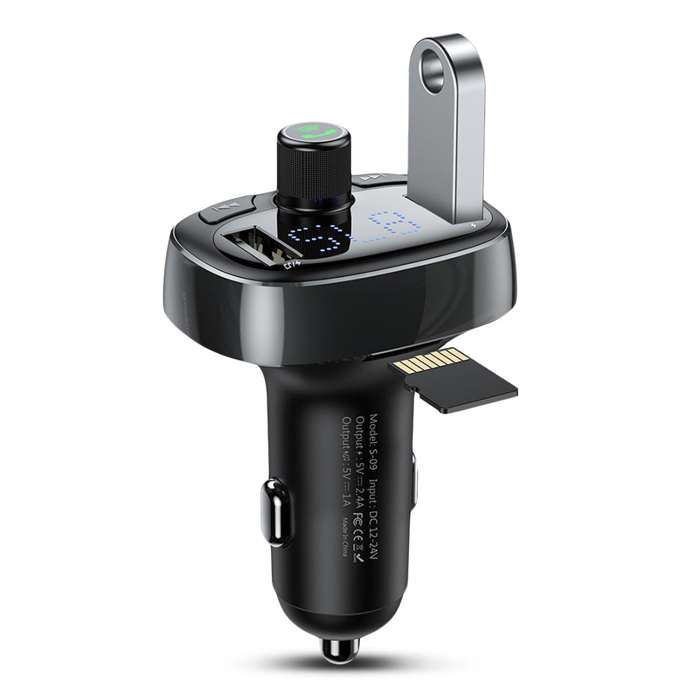 Baseus S-09 Cargador de coche con Bluetooth V4.2, MP3 y doble USB con pantalla LED en forma de T