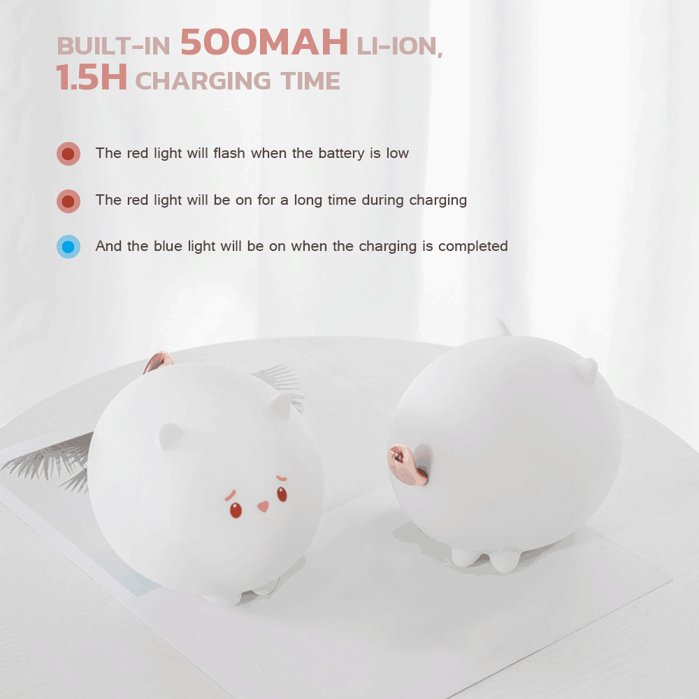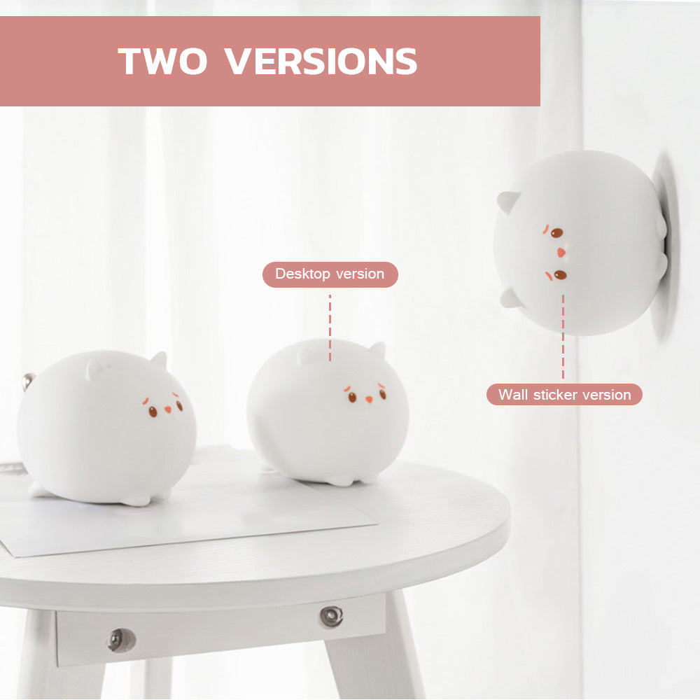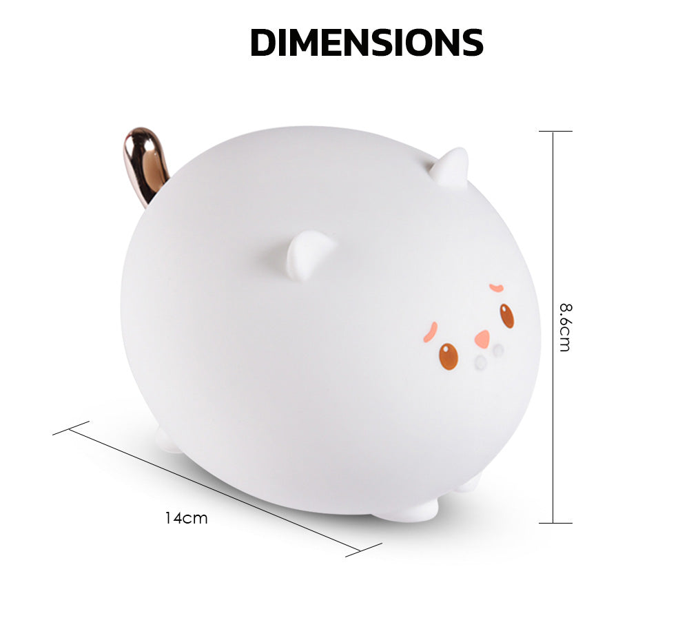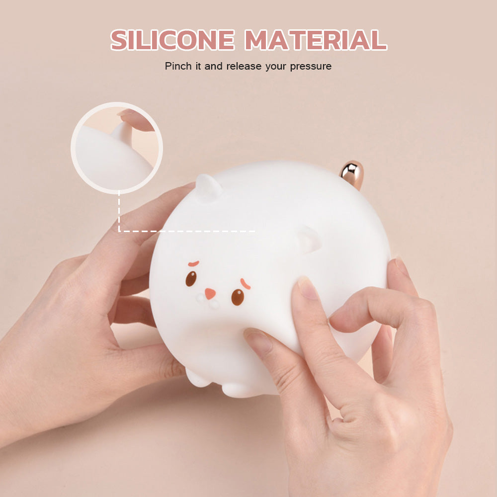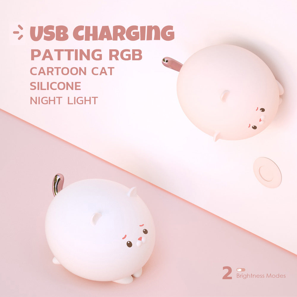 Veilleuse à chargement USB en silicone avec motif chat de dessin animé RVB