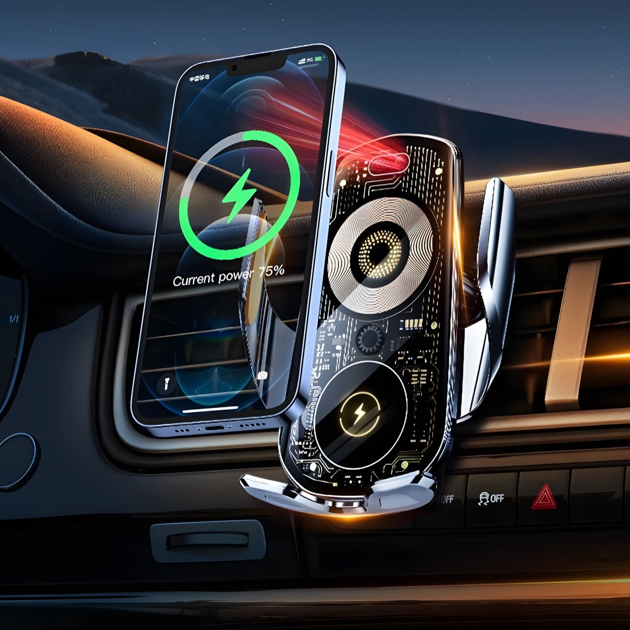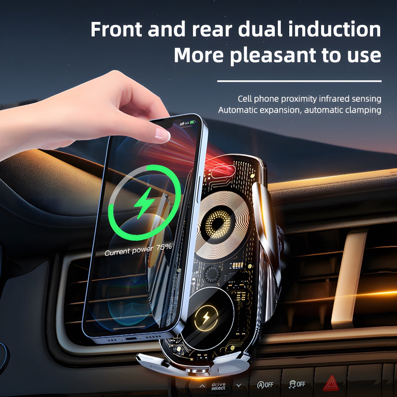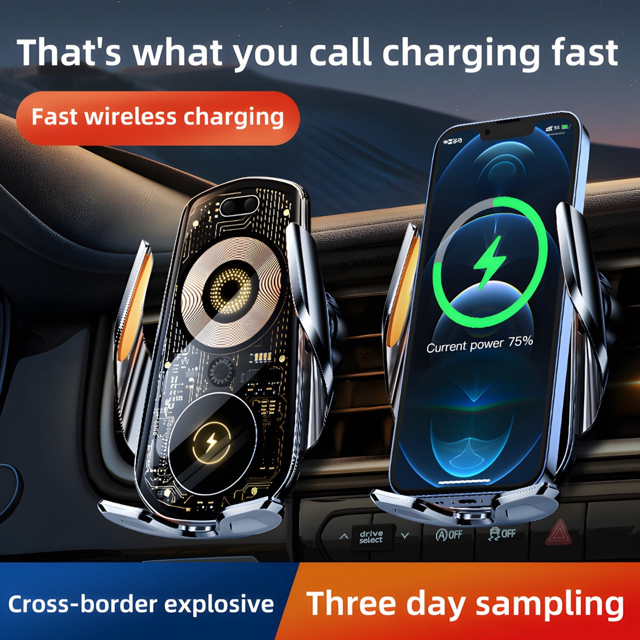 15W Fast Transparent Wireless Car Charger Mount - Automatic Clamping, Power-Off Release, Car Navigation Holder with Wireless Charging