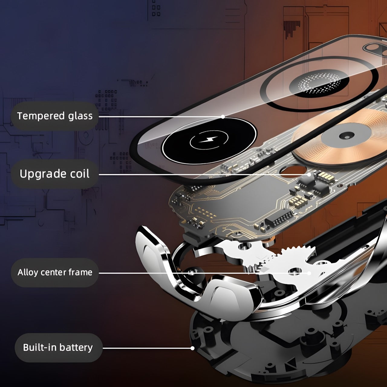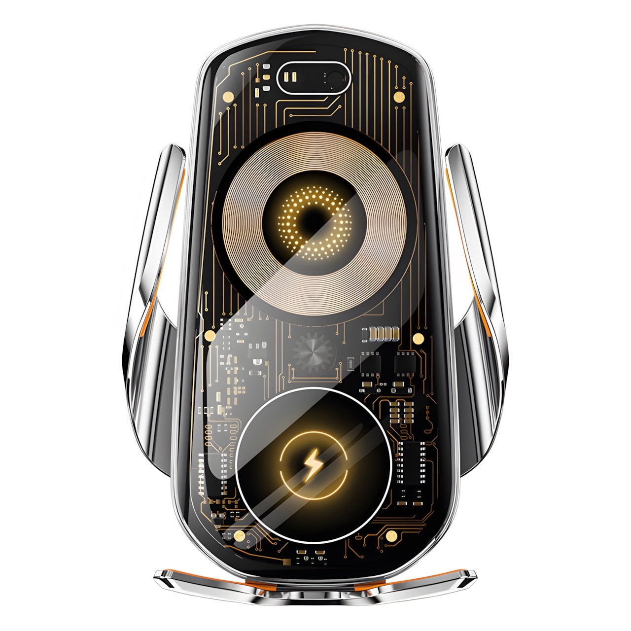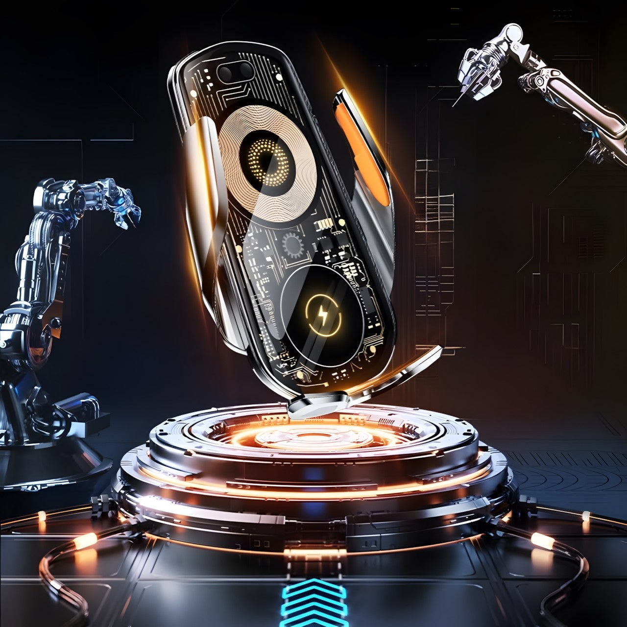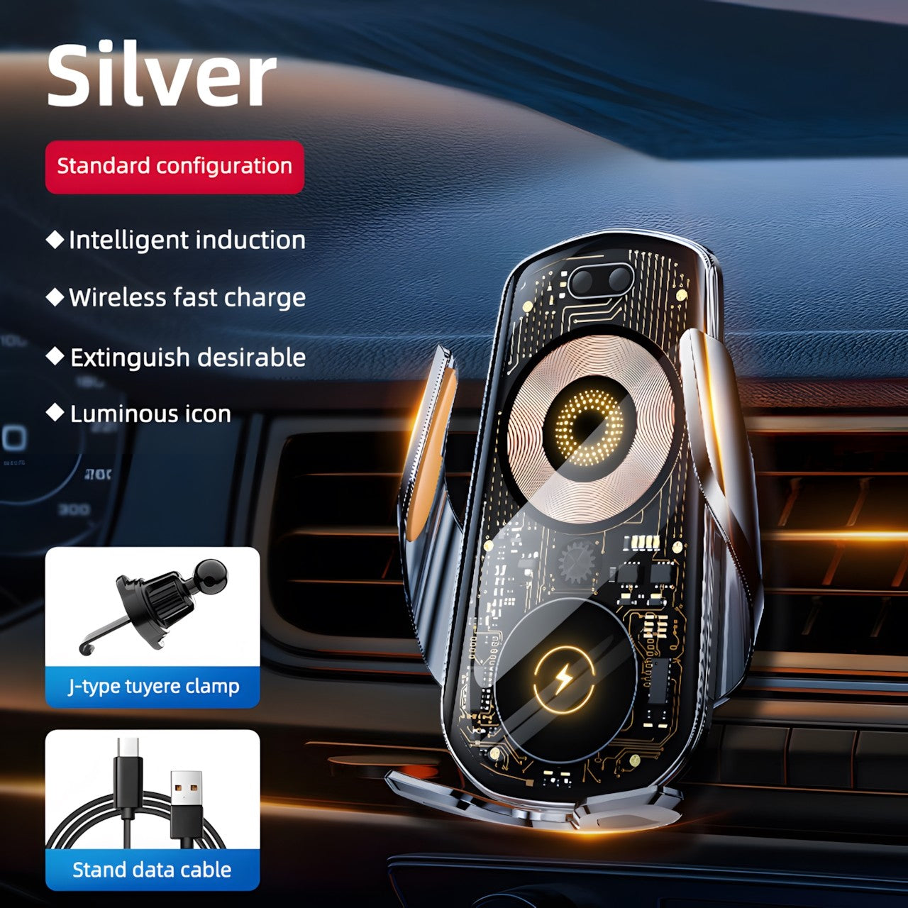 15W Fast Transparent Wireless Car Charger Mount - Automatic Clamping, Power-Off Release, Car Navigation Holder with Wireless Charging