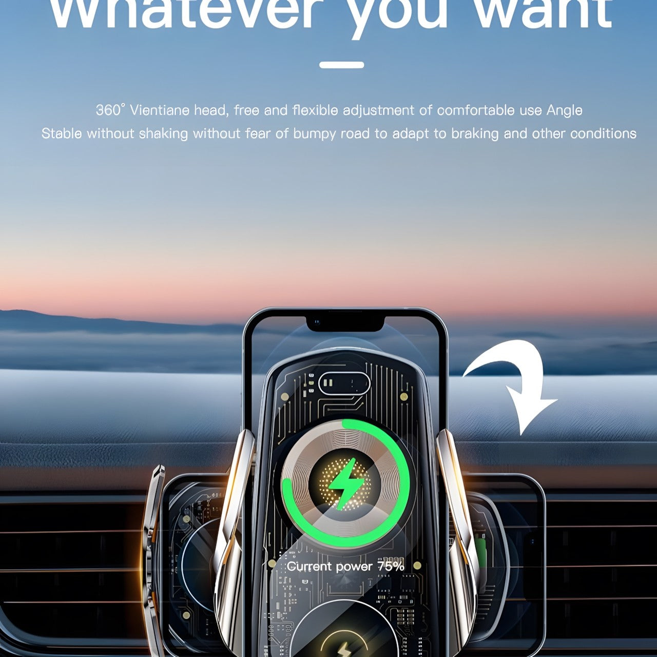 High-Speed Charging: Equipped with 15W power, this car charger mount offers quick wireless charging for your smartphone, ensuring you stay connected even on long drives.