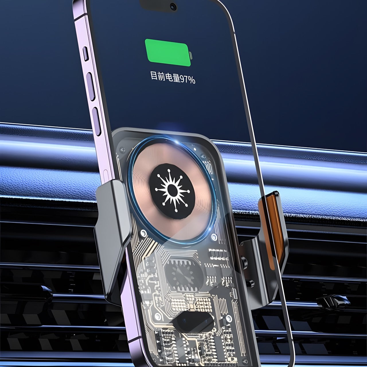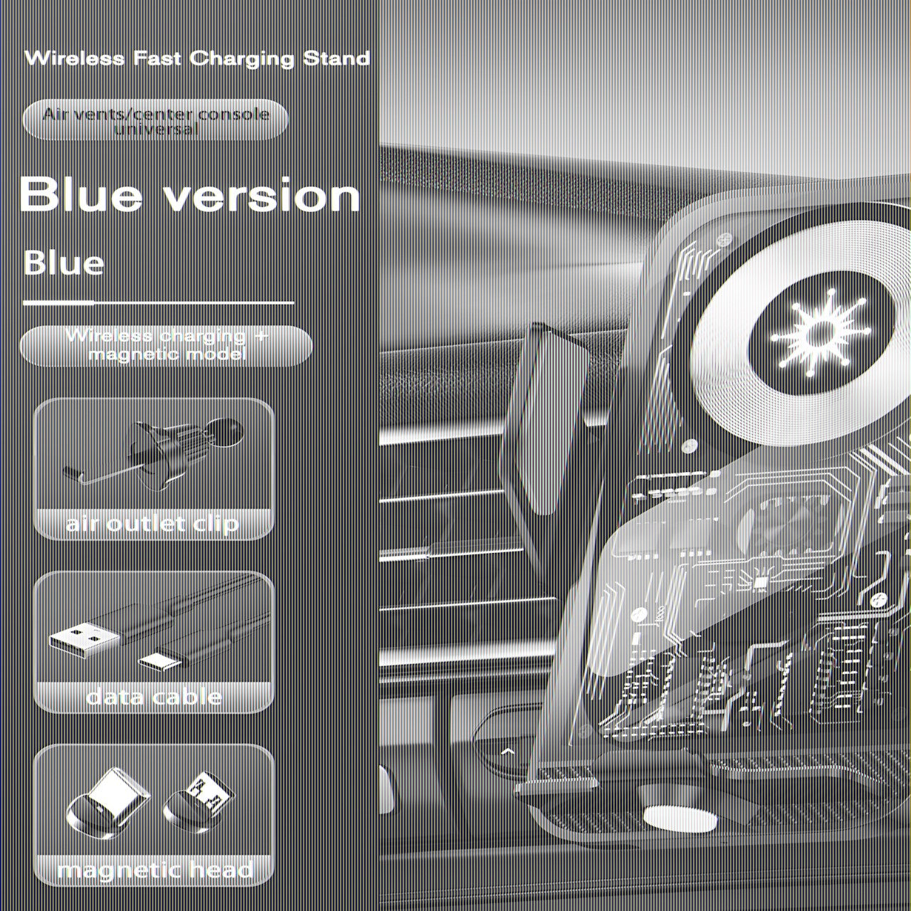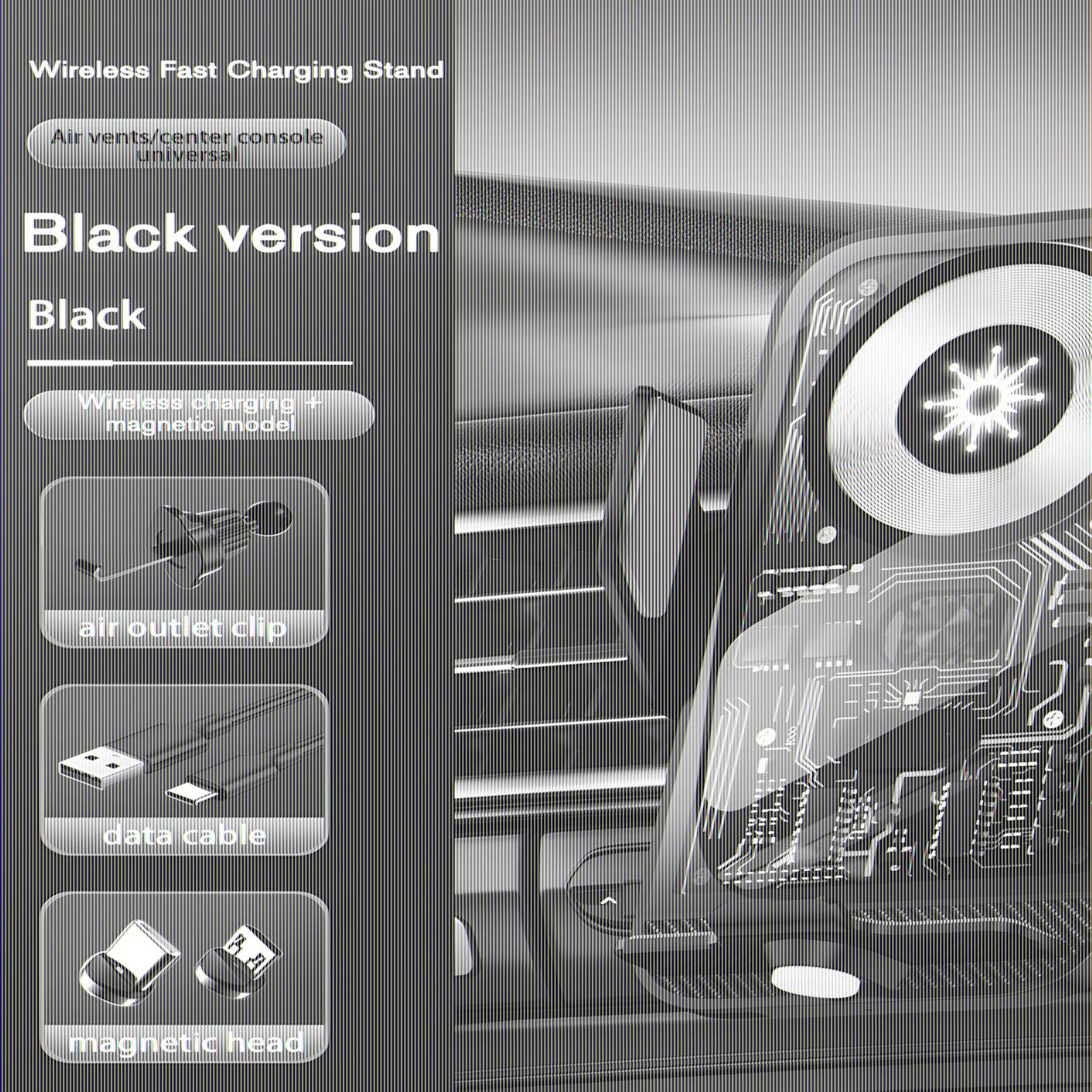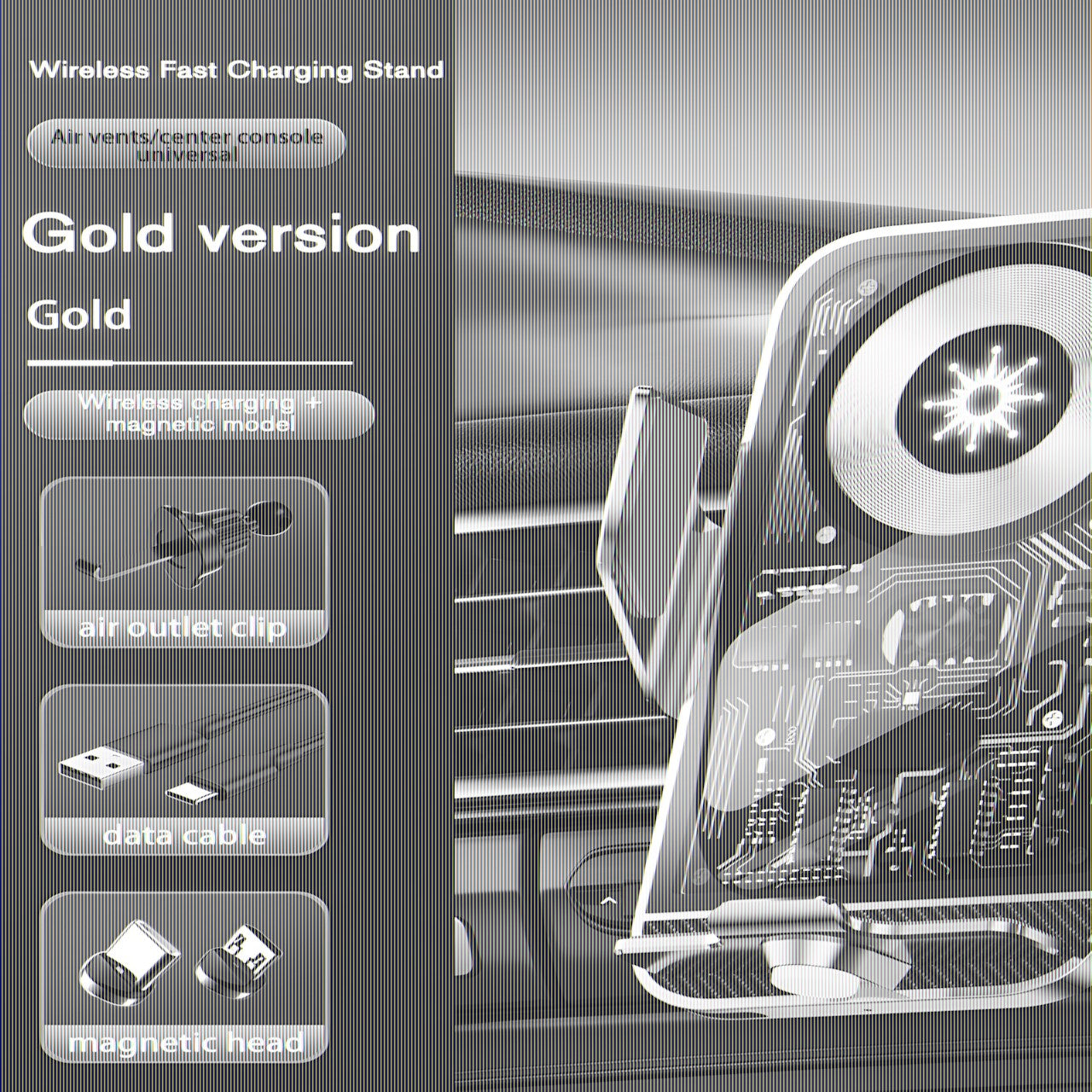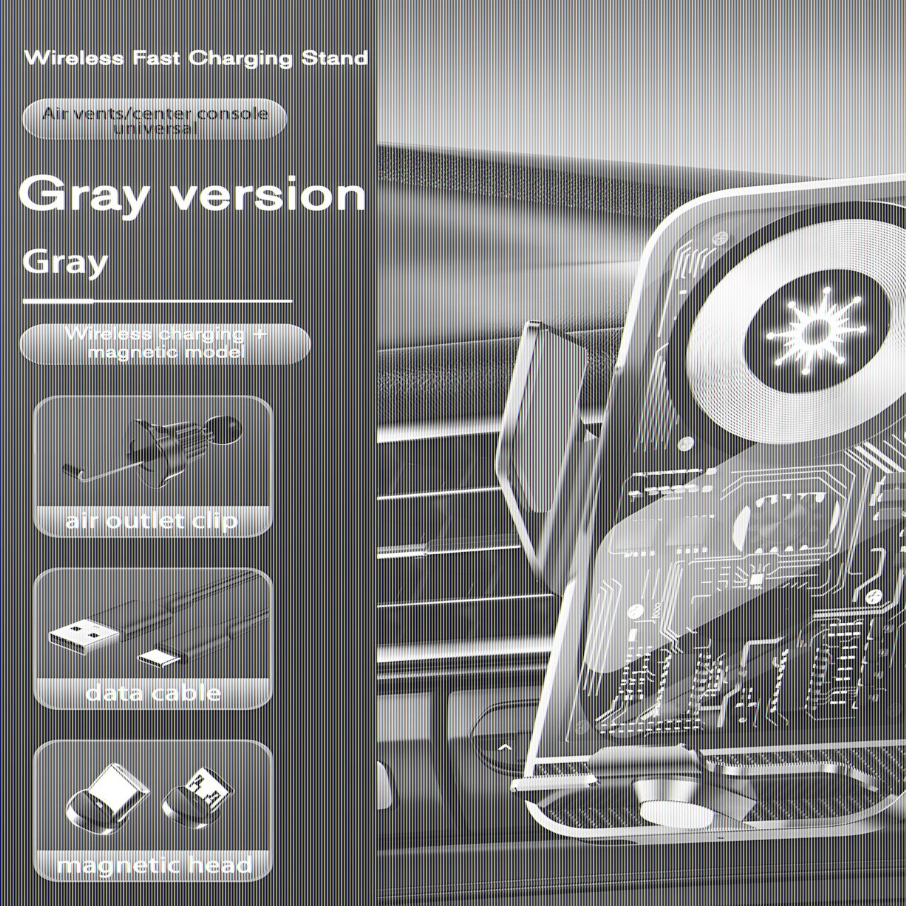 15W Fast Transparent Wireless Charging Car Mount, Auto-Sensing Clasp, Power-Off Release, Car Navigation Stand with Wireless Charging