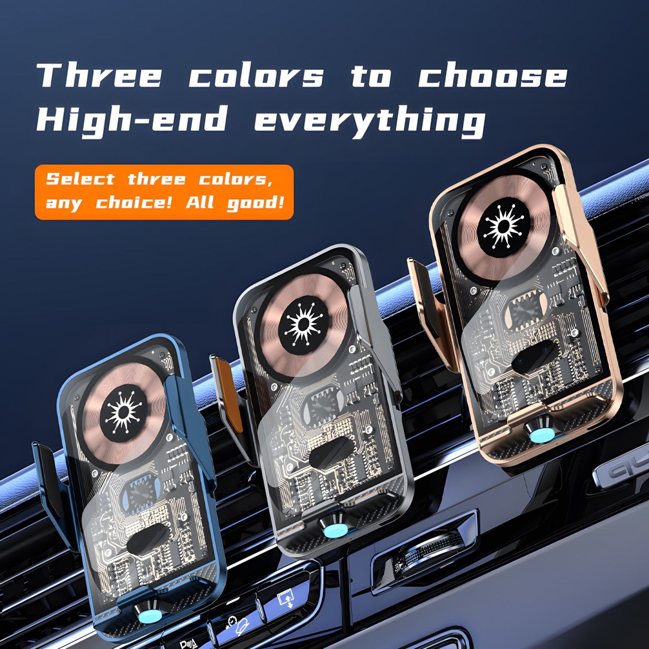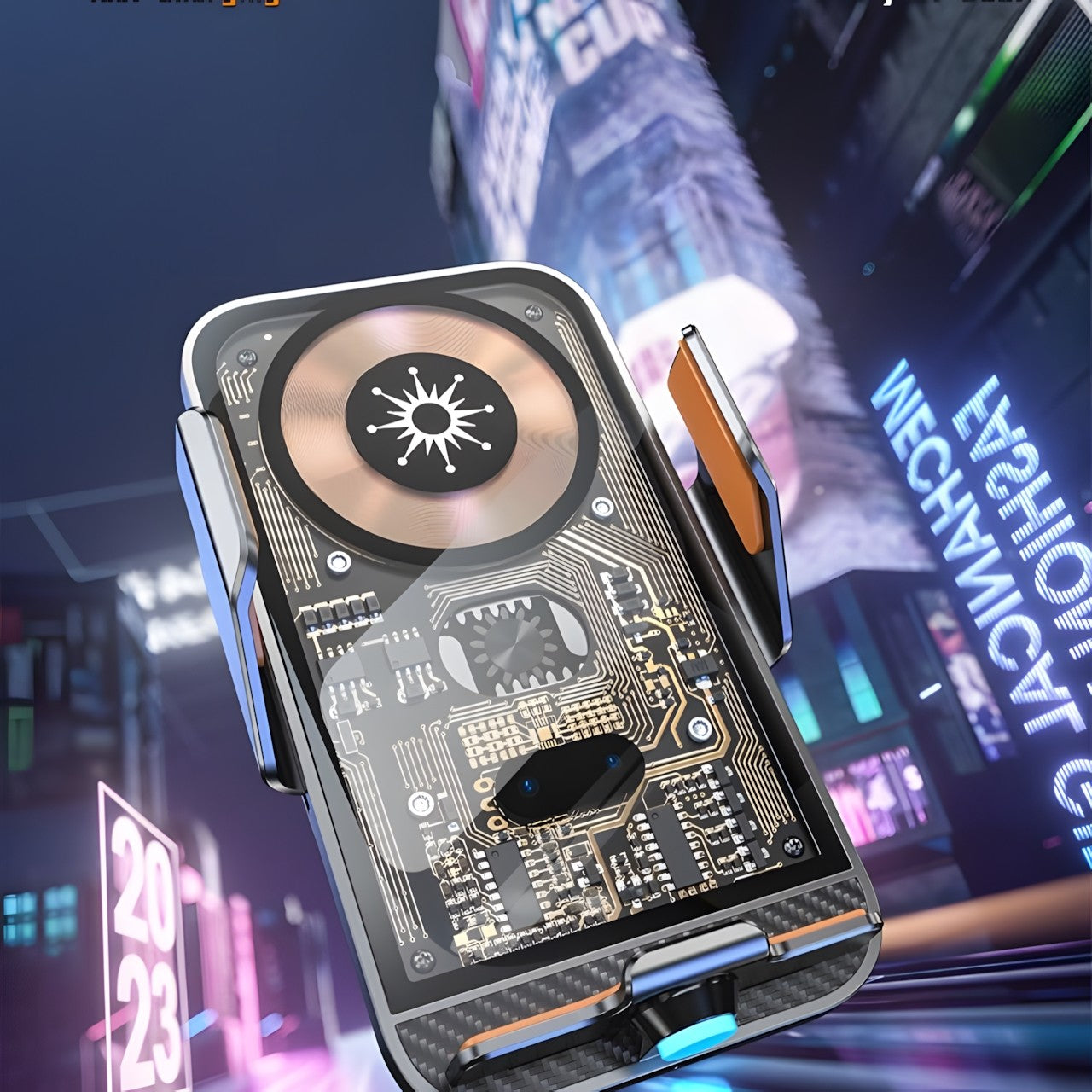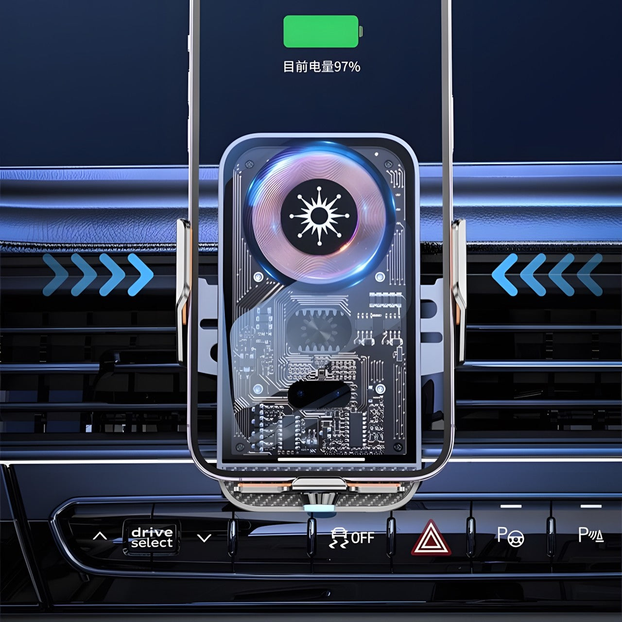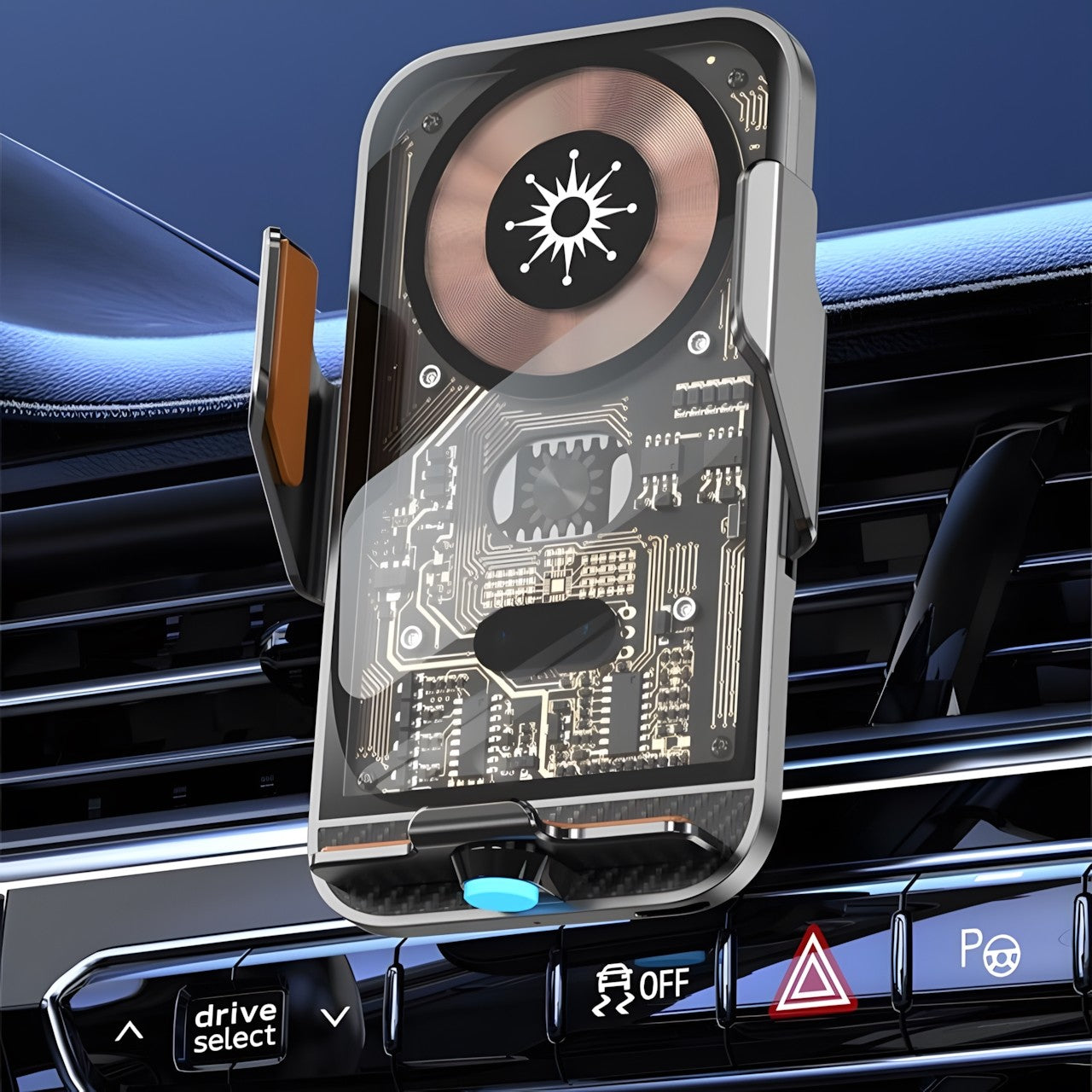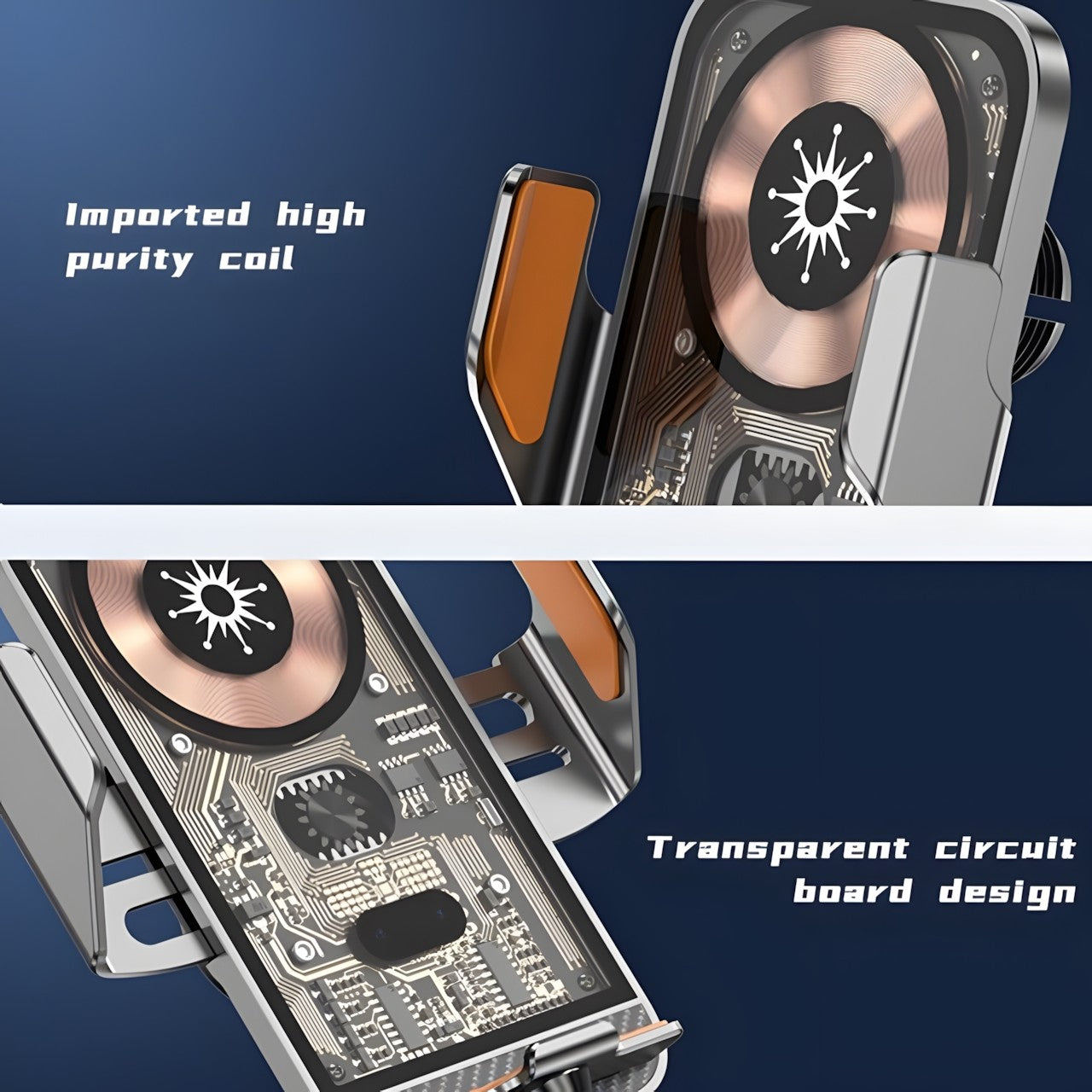 15W Fast Transparent Wireless Charging Car Mount, Auto-Sensing Clasp, Power-Off Release, Car Navigation Stand with Wireless Charging