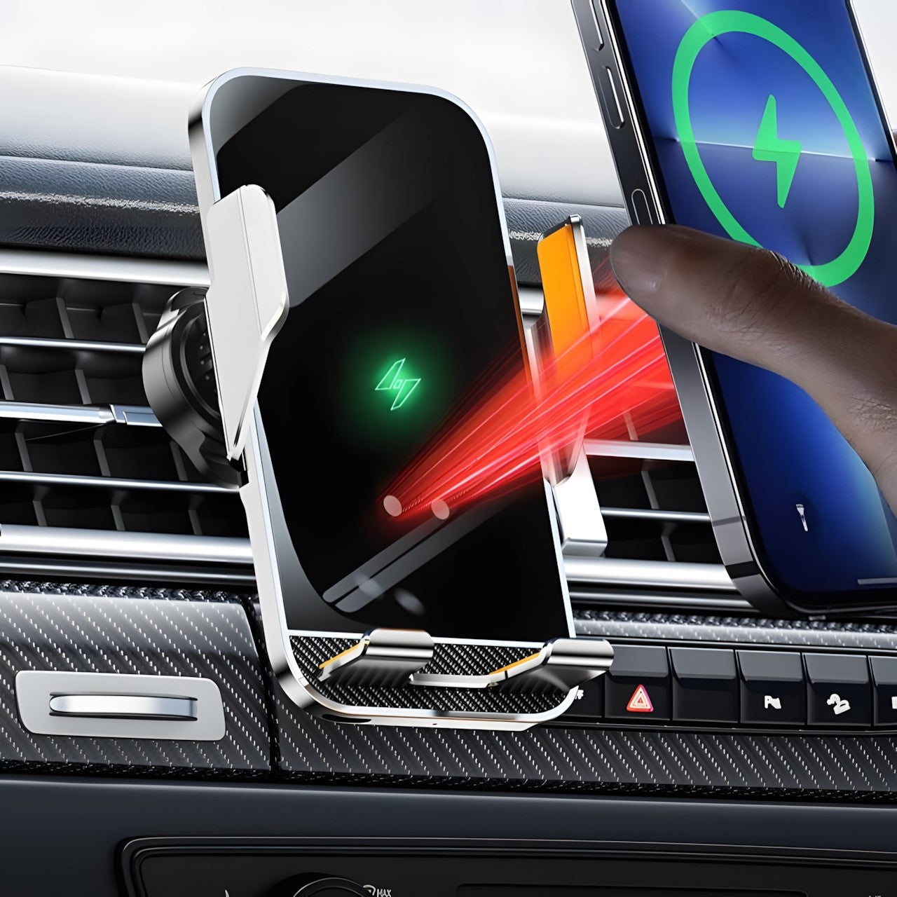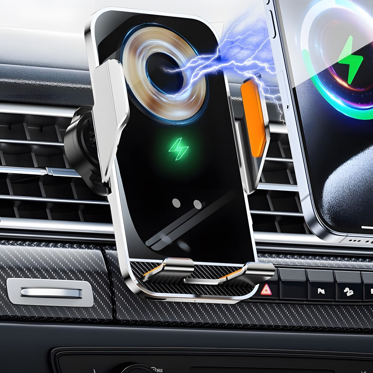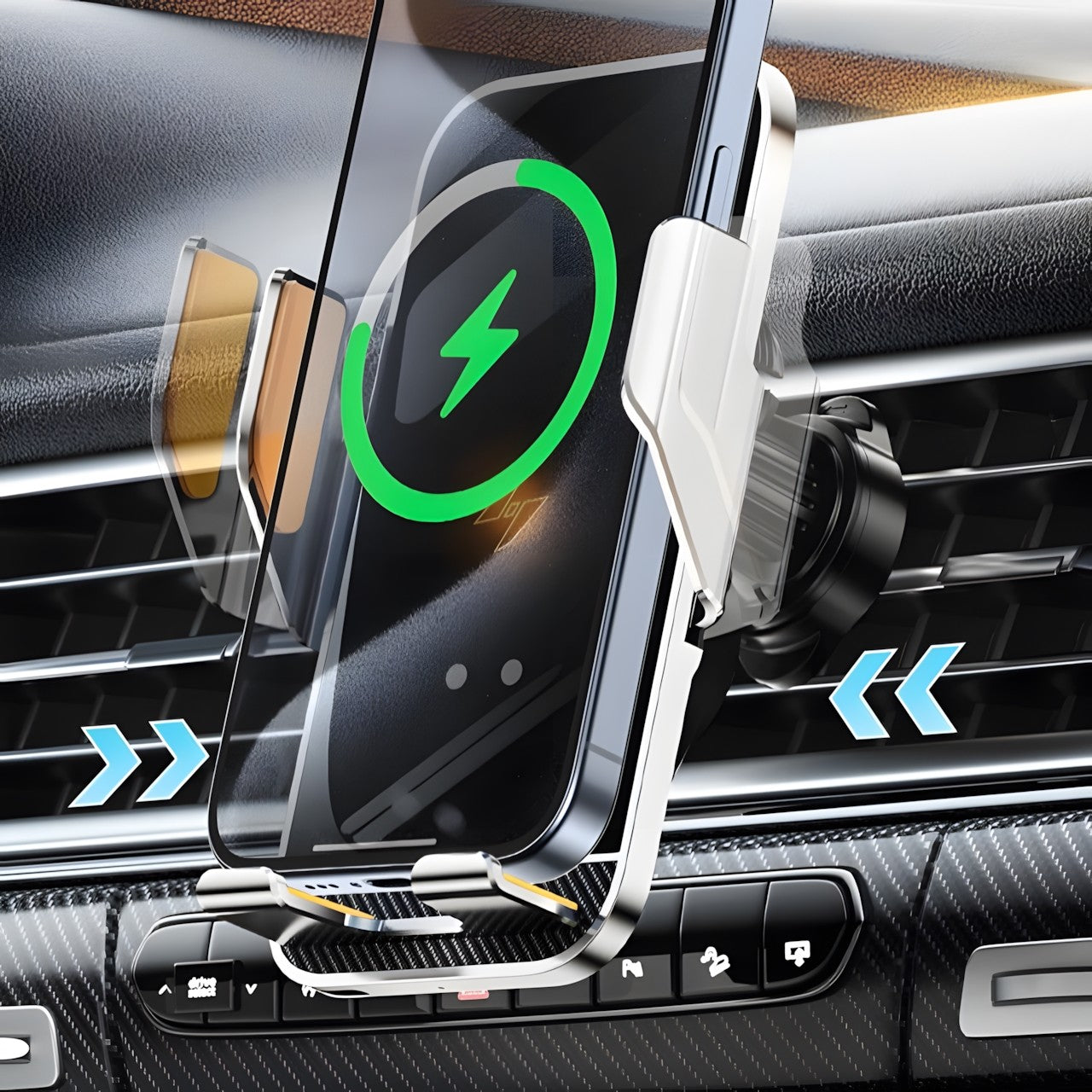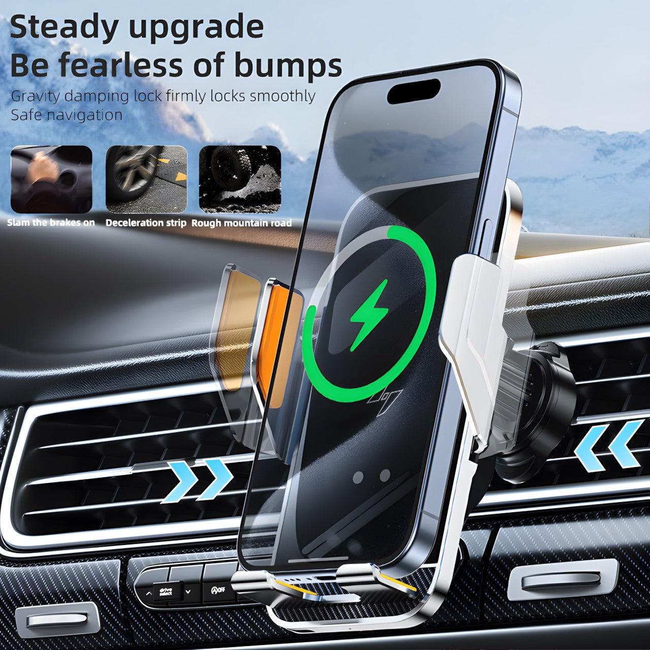 15W Fast Wireless Charging Car Mount, Auto-Sensing Operation, Power-Off Release, Car Navigation Stand with Wireless Charging