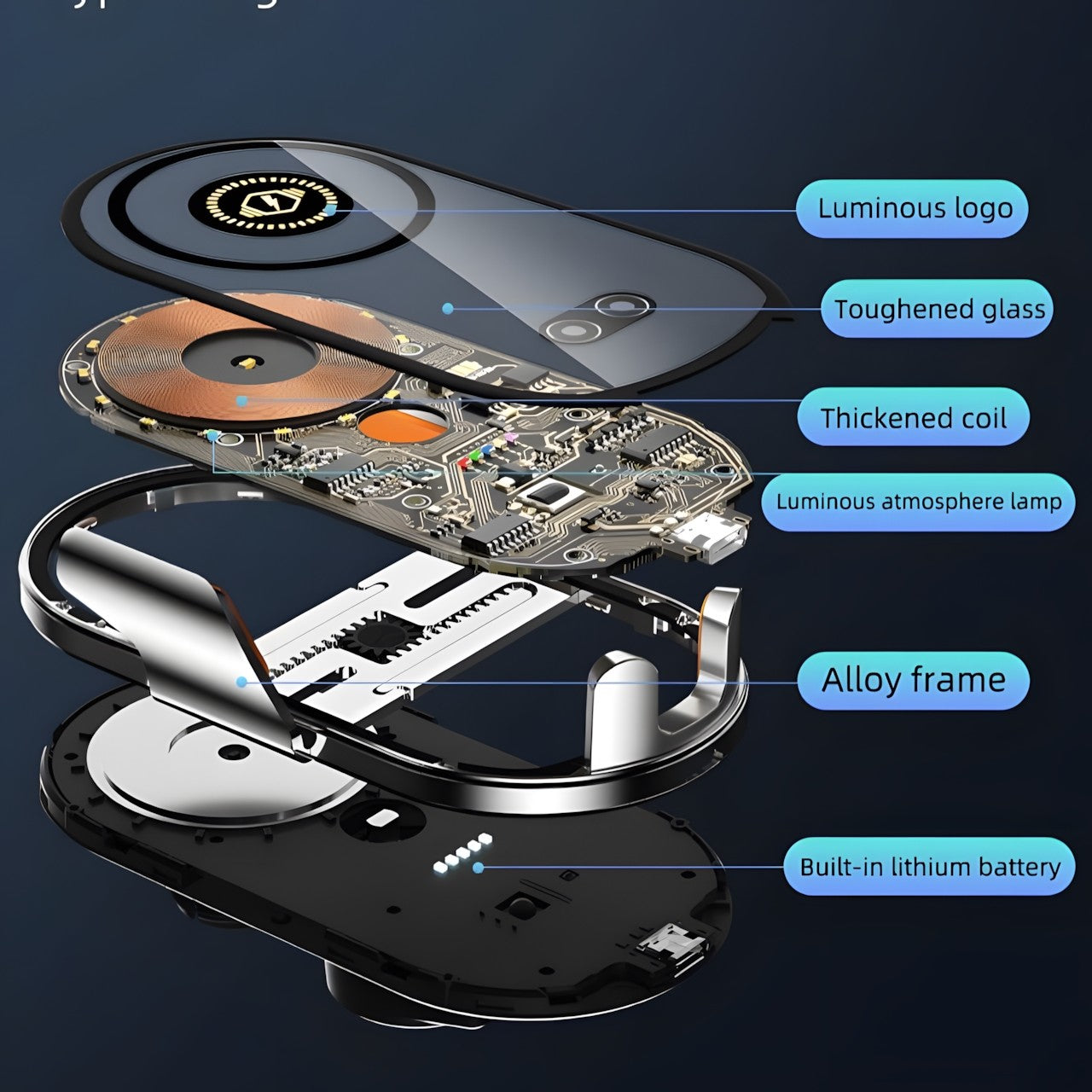 Visual transparent design/wireless charging, magnetic charging/flameout to pick up the machine/luminous LOGO luminous atmosphere light/automatic induction, electric