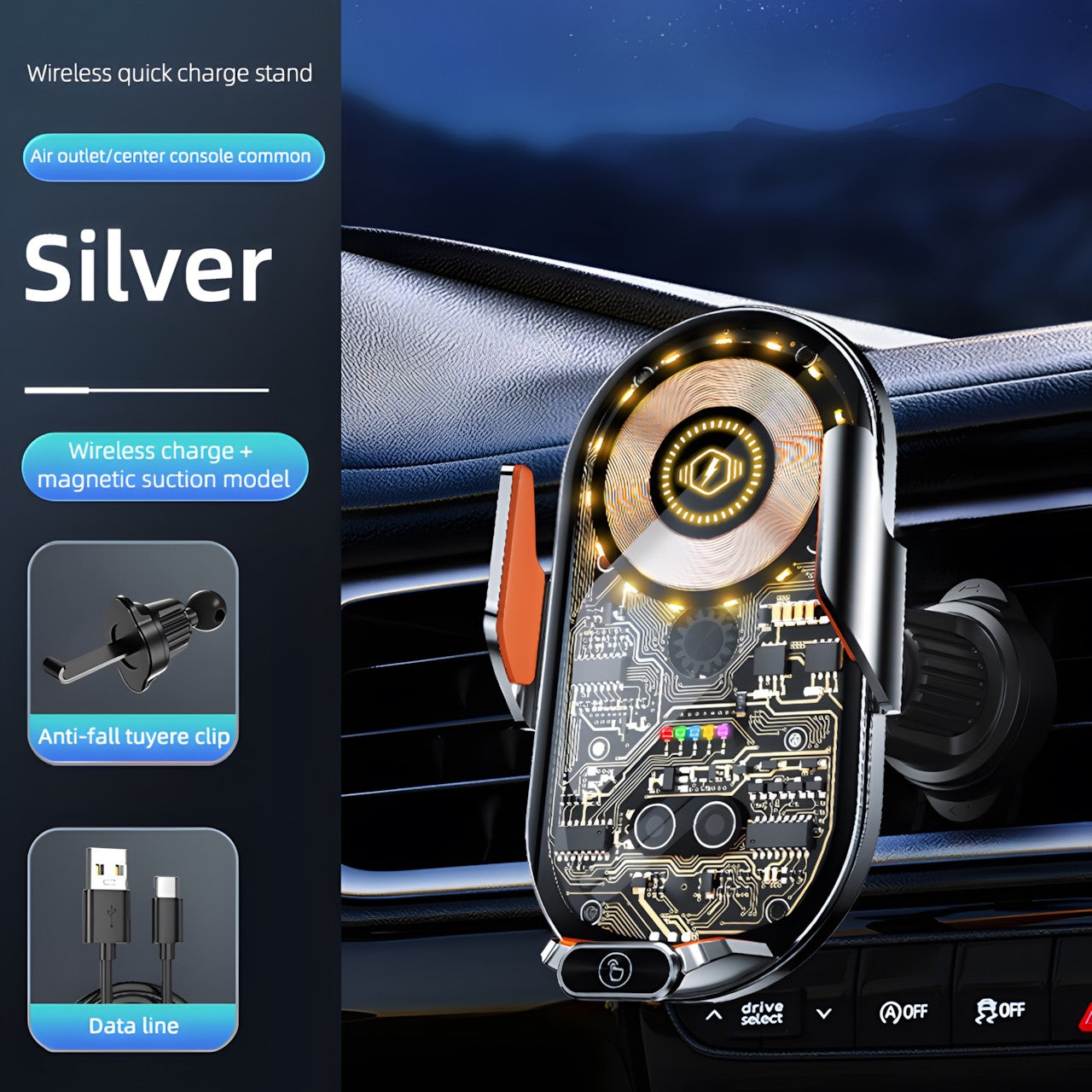 Dual Functionality: Perfectly combines a wireless charger and a car navigation stand, offering robust support and fast charging for most smartphones, enhancing your driving experience with practicality and style.