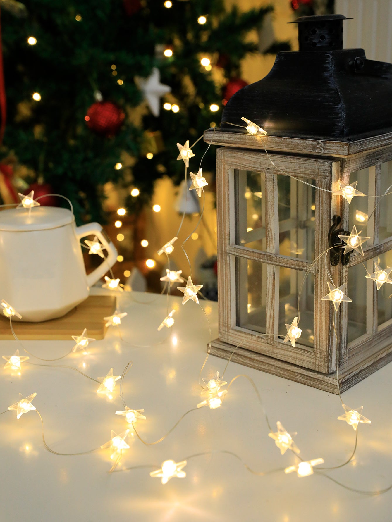 1pc HEEMUUM Starry Night Decoration Light - Modern Plastic Pink Star String Lights for Christmas, Weddings, Parties, Home & Fireplace Decor - Battery-Free Indoor/Outdoor String Lights with Switch Control, Christmas Lights, Party Ambiance Lighting, Elegant