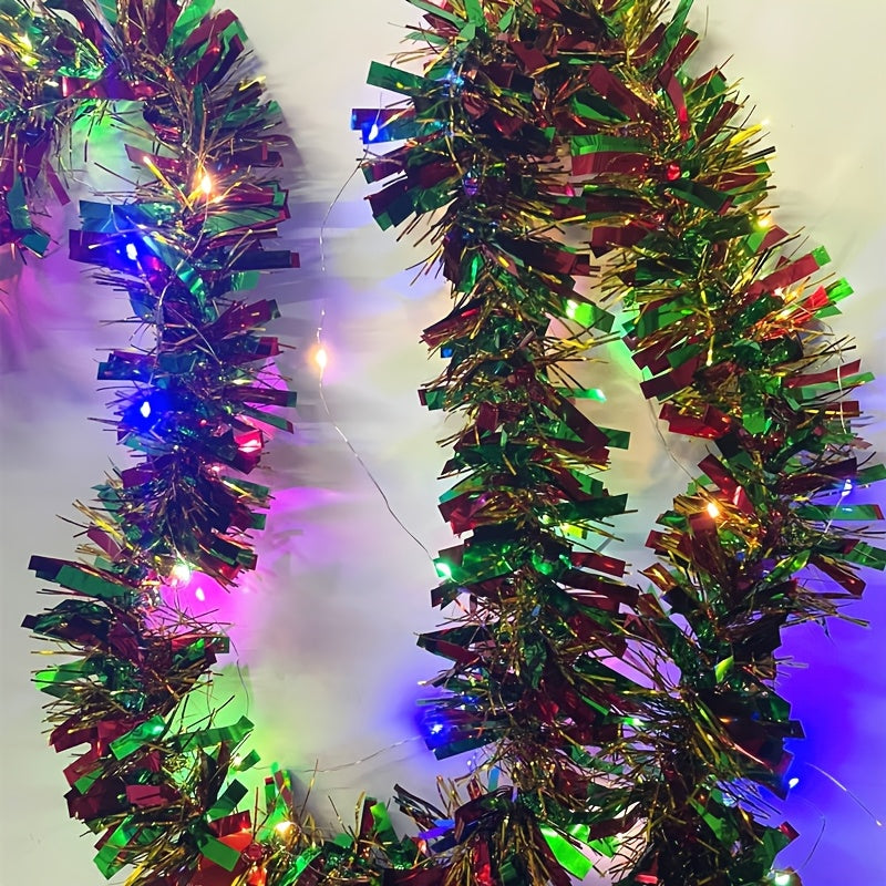 1Set 30LED Dingion Christmas Tinsel Garland Metallic Shinny with Lights Tree Thick Hanging Decorations for Xmas Party Indoor (Without Battery) LED Lighted Christmas Tinsel Garland