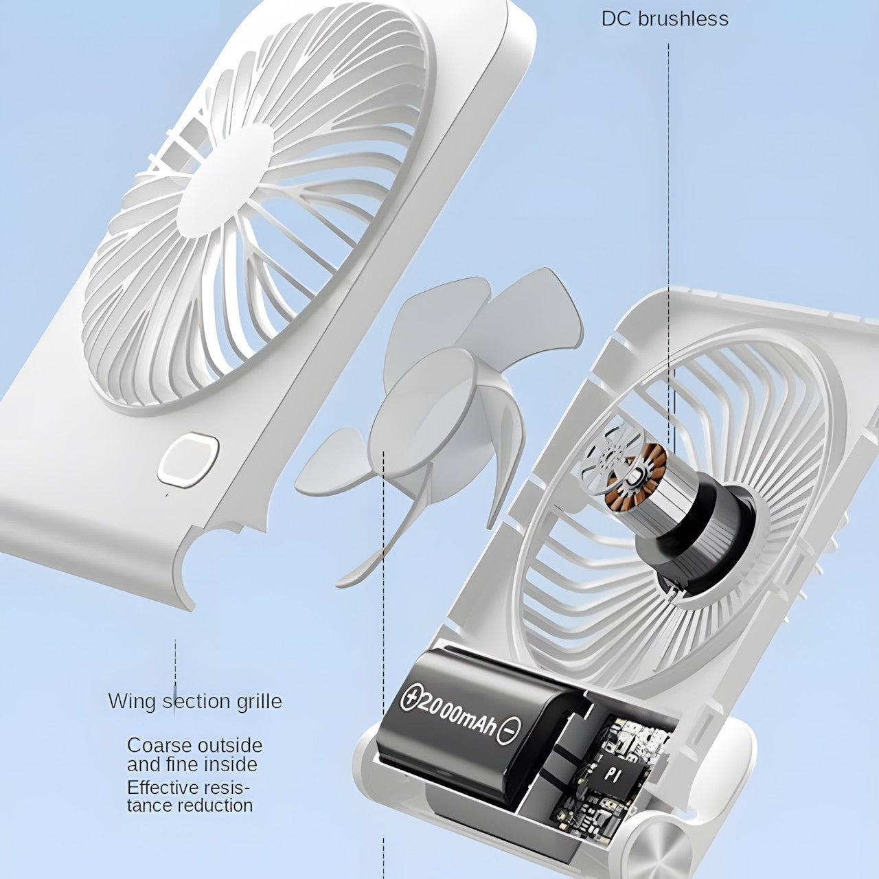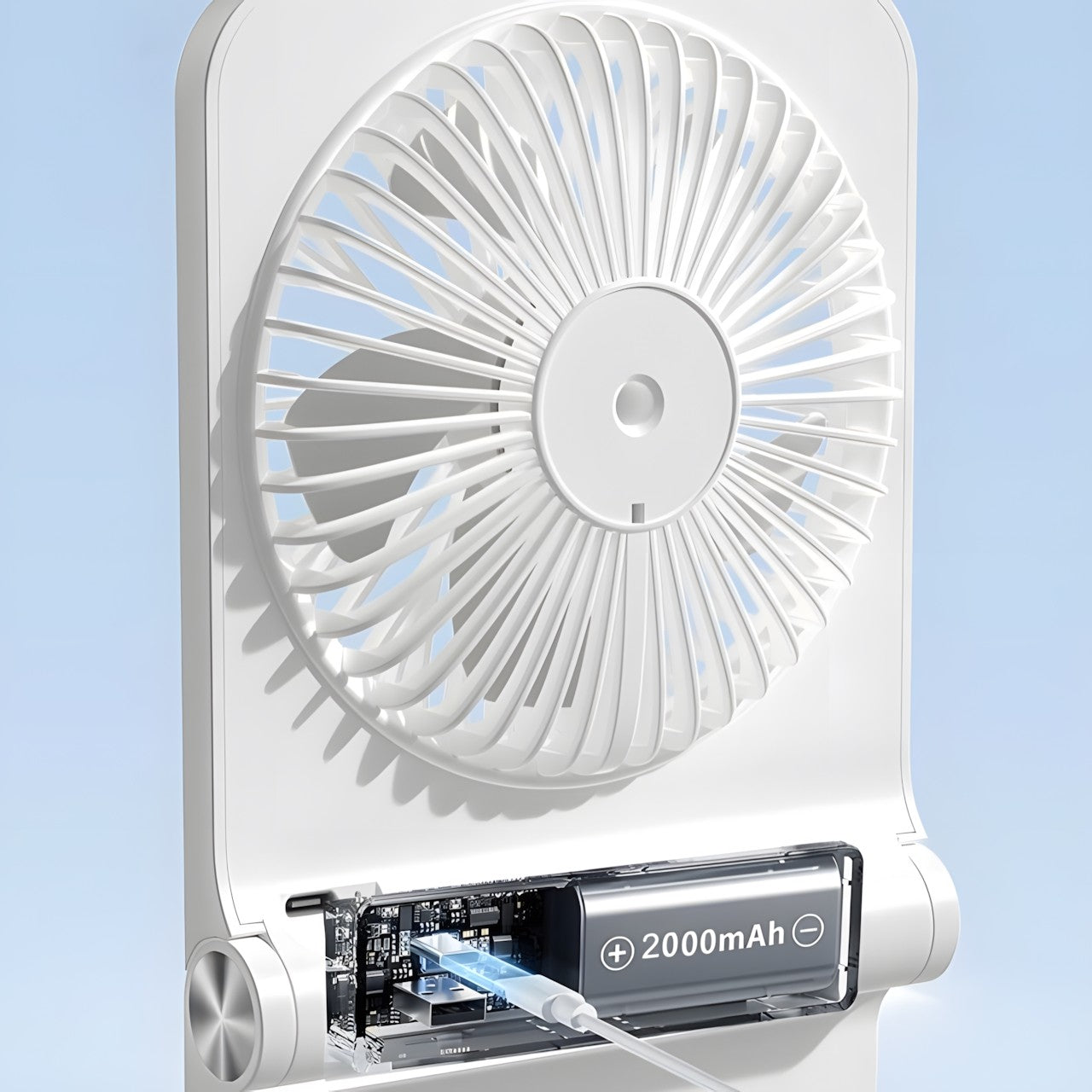 2,000mAh Battery for Extended Use: Equipped with a 2,000mAh rechargeable battery, this fan provides long-lasting cooling performance. Enjoy the freedom of cordless operation and stay cool wherever you go.