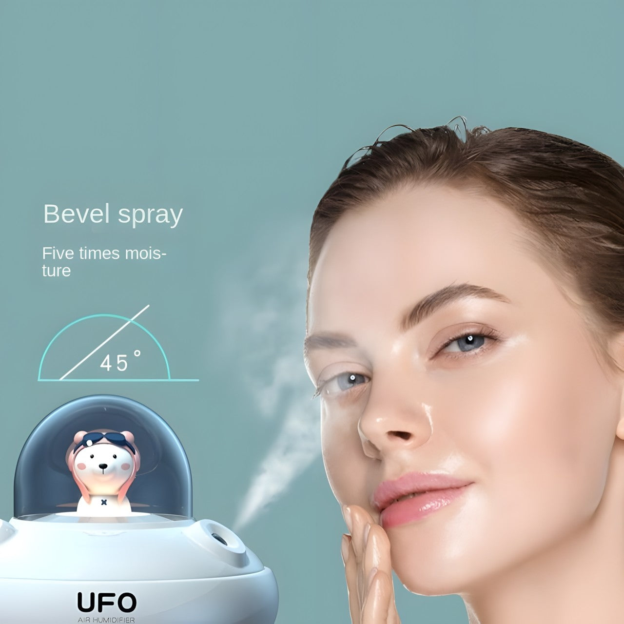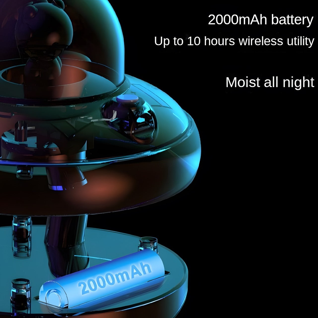 Unique UFO Design: This 2000mAh ultrasonic cool mist air humidifier features a fun and futuristic UFO design, adding a playful and eye-catching touch to any space. Perfect as a decorative piece for your home, office, or car.