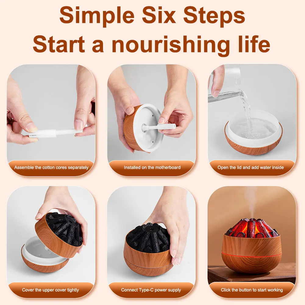 1.Realistic Flame air humidifier: This mini humidifier produces a realistic flame effect, reminiscent of a cozy fireplace, creating a romantic and mysterious atmosphere.