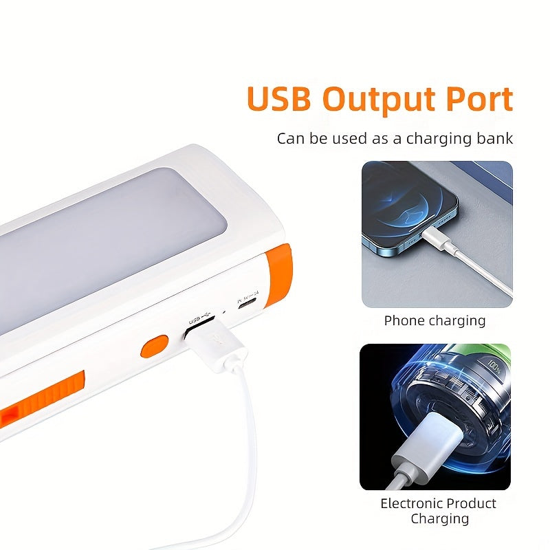 2、Mobile Charging Functionality: Elevate your lighting solution to a power bank with a 2400mAh battery, capable of charging phones and other electronic products. This feature enhances its usability, making it a must-have in every home or camping toolkit, bringing light and power wherever you go.