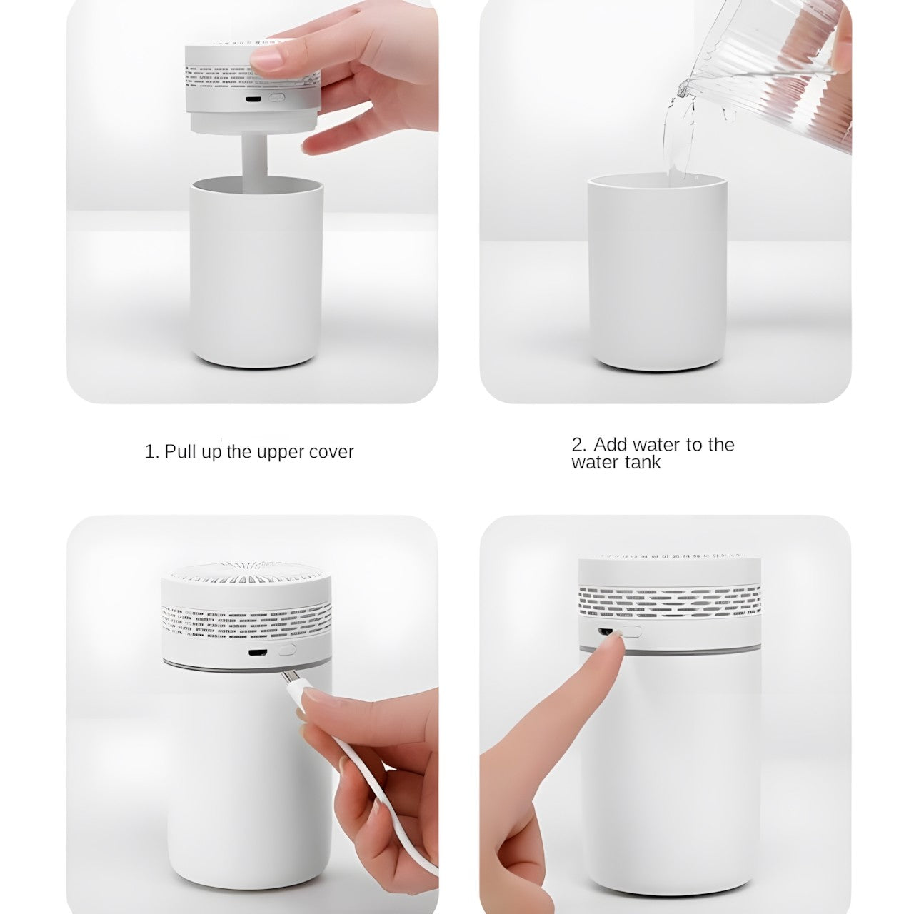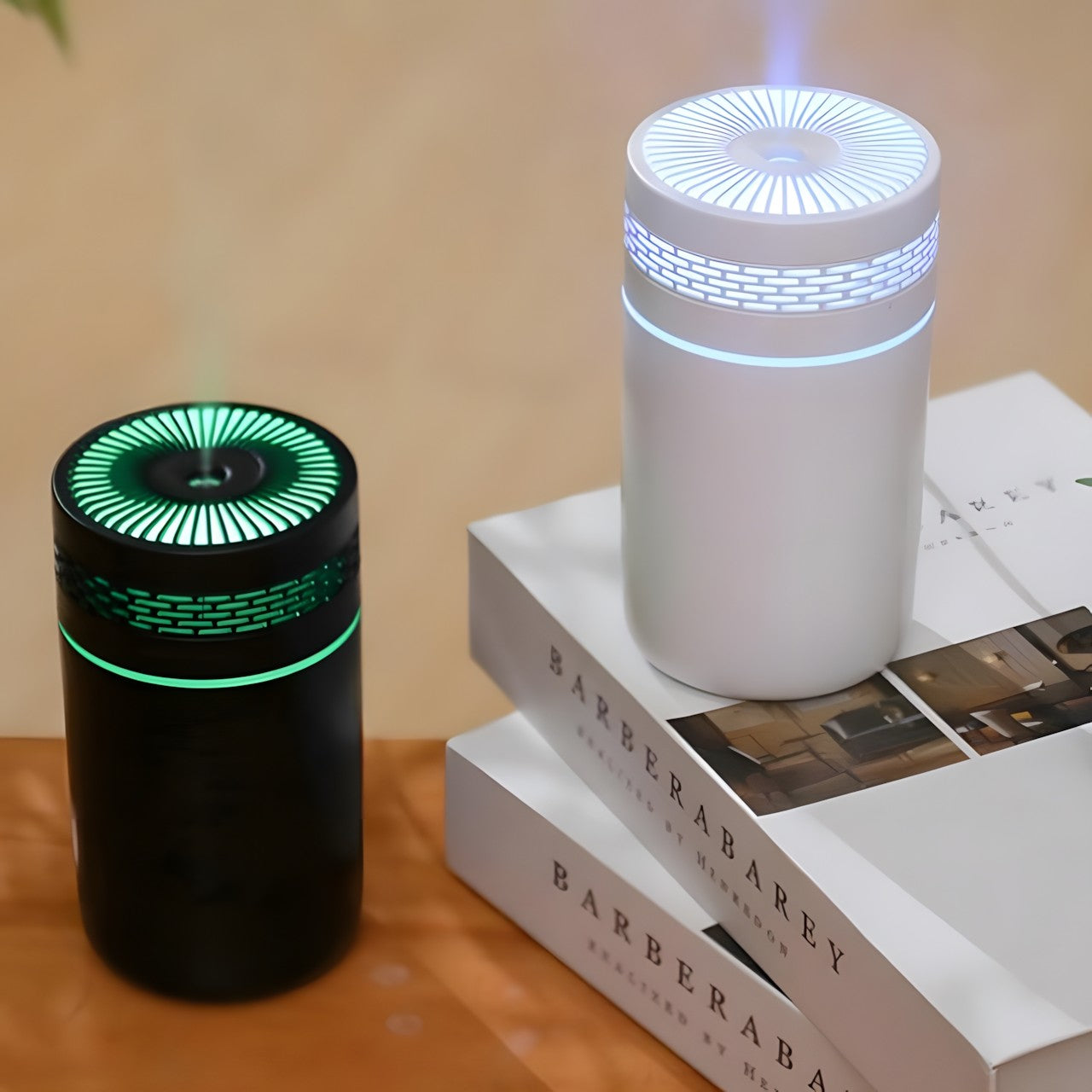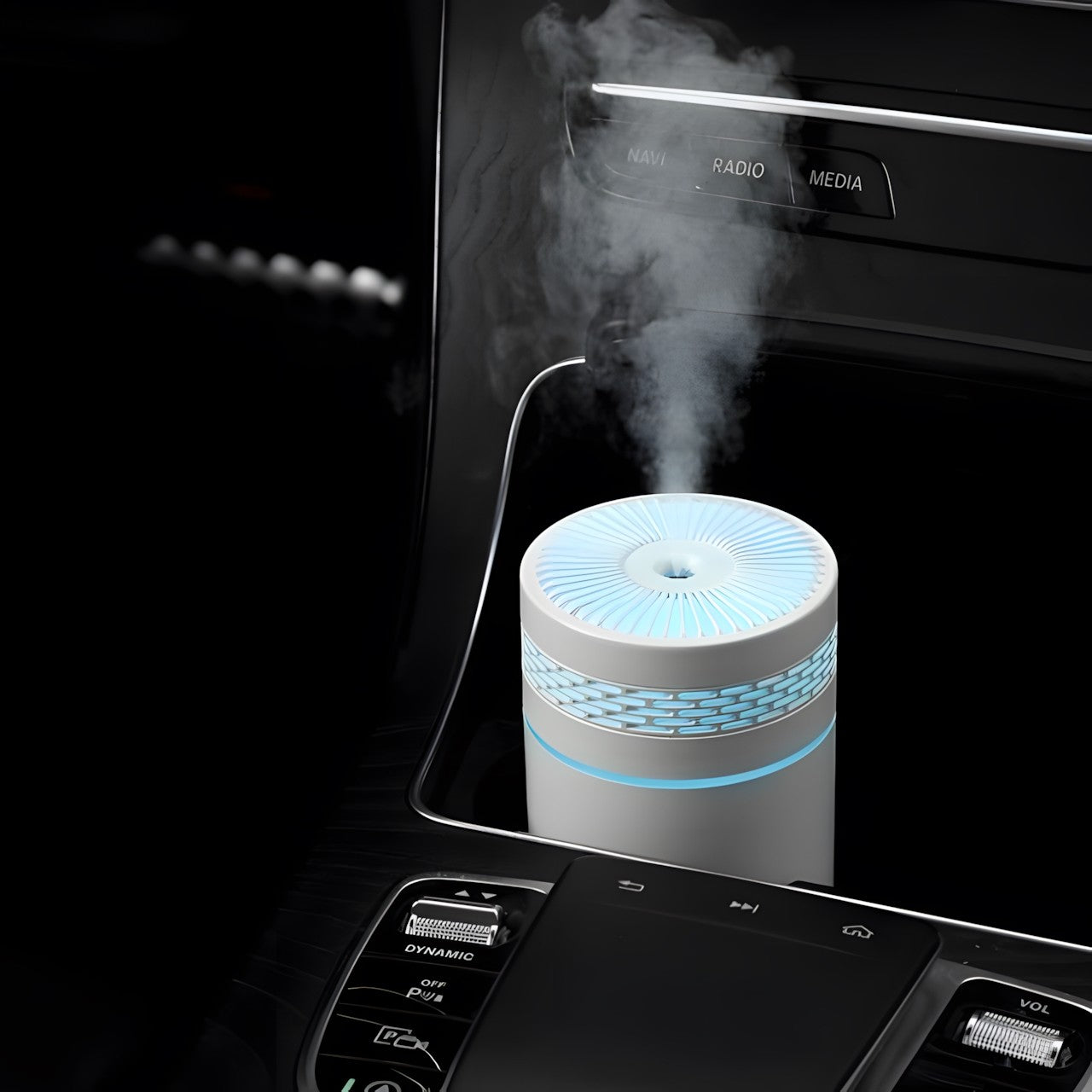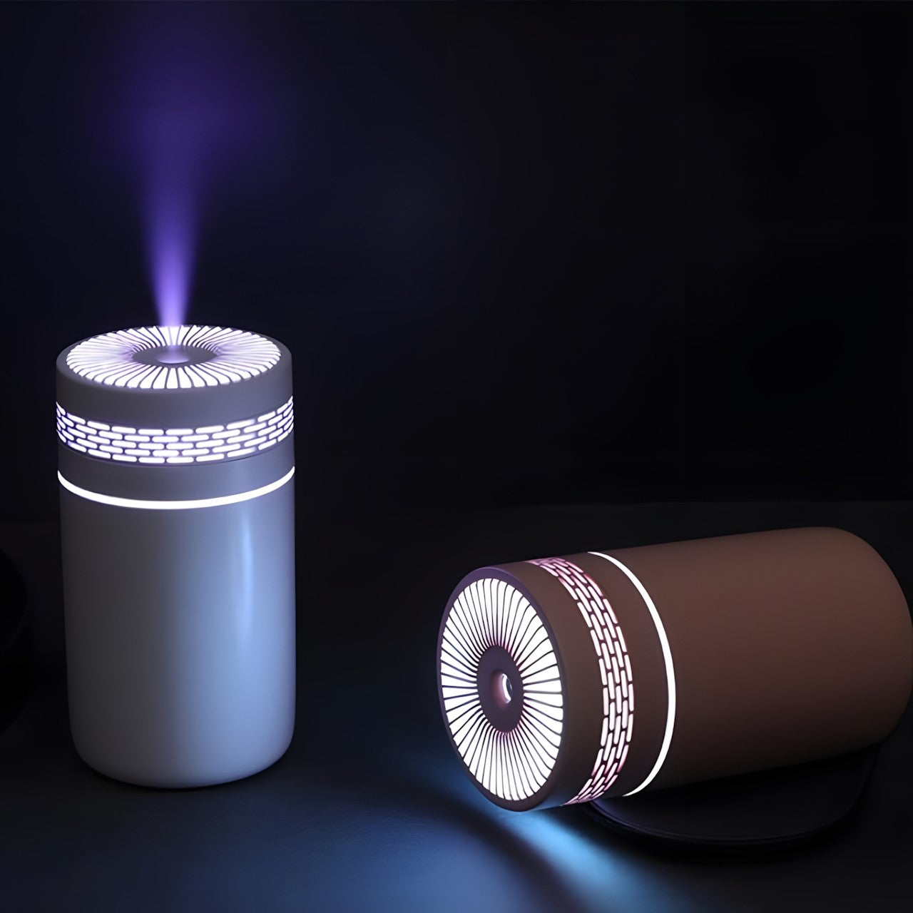 Compact and Portable Design: Designed with portability in mind, this humidifier sports a sleek, cylindrical shape that fits easily on any desk or in small spaces within vehicles or office setups.