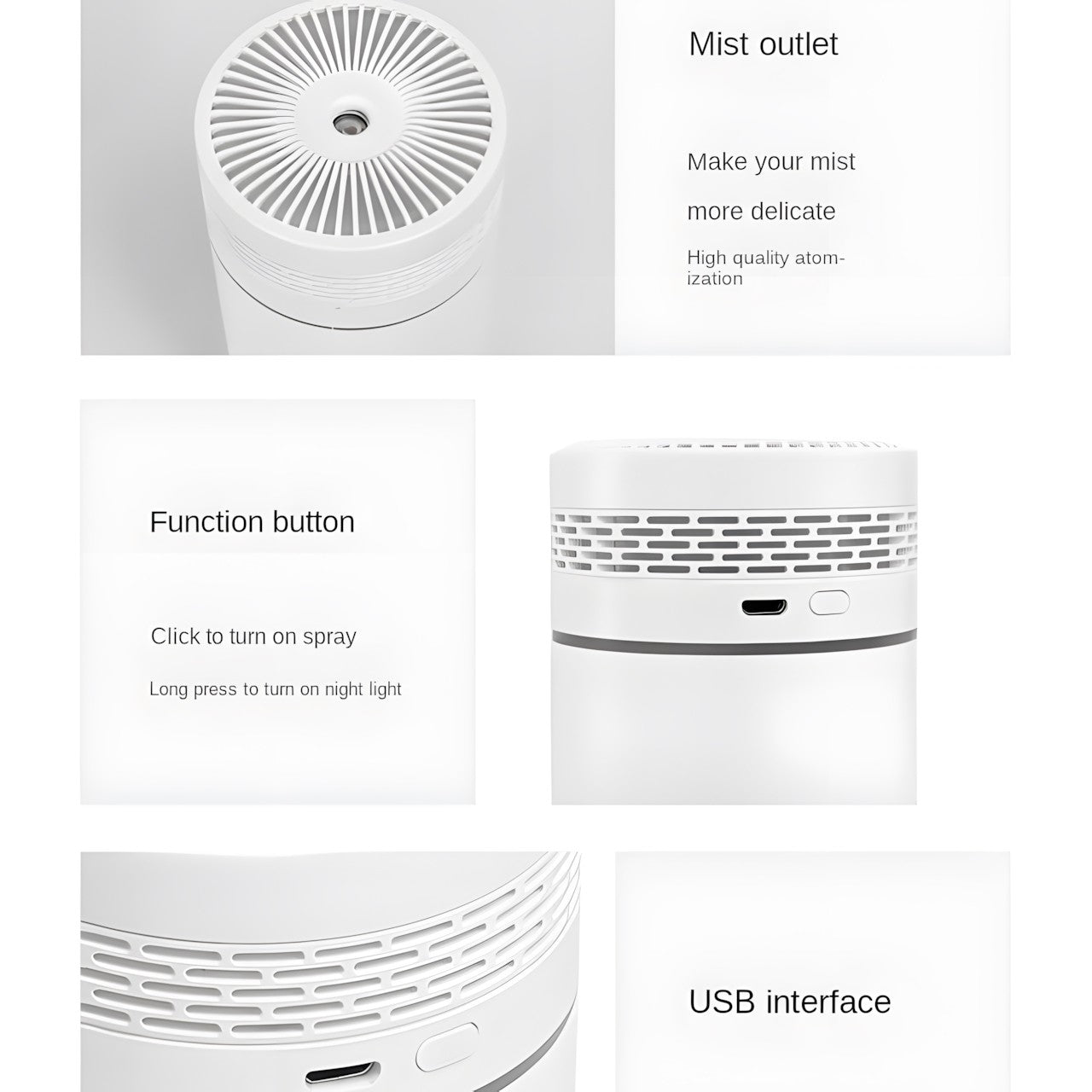 USB-Powered Essential Oil Diffuser: Doubles as an essential oil diffuser, offering the ability to add your favorite oils to enhance the environment with relaxing or energizing scents.