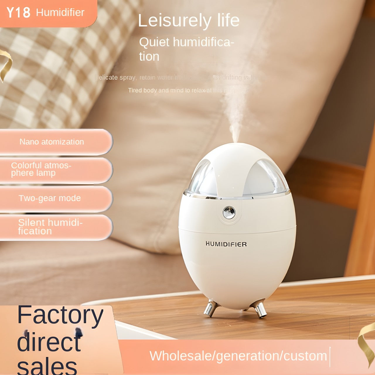 Unique Eggshell Design: This 260ML ultrasonic cool mist air humidifier features a charming eggshell design that adds a playful and stylish touch to any space. Its compact and elegant appearance makes it a perfect decorative piece for your home, office, or car.