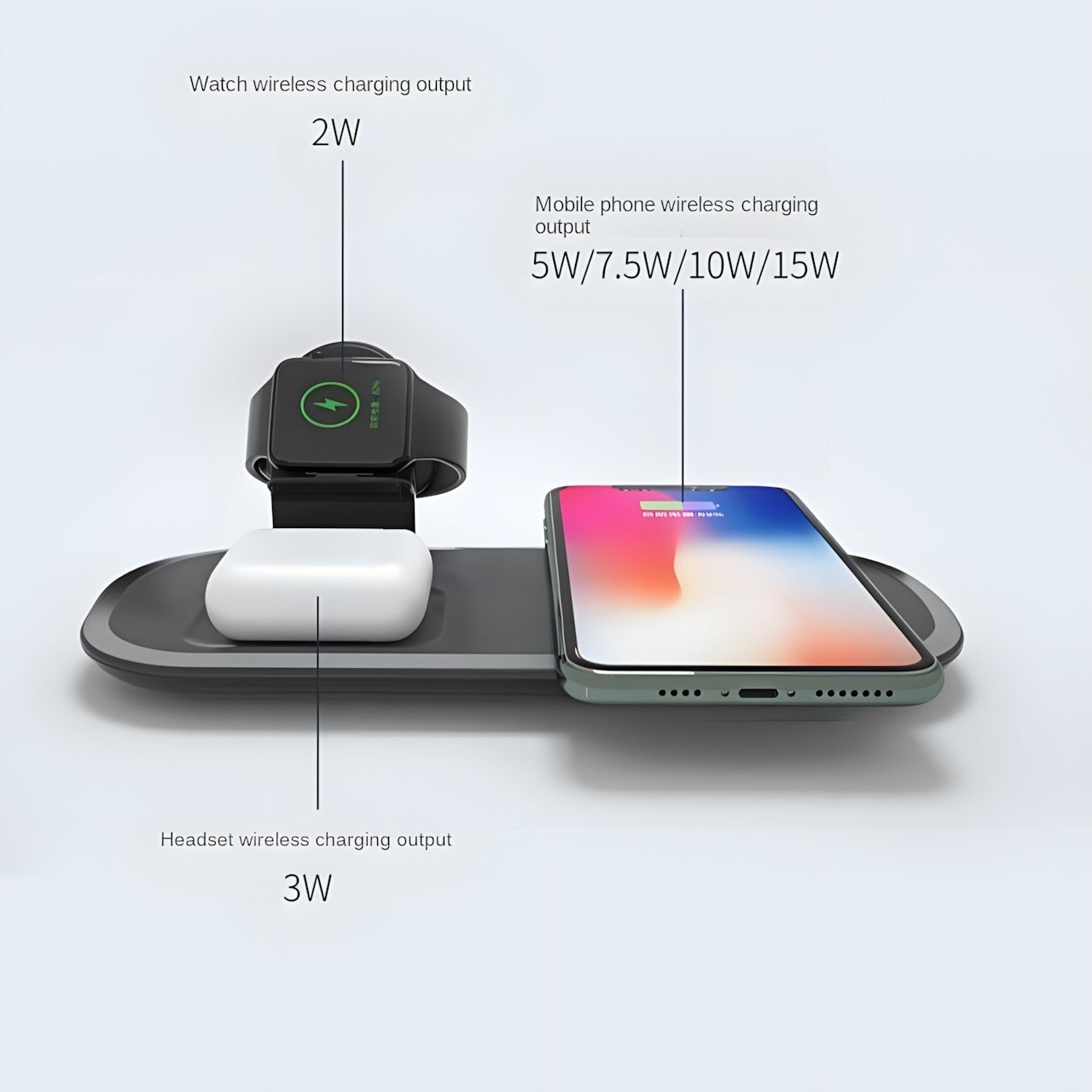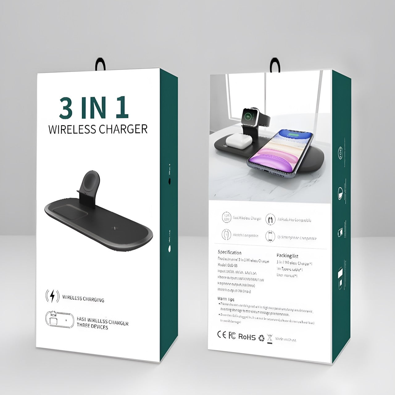 Wide Compatibility: Compatible with a variety of Qi-enabled devices, including smartphones, smartwatches, and wireless earbuds, this 3-in-1 wireless charger is a versatile and essential accessory for keeping all your gadgets powered up and ready to go.