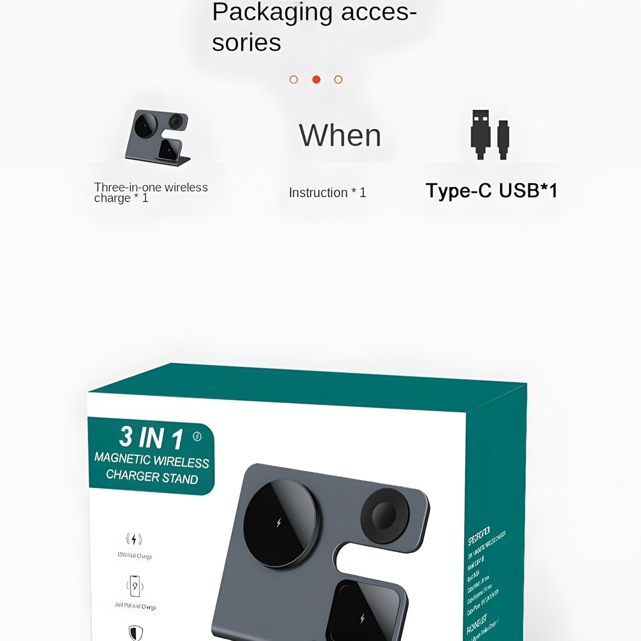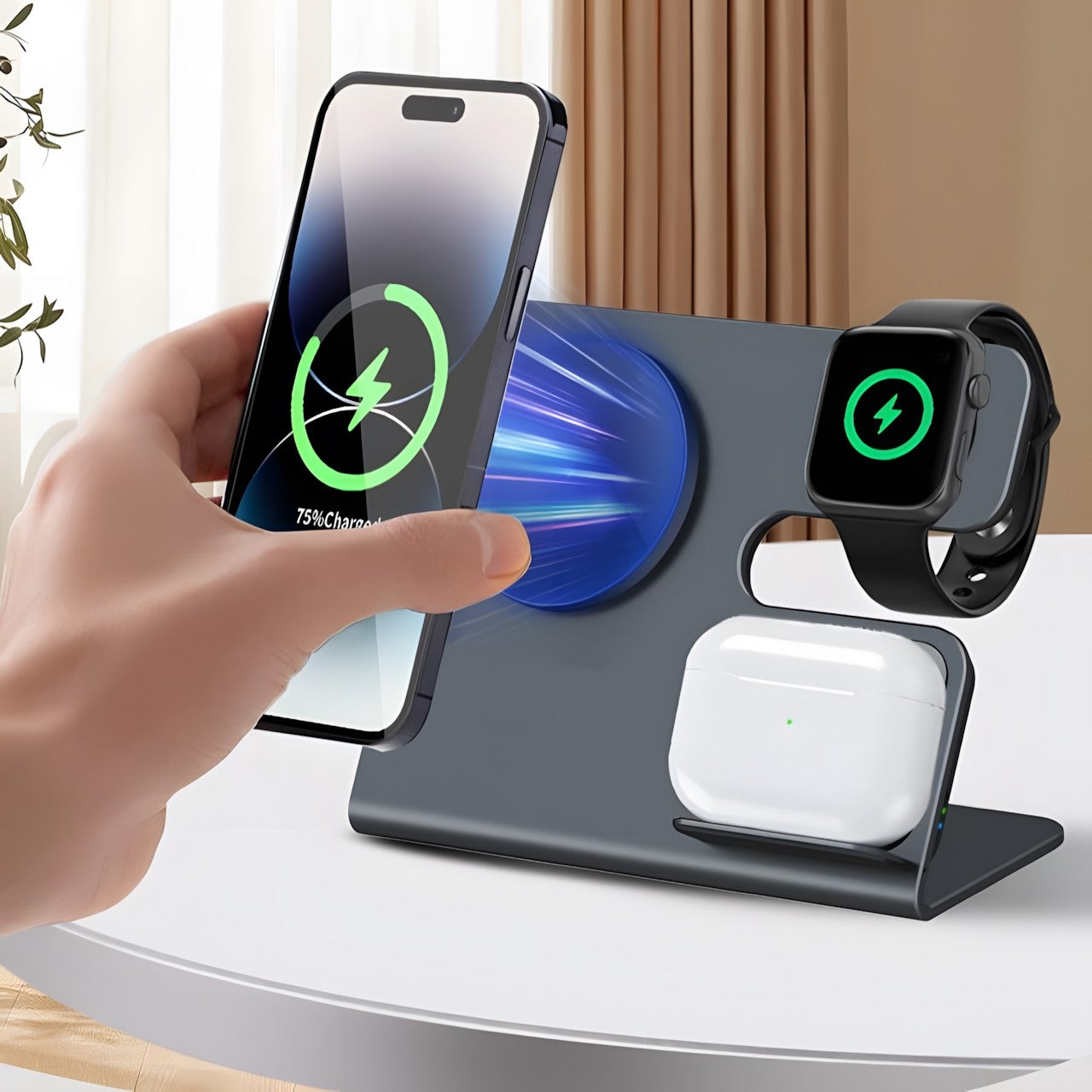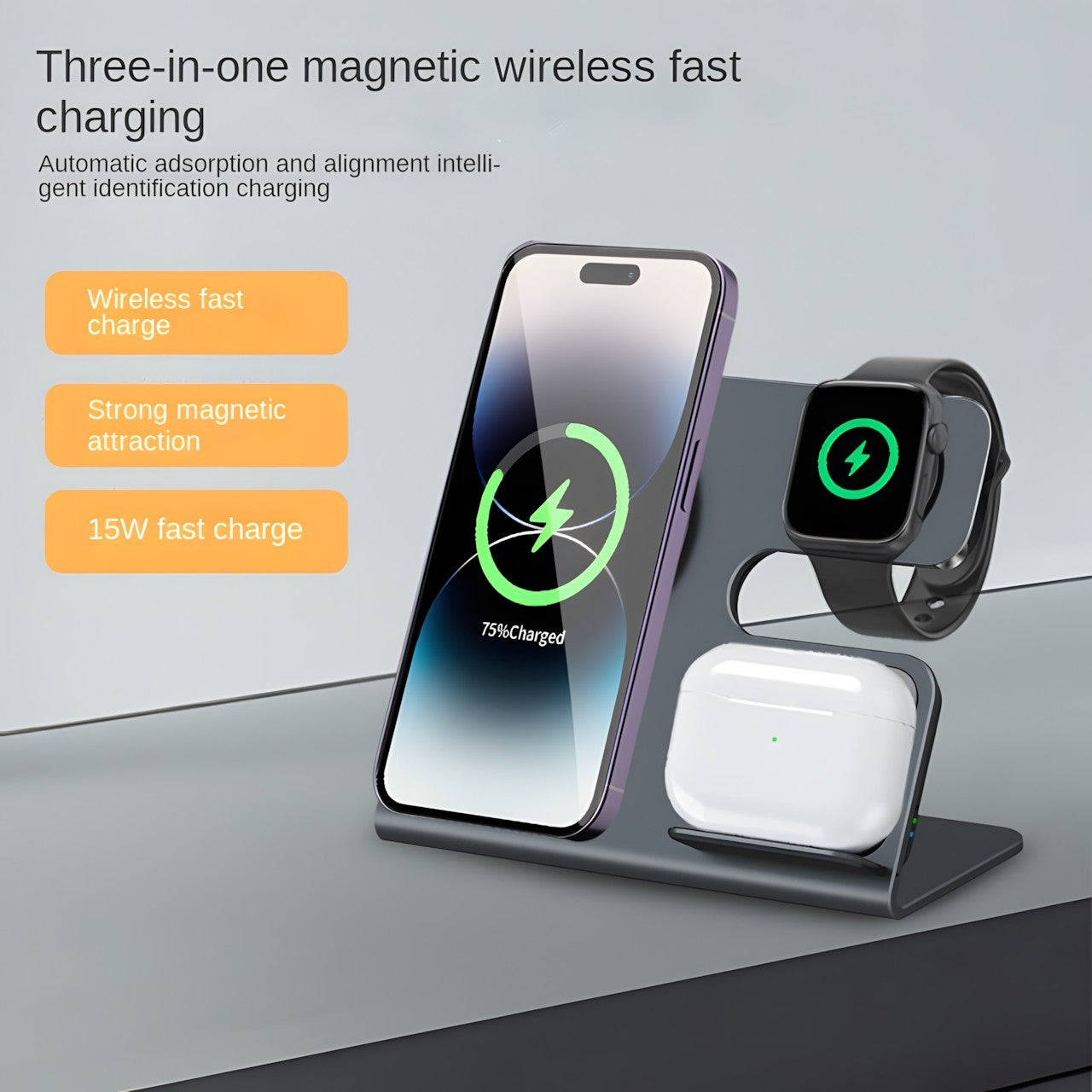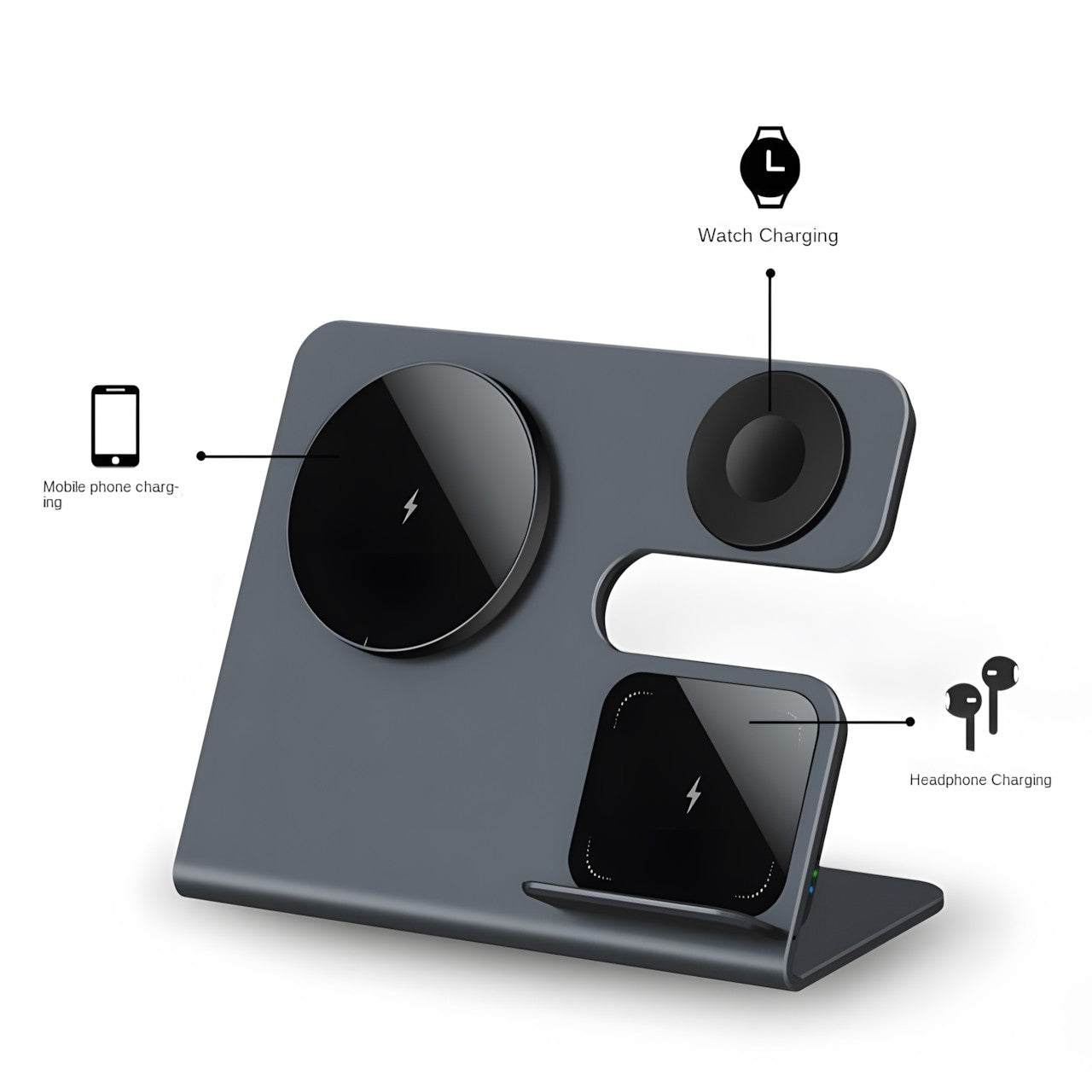 同时 3 合 1 无线充电:使用这款高效的 3 合 1 无线充电站同时为您的手机、智能手表和耳塞充电,旨在简化您的充电程序。