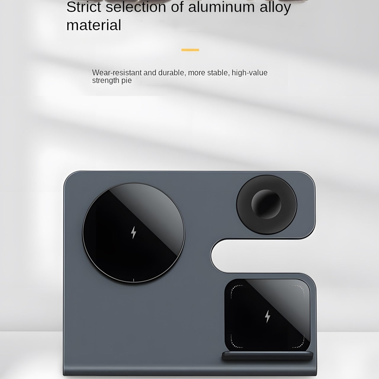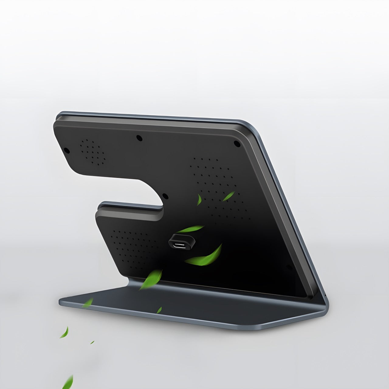 整洁有序的设计:使用这款多合一无线充电解决方案,让您的工作空间保持整洁,没有电缆杂乱,提供一种整洁高效的方式来保持所有设备的电量。