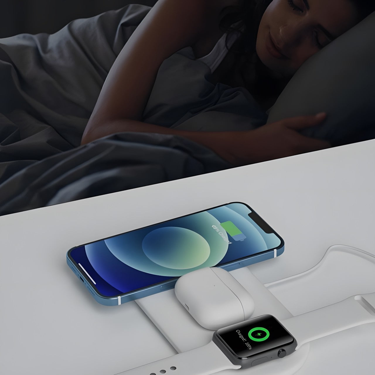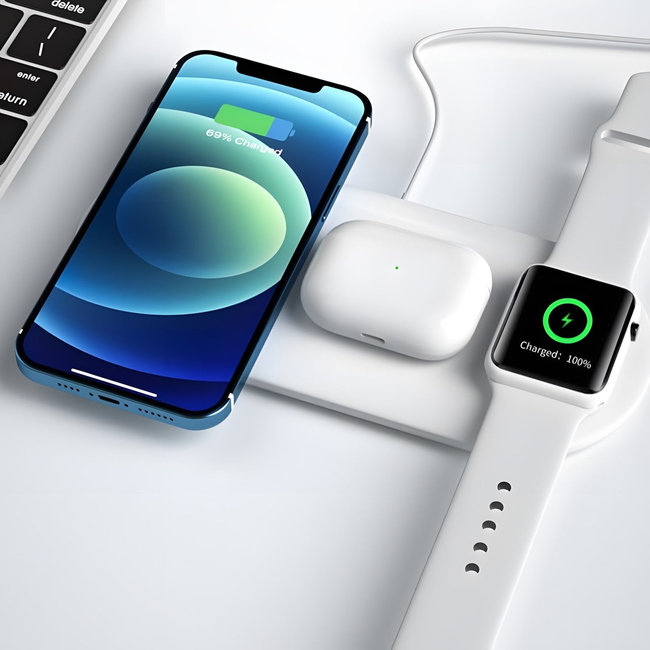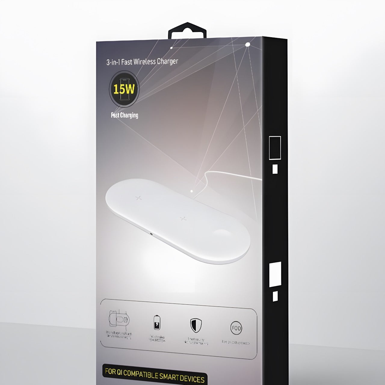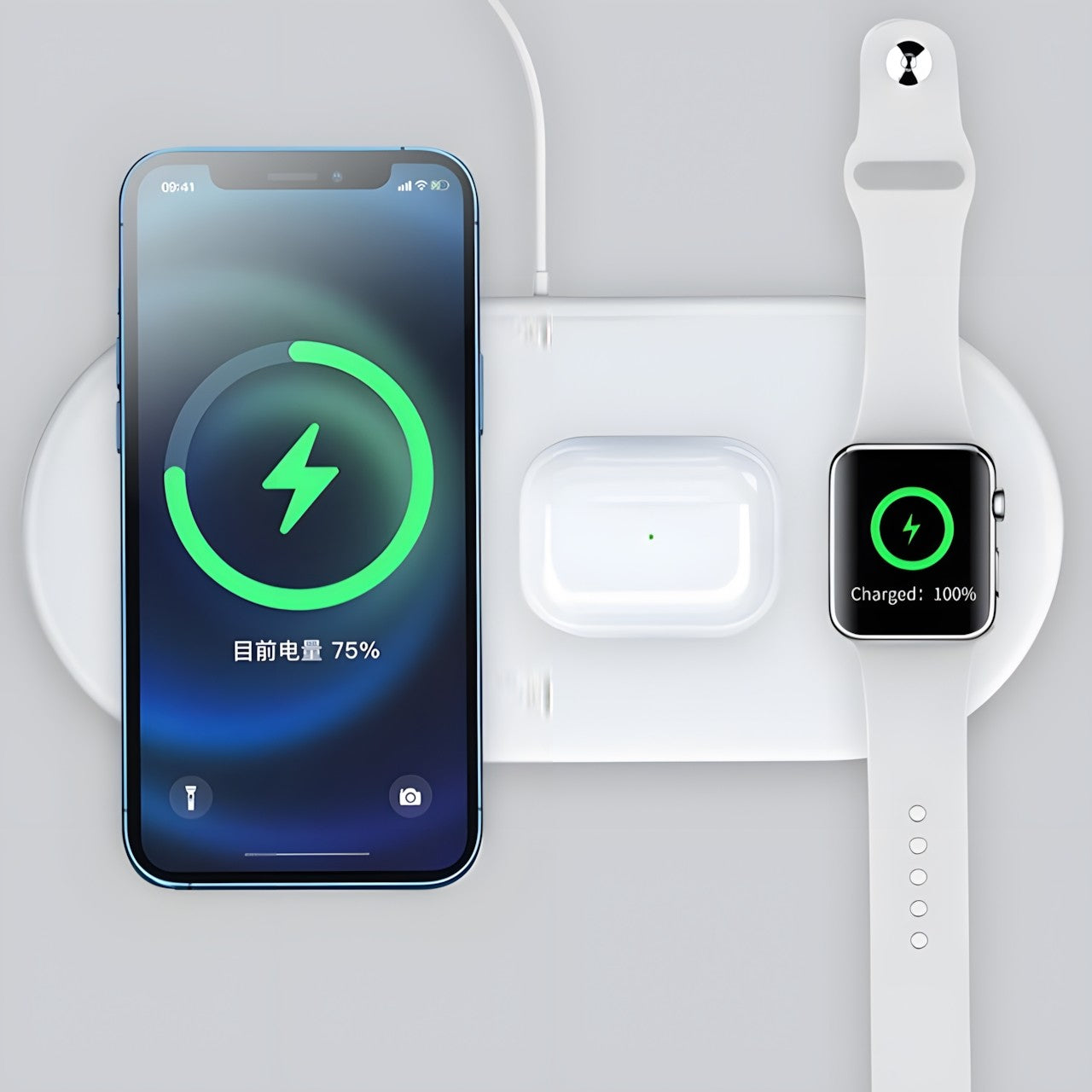 广泛的兼容性:这款 3 合 1 无线充电器兼容各种支持 Qi 的设备,包括智能手机、智能手表和无线耳塞,是一款多功能且必不可少的配件,可让您的所有小工具保持通电并准备就绪。