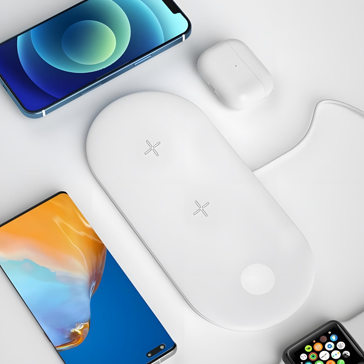 快速高效充电:这款充电器配备先进的无线充电技术,可为支持 Qi 的智能手机、智能手表和无线耳塞提供快速可靠的电源,确保它们随时可用。