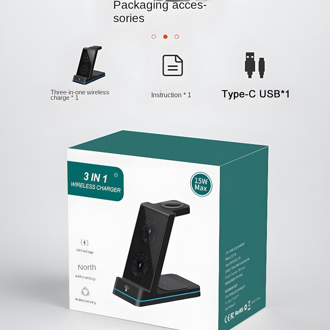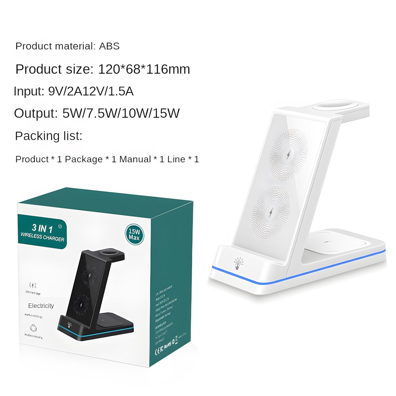 Versatile 3-in-1 Charging Station: Charge your phone, smartwatch, and earbuds all at once with this convenient 3-in-1 foldable desktop vertical wireless charger, designed to simplify your charging needs.