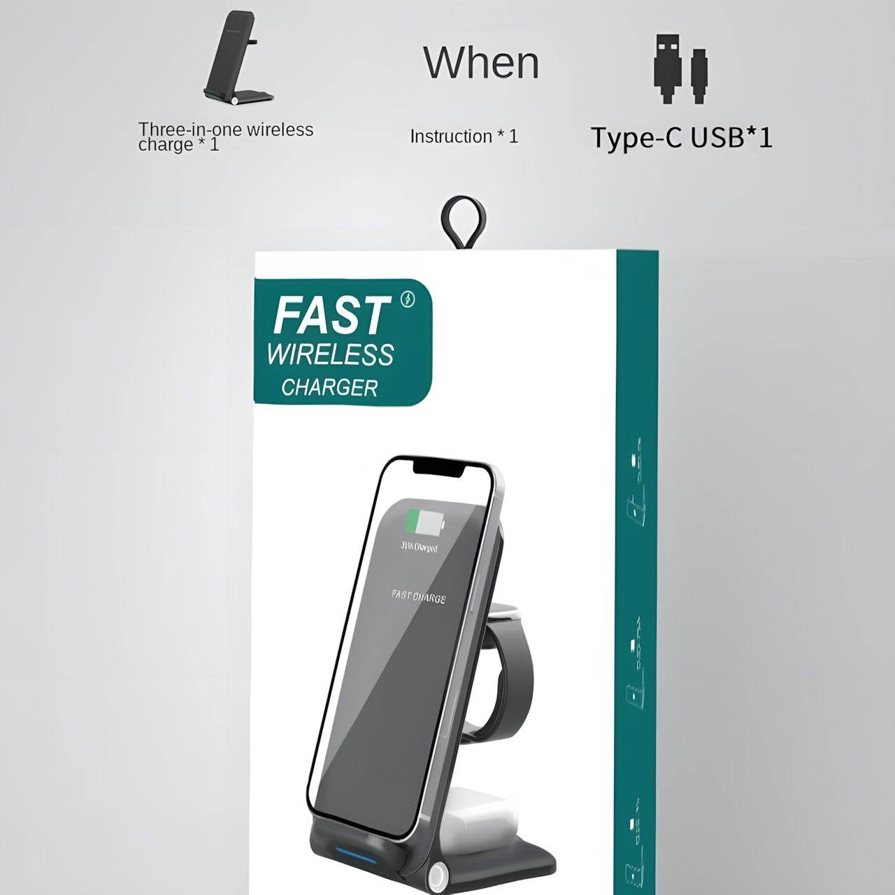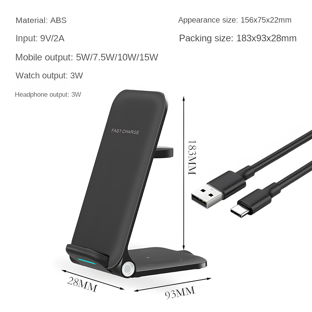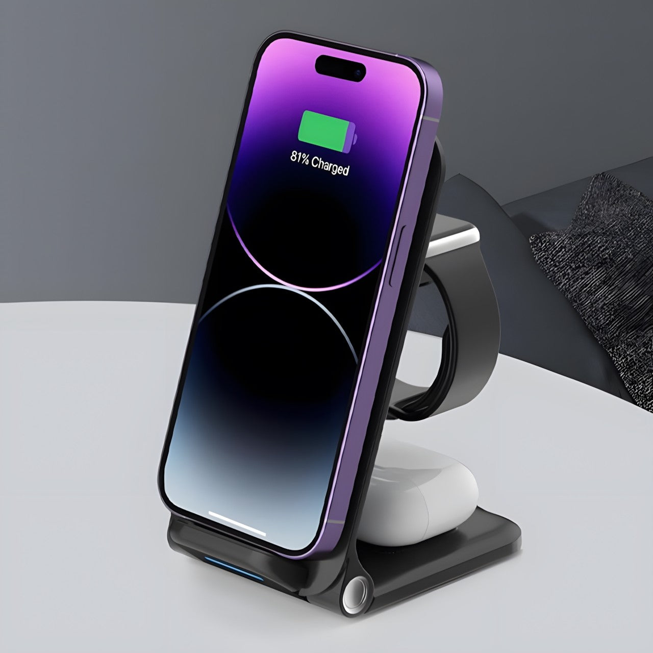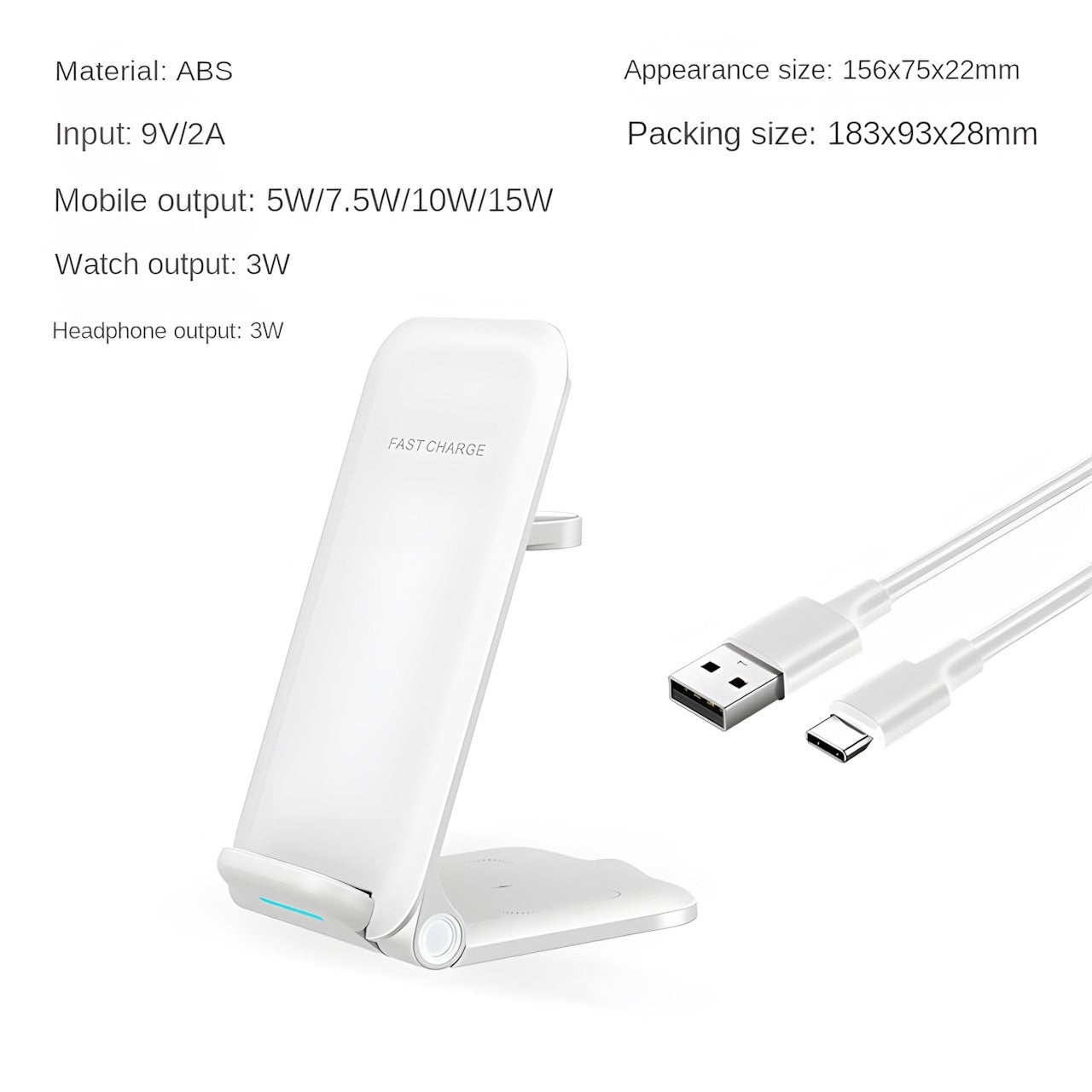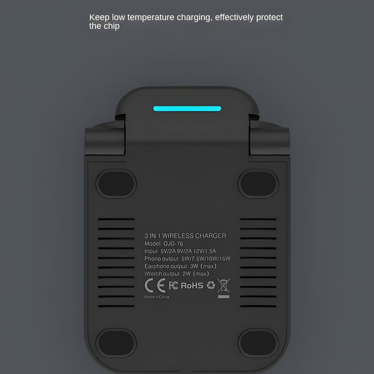 3-in-1 Wireless Charging Station: Charge your phone, smartwatch, and earbuds simultaneously with this foldable 3-in-1 desktop wireless charger, providing a comprehensive and efficient charging solution for all your devices.