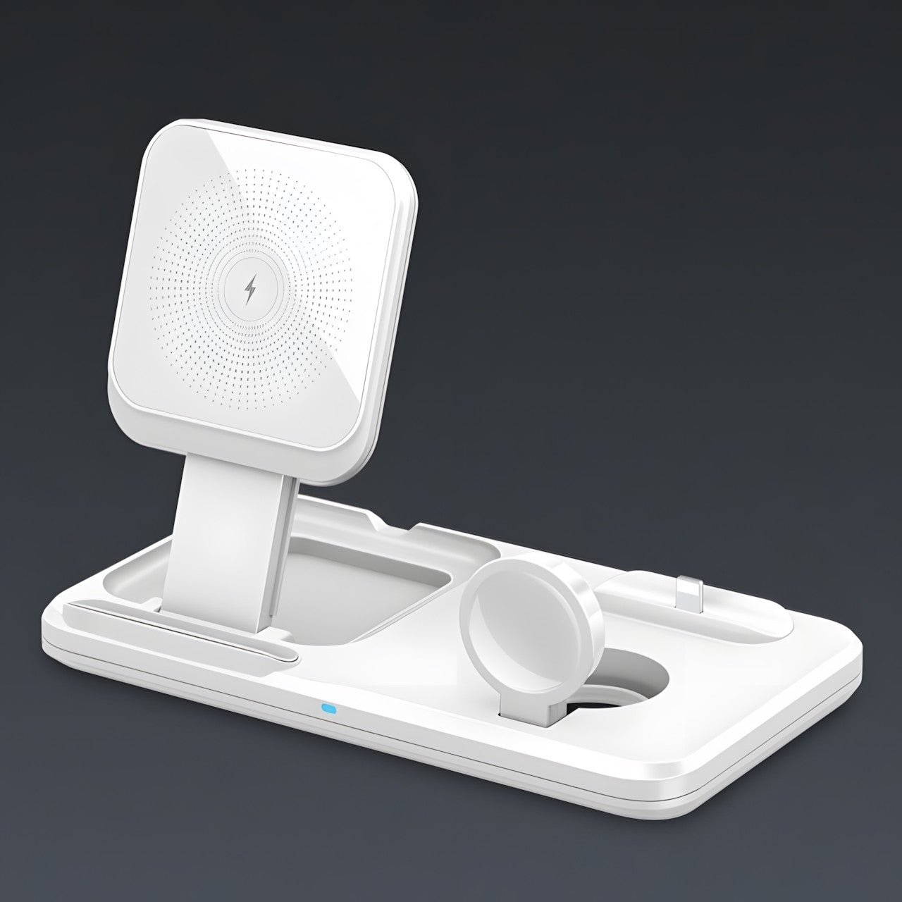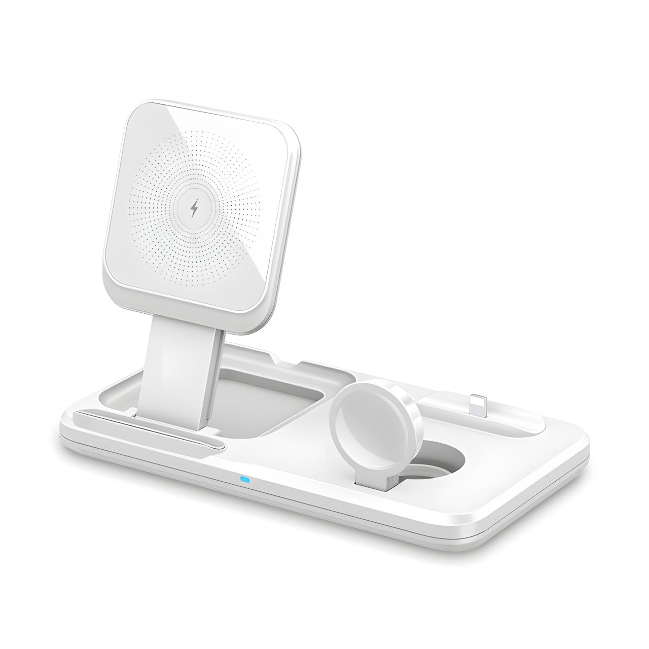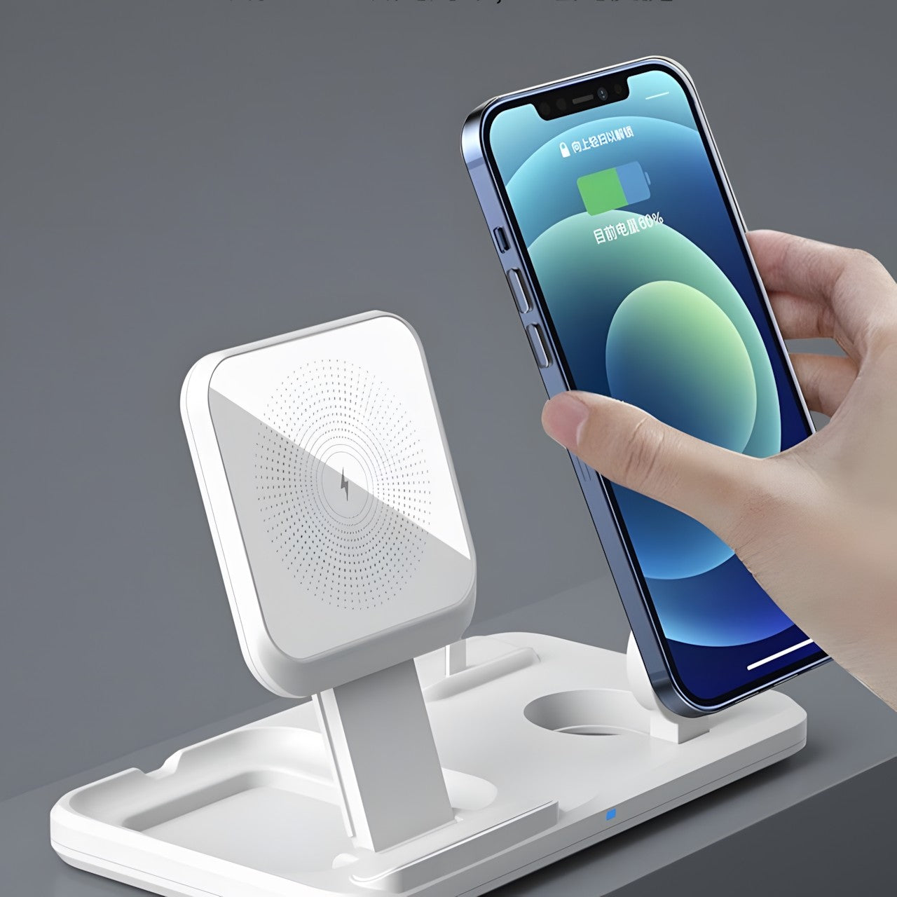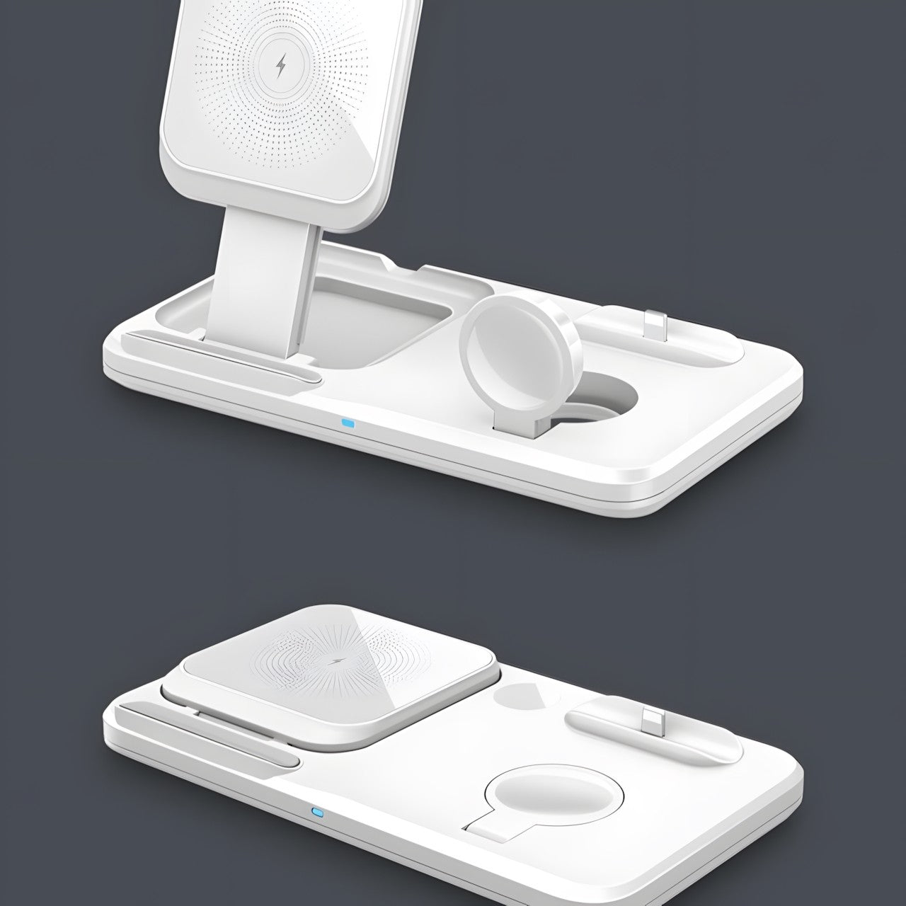Versatile 3-in-1 Charging Station: This foldable desktop wireless charger allows you to charge your phone, smartwatch, and earbuds simultaneously, providing an efficient and organized solution for all your devices.