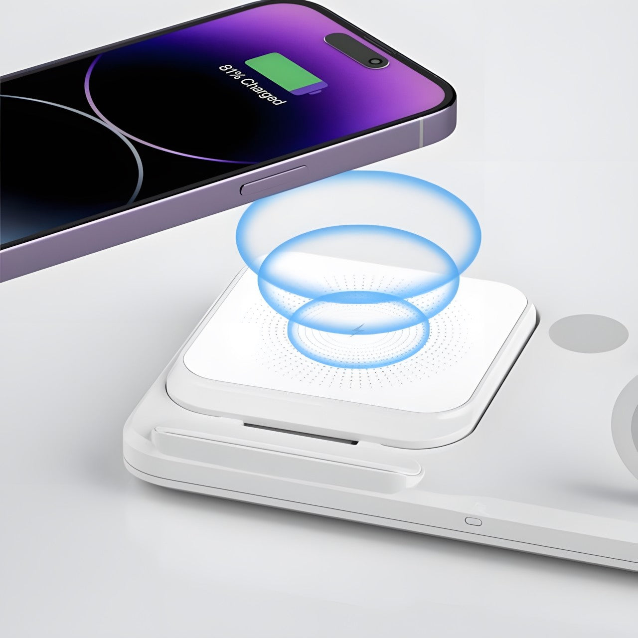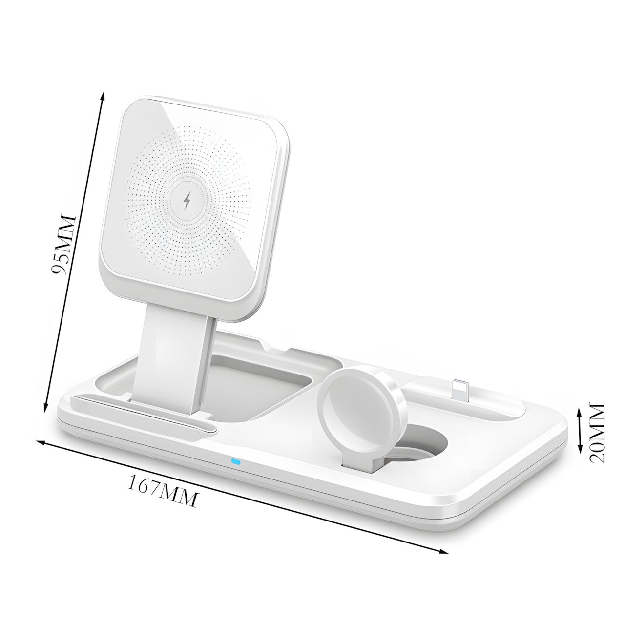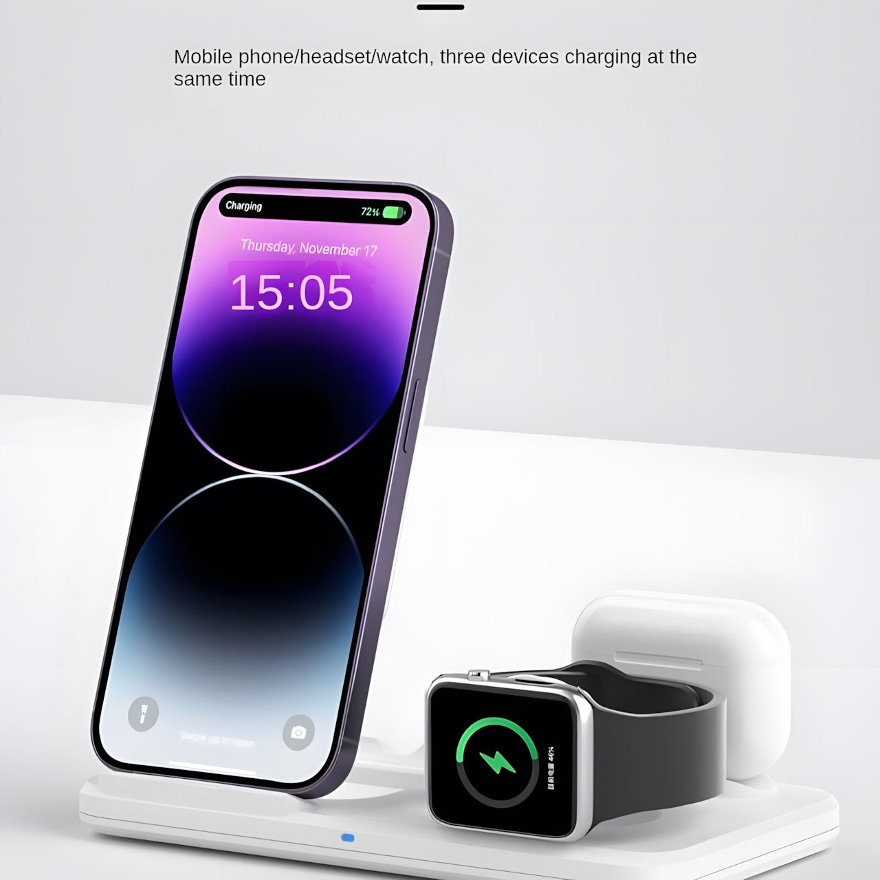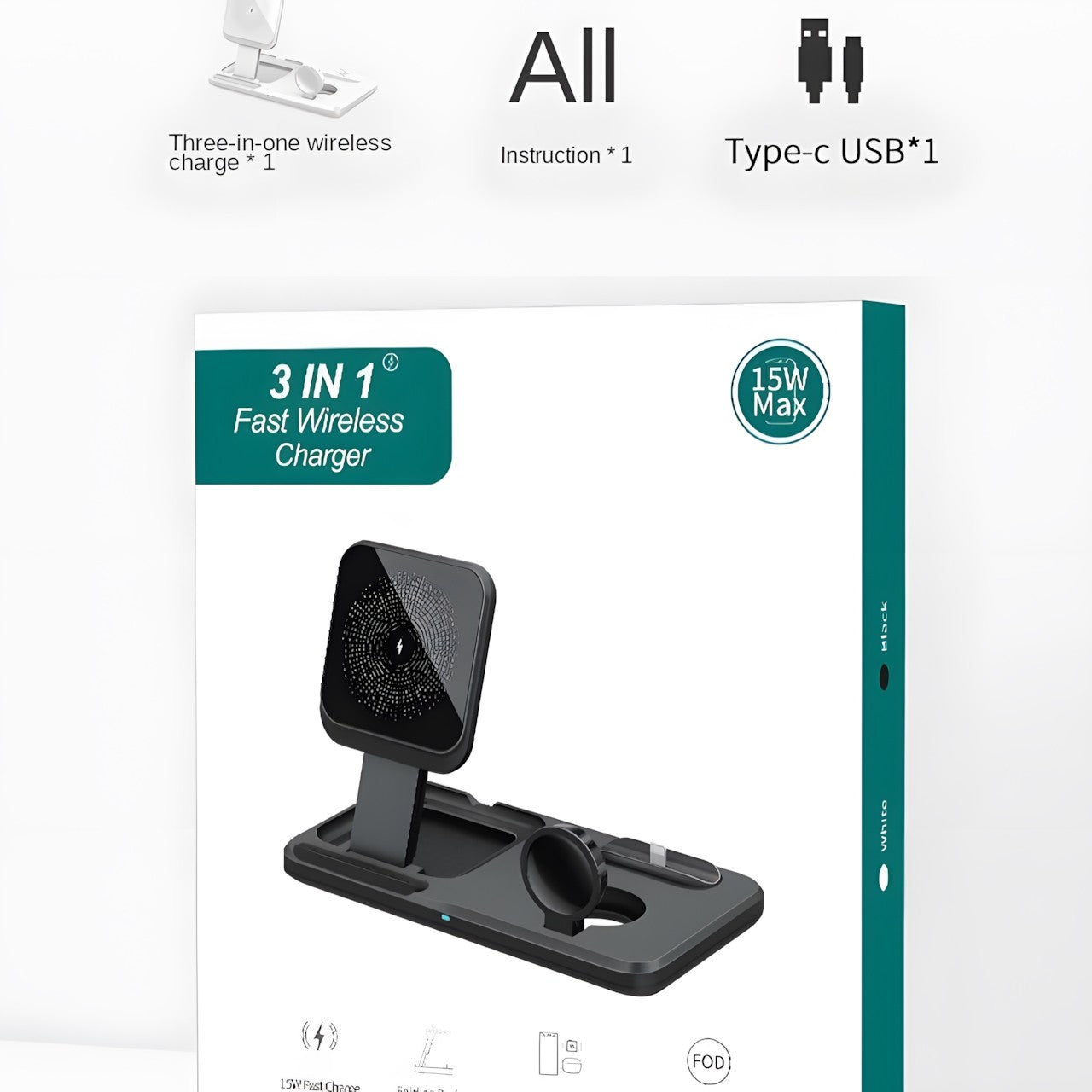 Wide Device Compatibility: Compatible with a variety of Qi-enabled devices, including smartphones, smartwatches, and wireless earbuds, this 3-in-1 wireless charger is a versatile and essential accessory for managing multiple devices effortlessly.