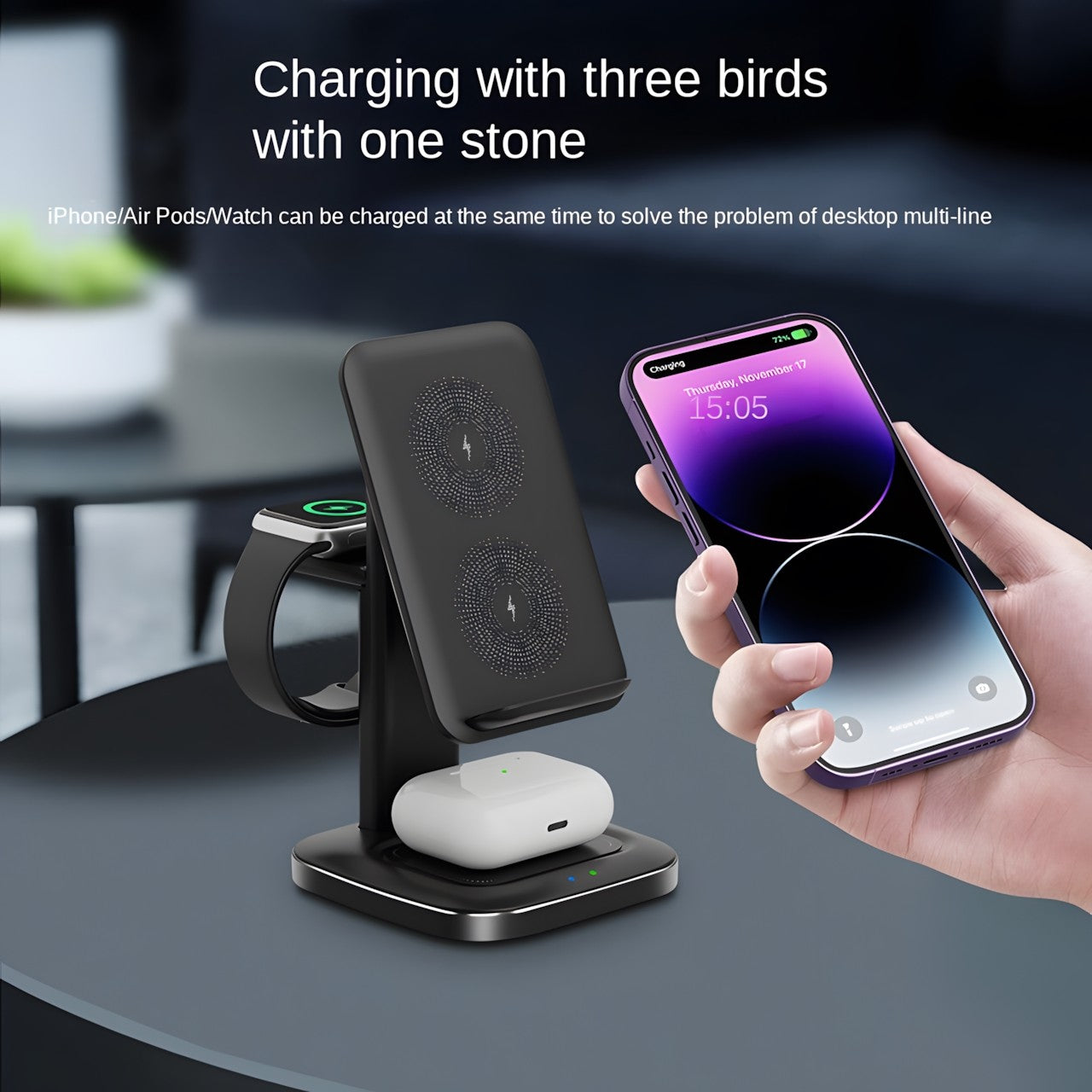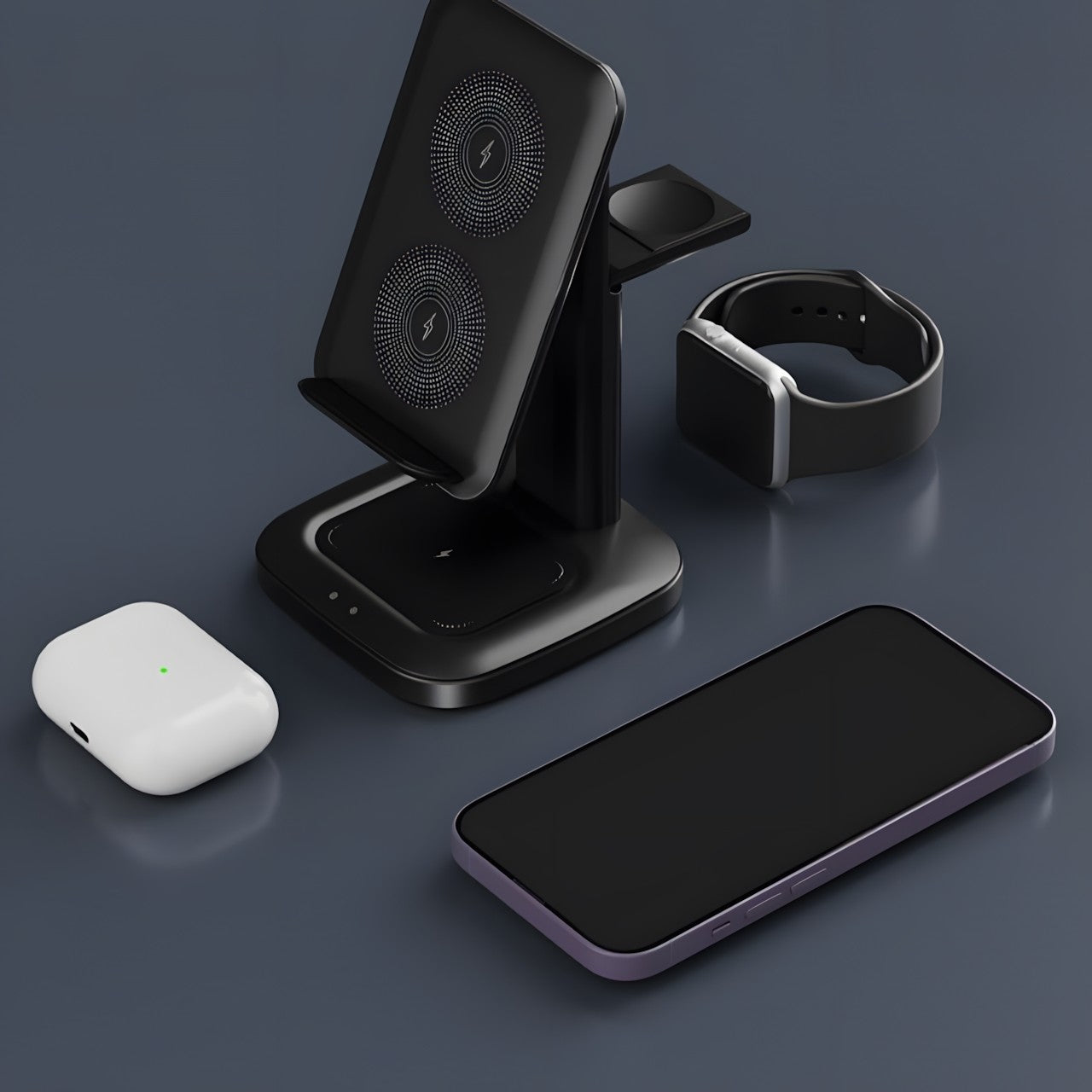 3-in-1 Wireless Charging Station: Charge your phone, smartwatch, and earbuds simultaneously with this versatile 3-in-1 foldable wireless charger, keeping all your devices organized and powered up.