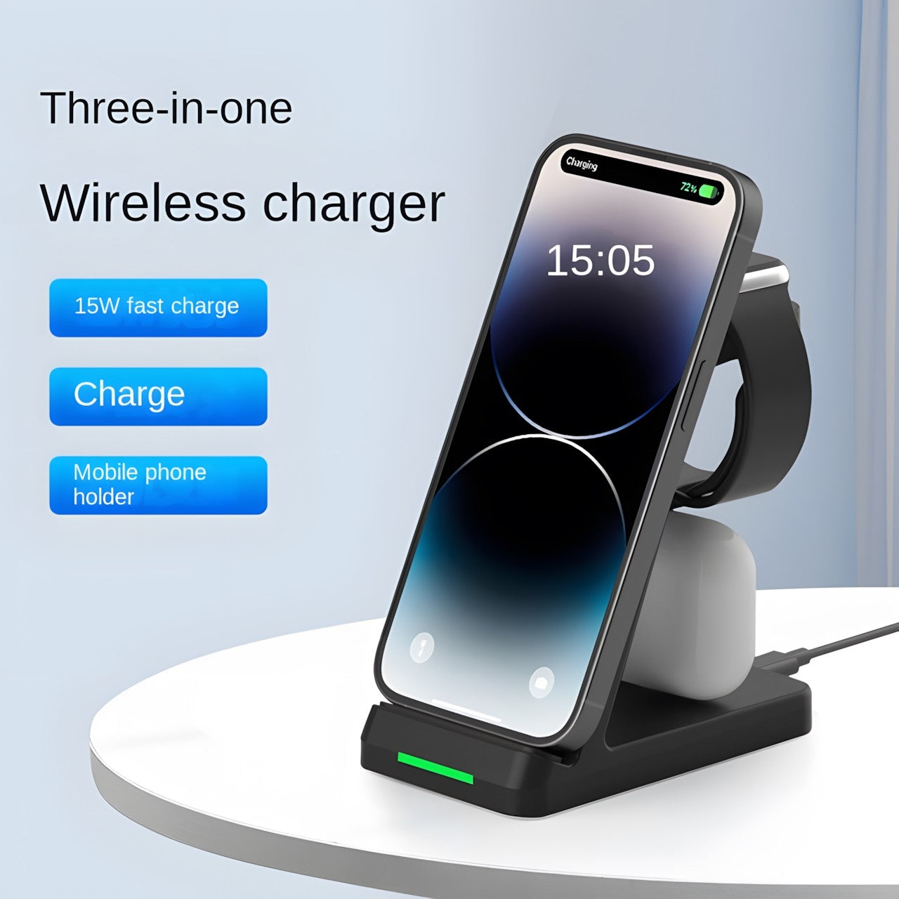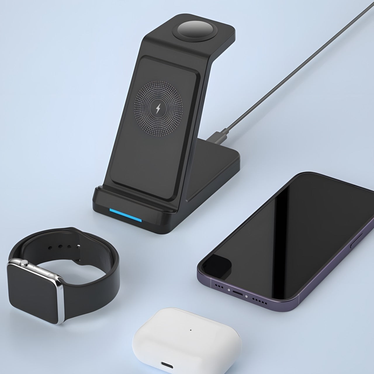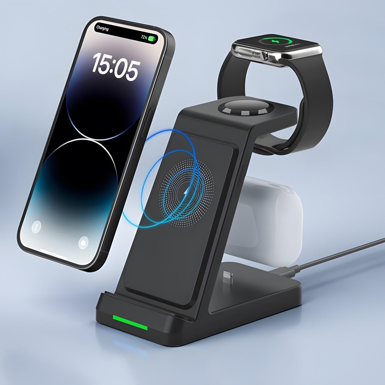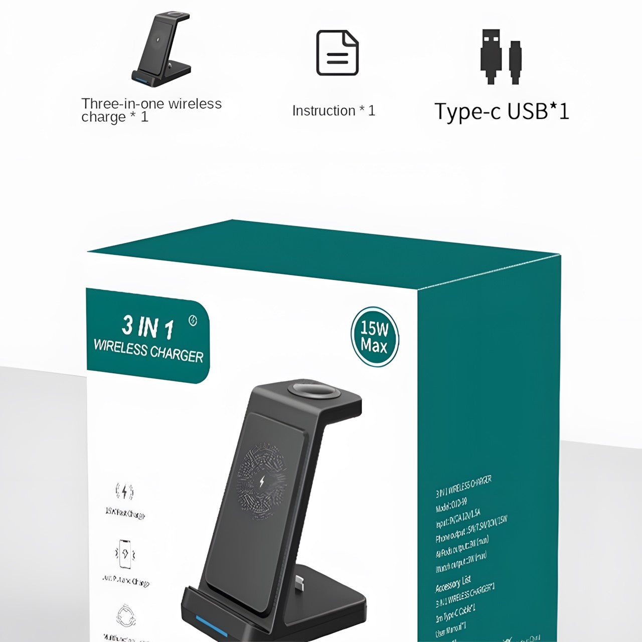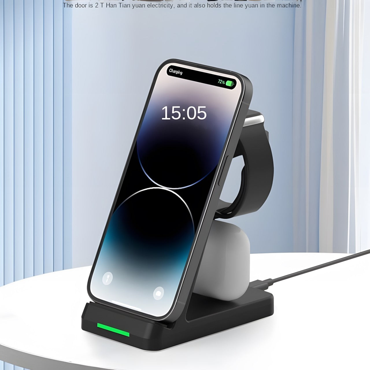 Comprehensive 3-in-1 Charging Station: Charge your phone, smartwatch, and earbuds simultaneously with this all-in-one magnetic wireless charger, designed to simplify and streamline your charging routine.
