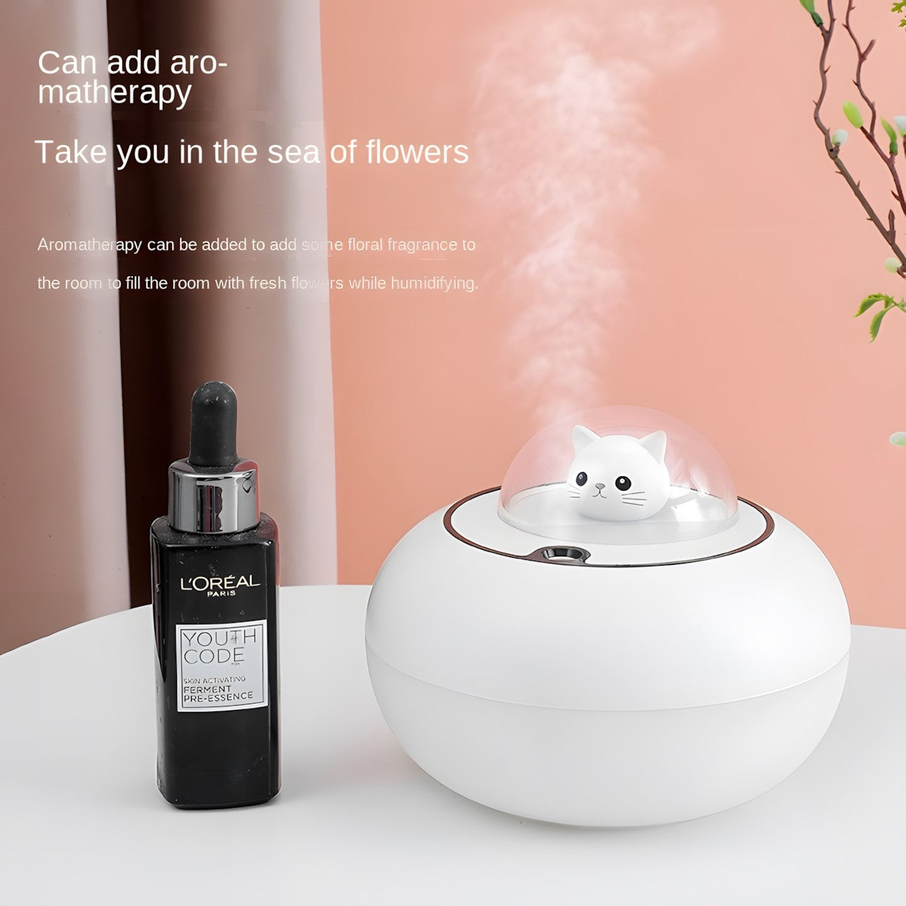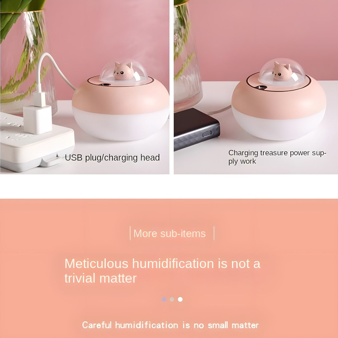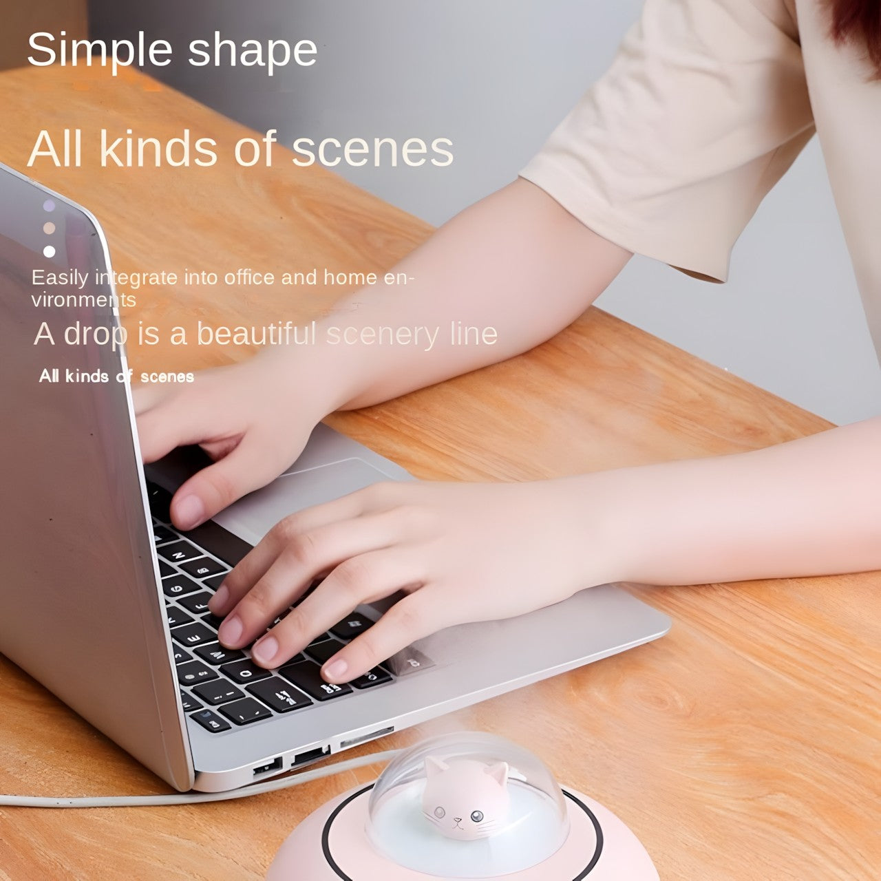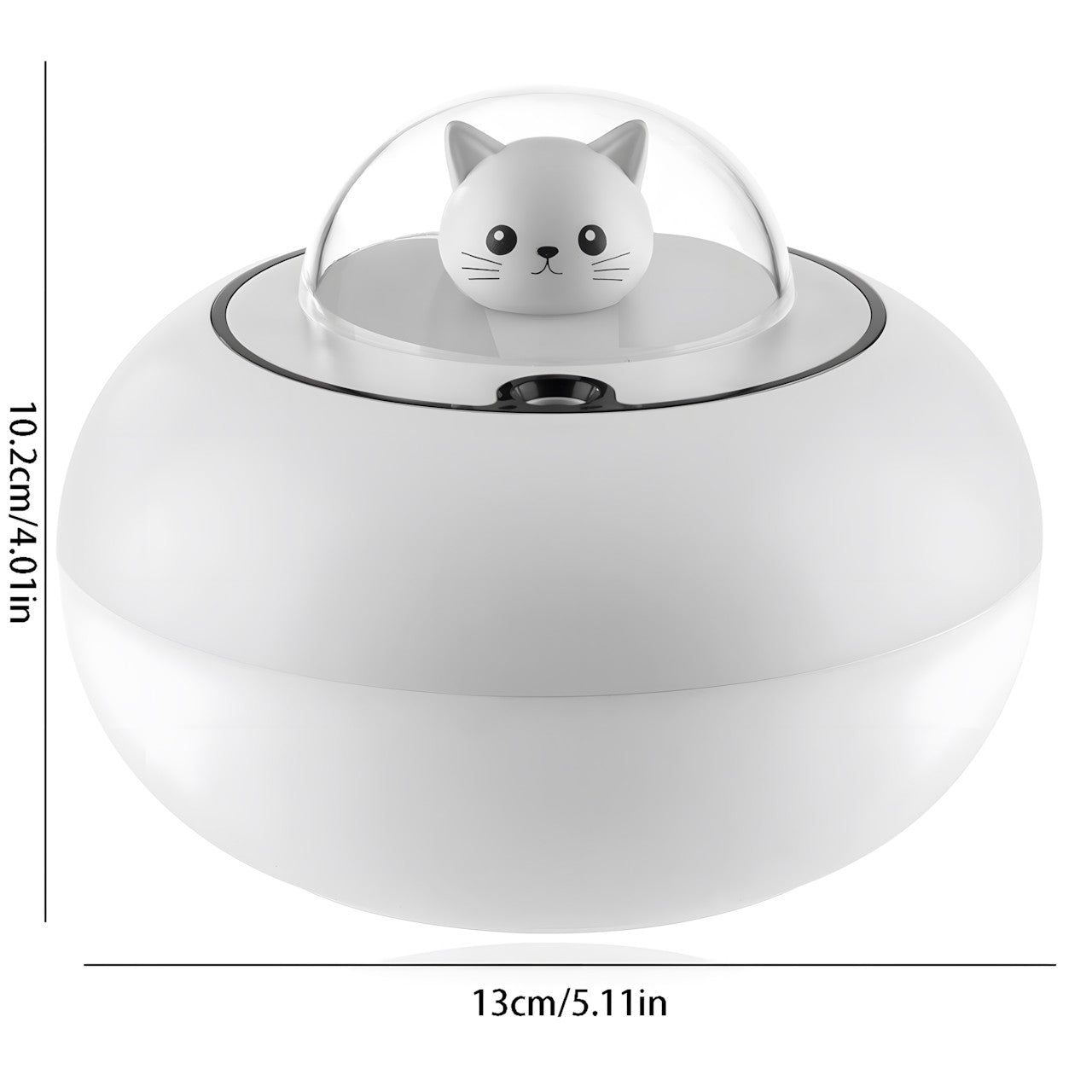 Efficient Humidification: This 300ML cat-themed ultrasonic humidifier efficiently disperses a cool, soothing mist, ideal for indoor environments, cars, or office spaces, enhancing air quality and moisture levels quietly and effectively.