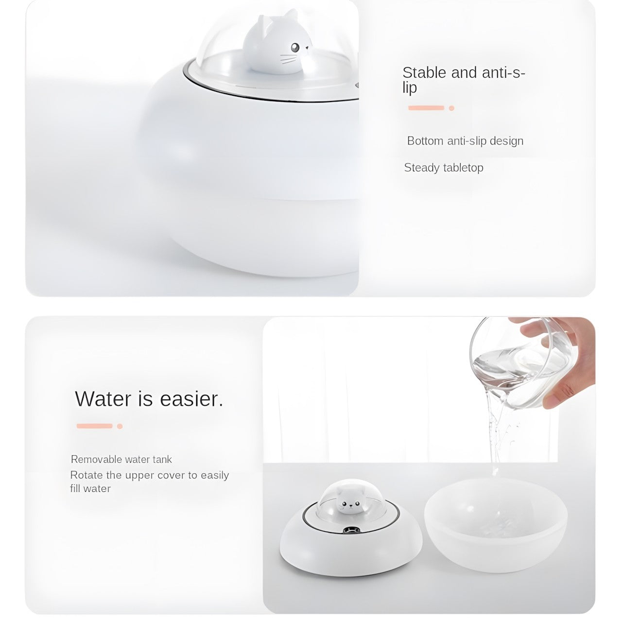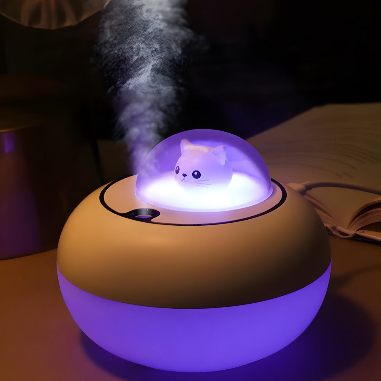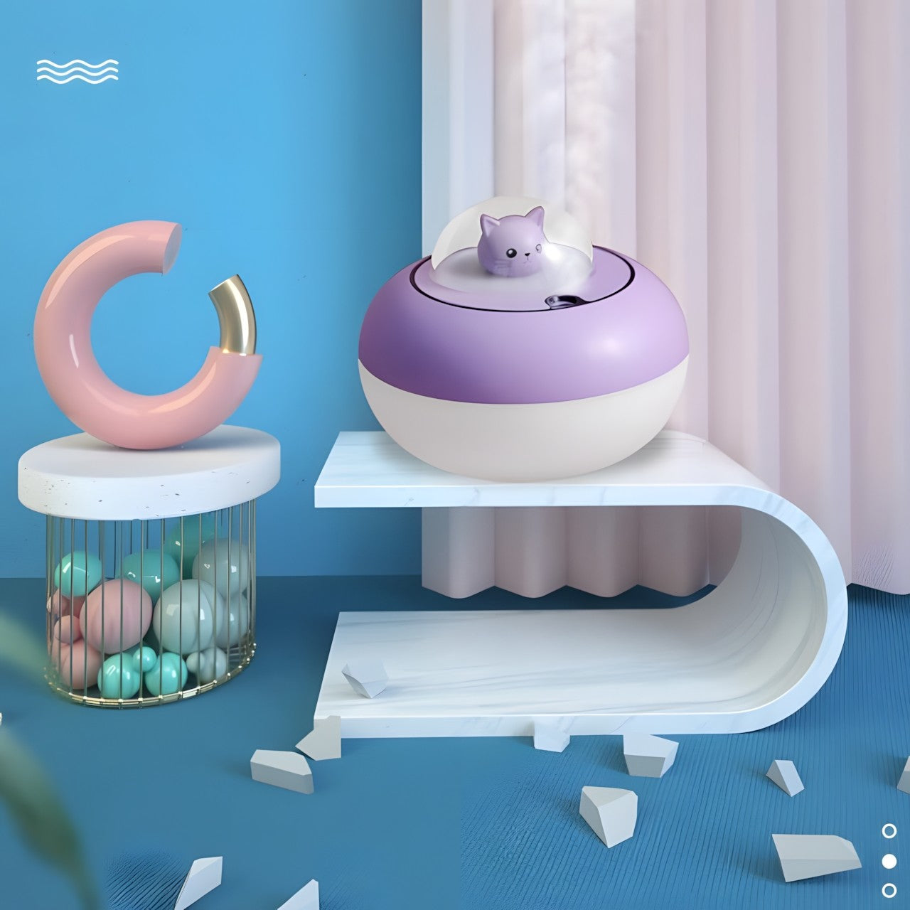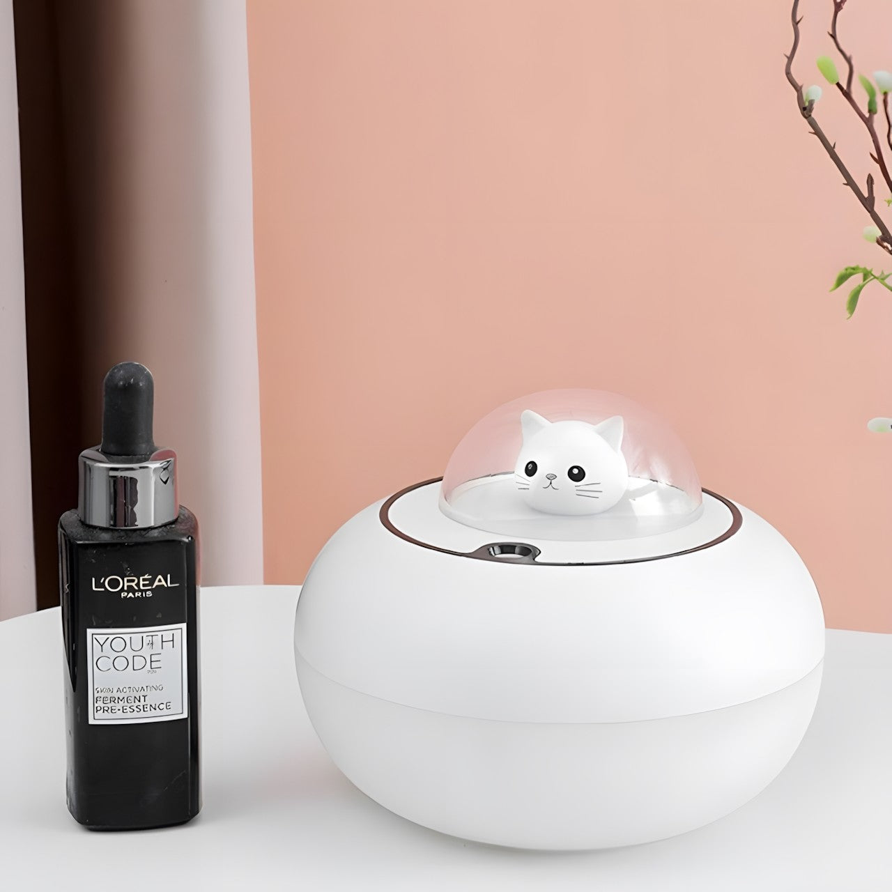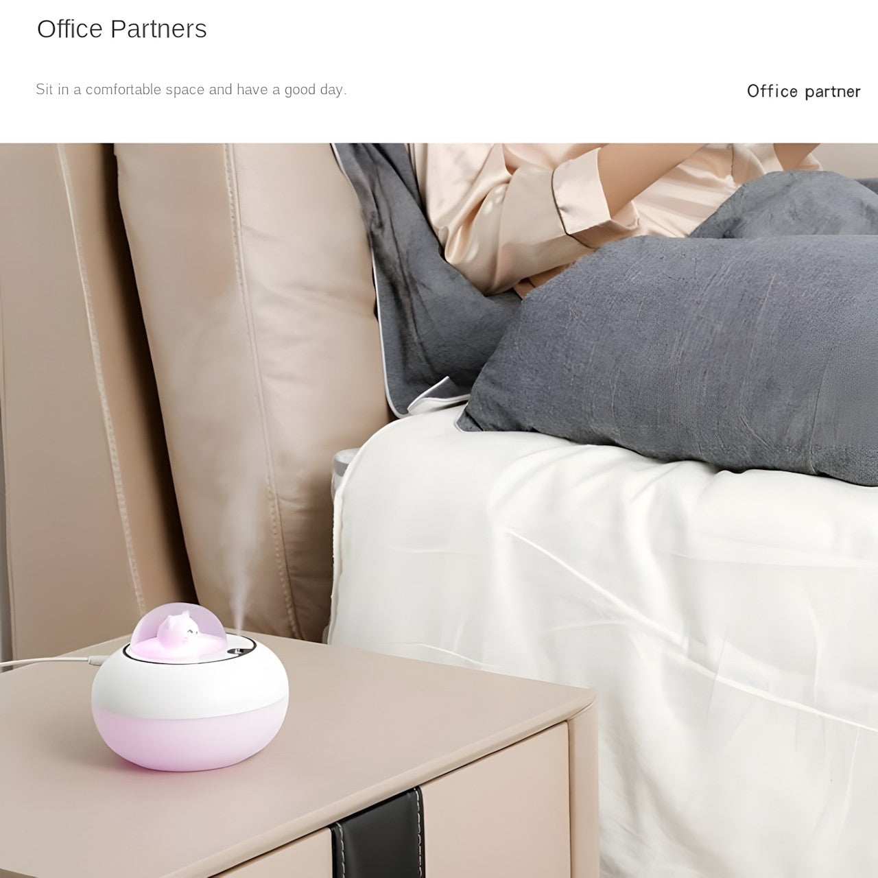 Efficient Humidification: This 300ML cat-themed ultrasonic humidifier efficiently disperses a cool, soothing mist, ideal for indoor environments, cars, or office spaces, enhancing air quality and moisture levels quietly and effectively.