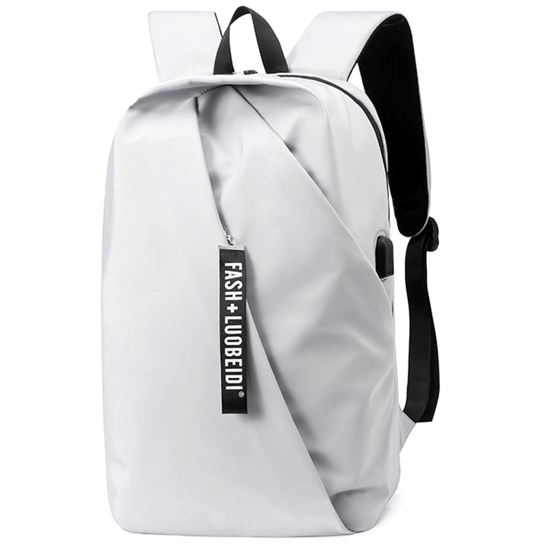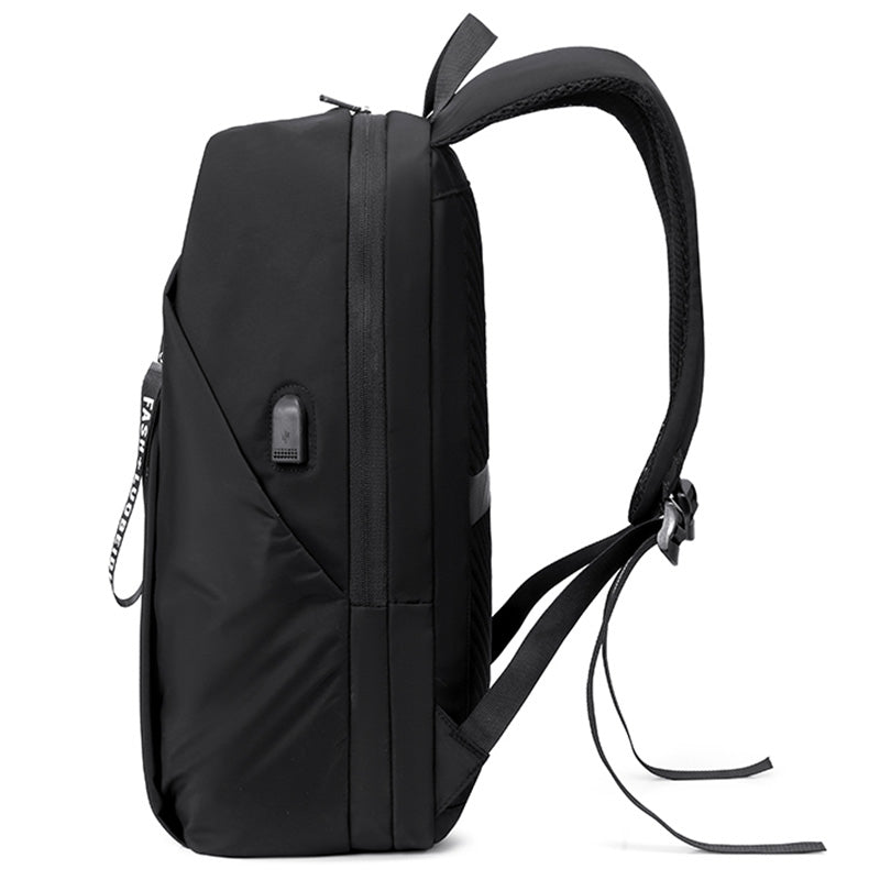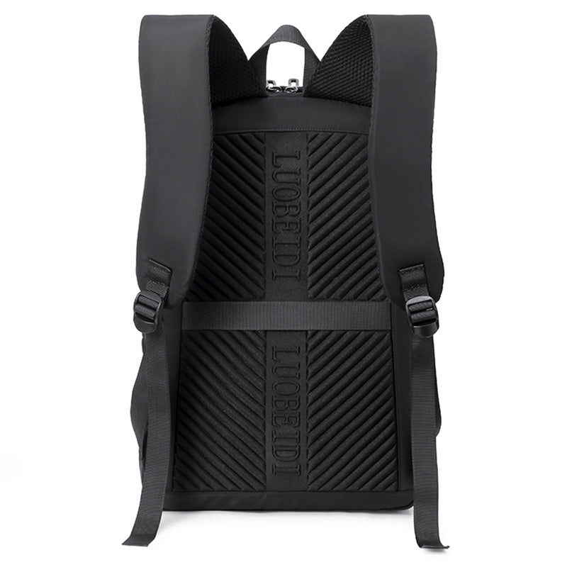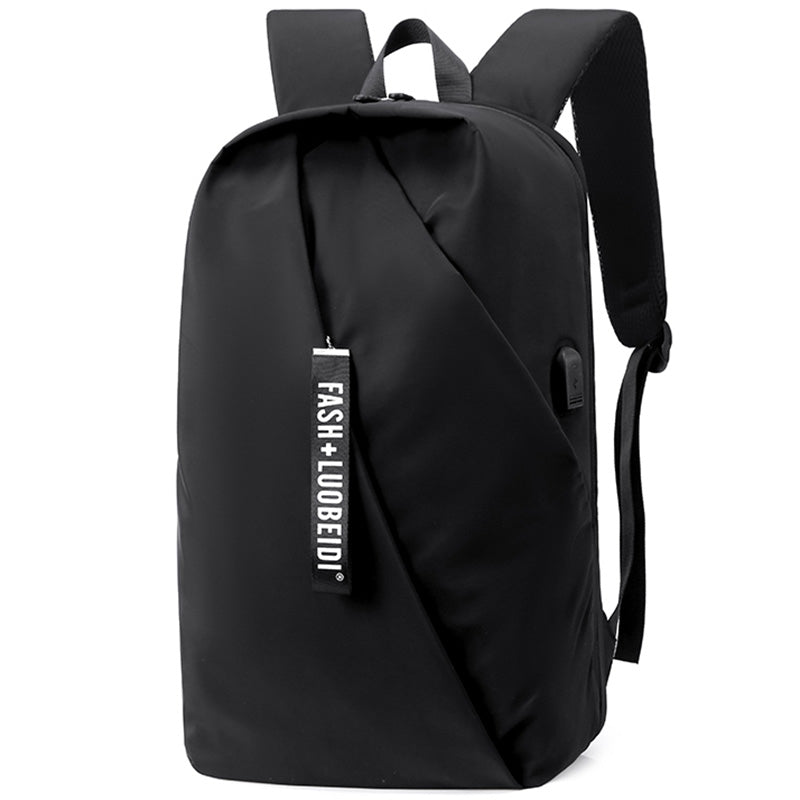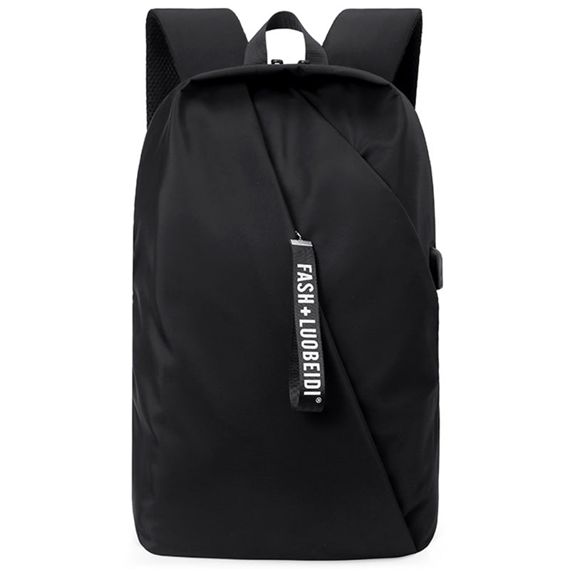 Men's Water-resistant Nylon Material Backpack Casual Business Computer Bag with USB Interface and Trolley Fixing Strap