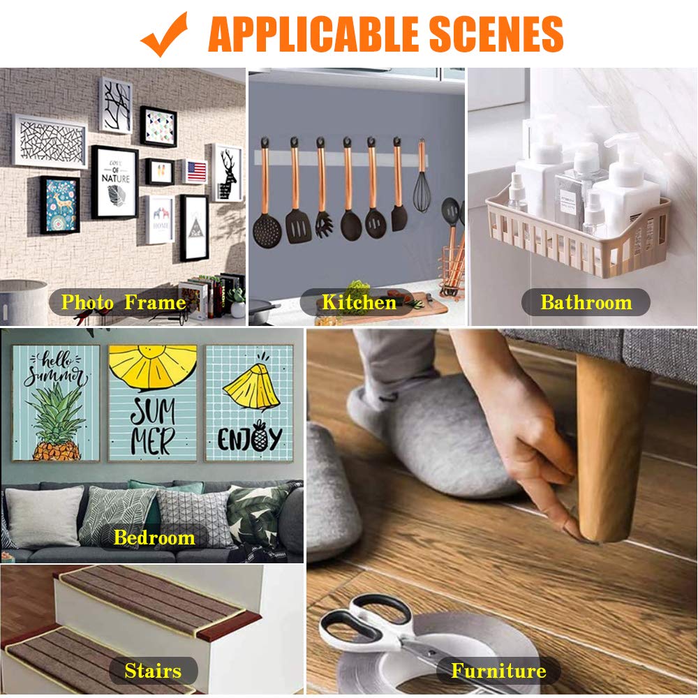 The double-sided adhesive tape can be used in all aspects of life, such as kitchen, office, living room, carpet, picture frame, car hold or tools.
