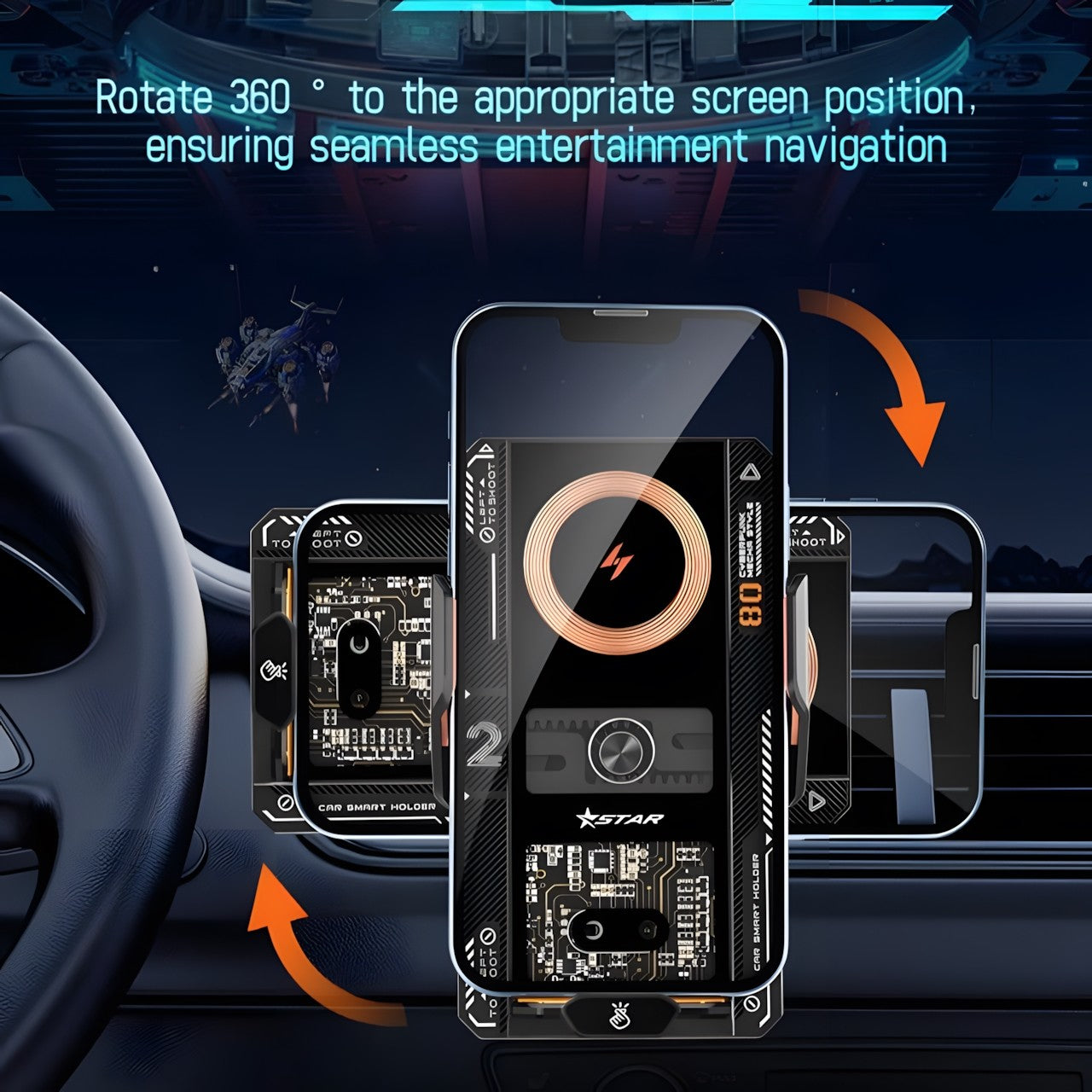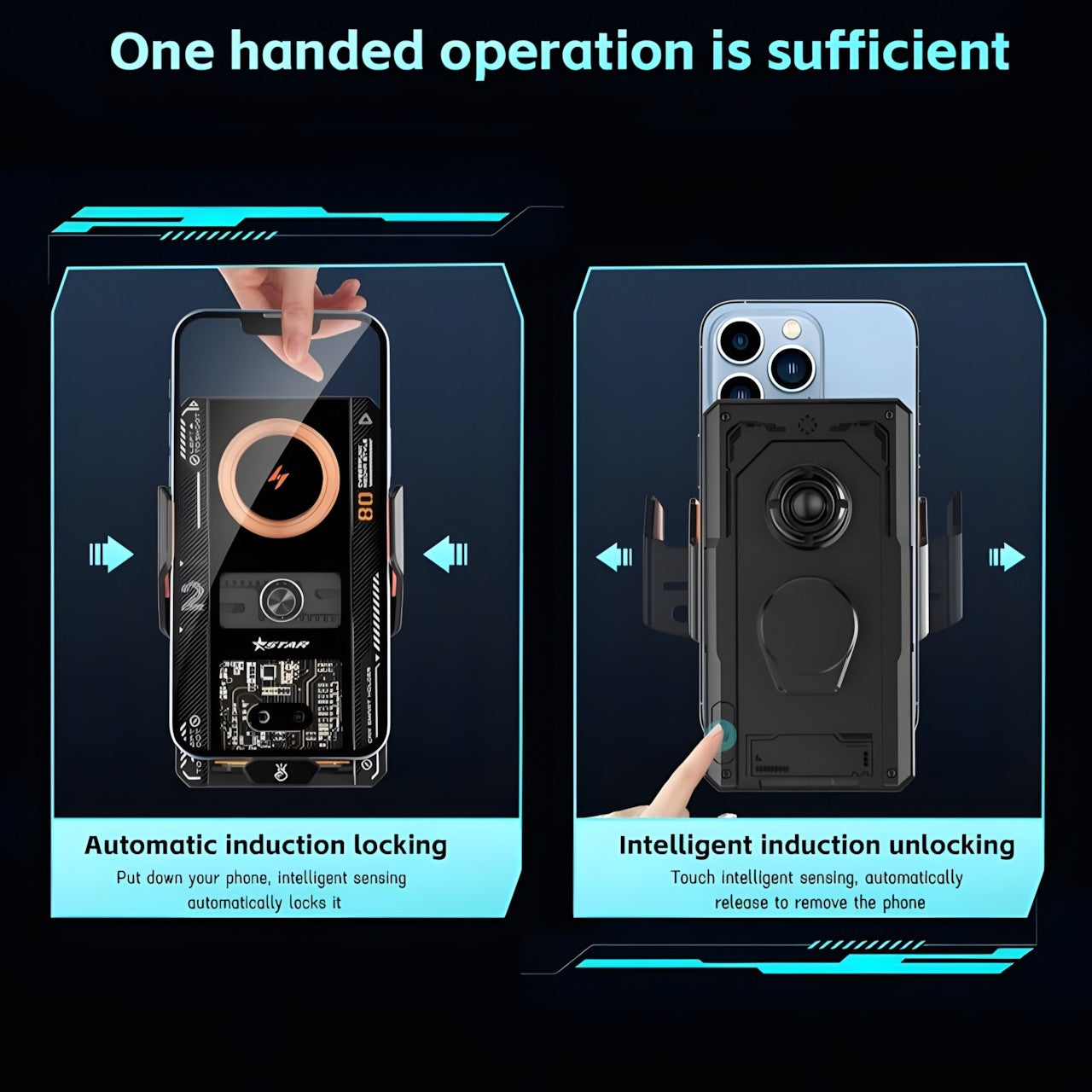 Magnetic Sensor Technology: Integrated with advanced sensor technology, the mount automatically detects your phone, securing it with a strong magnetic hold and ensuring quick, effortless clamping.