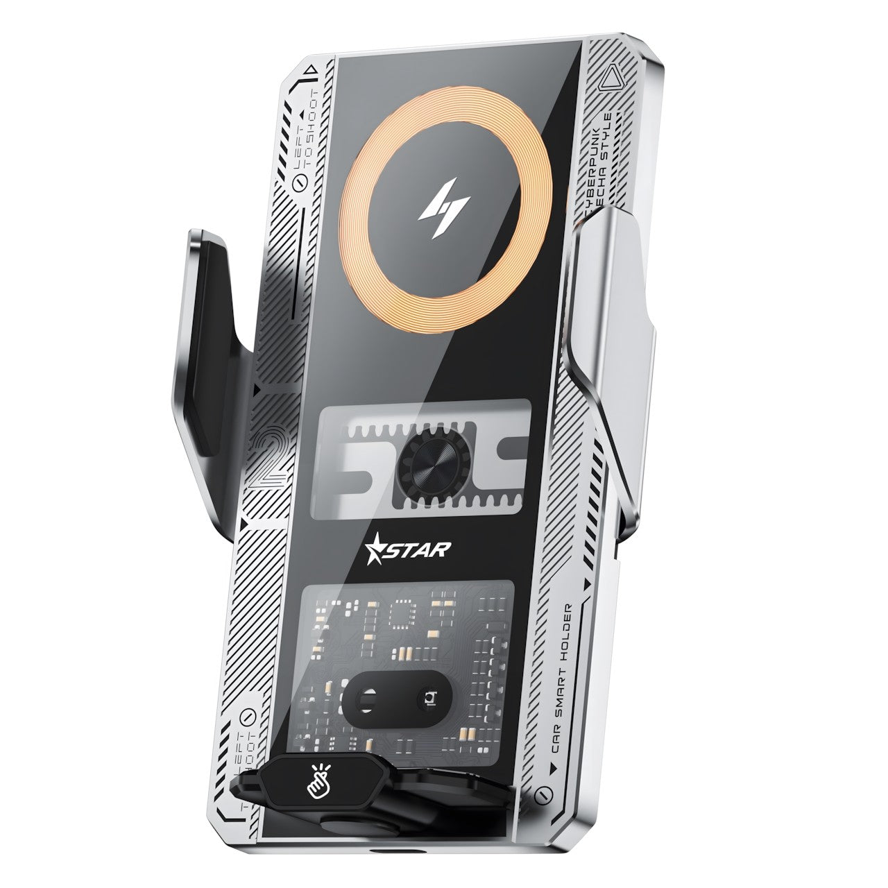 66W Magnetic Transparent Mech Super Fast Charge Wireless Car Charger Phone Mount with Sensor Operation, Engine-Off Release, and Navigation Stand