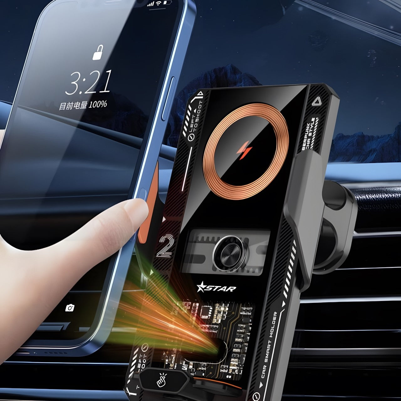 Ultra-Fast 66W Wireless Charging: Delivering top-speed wireless charging with a 66W output, this mount rapidly powers your smartphone, minimizing charging time even during short drives.