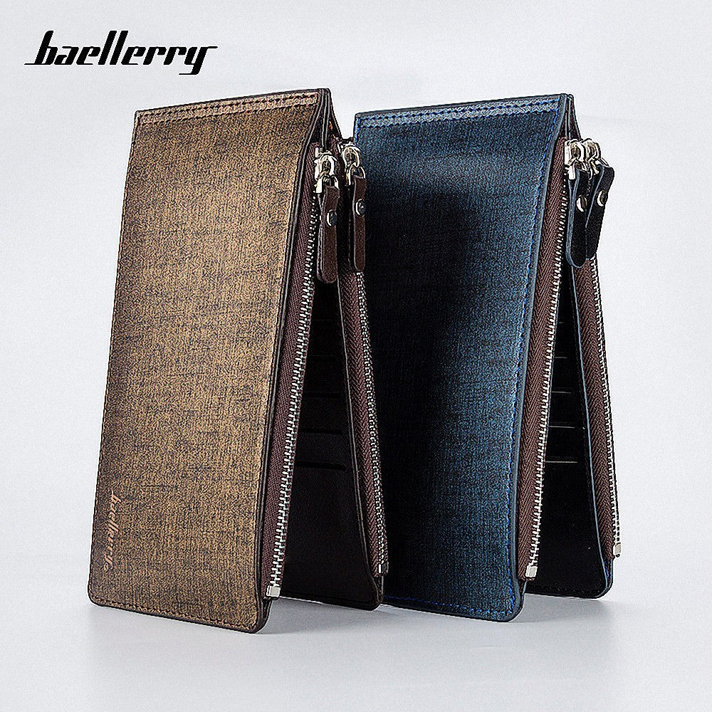 Baellerry Solid Color Men Cell Phone Money Photo Card Clutch Wallet