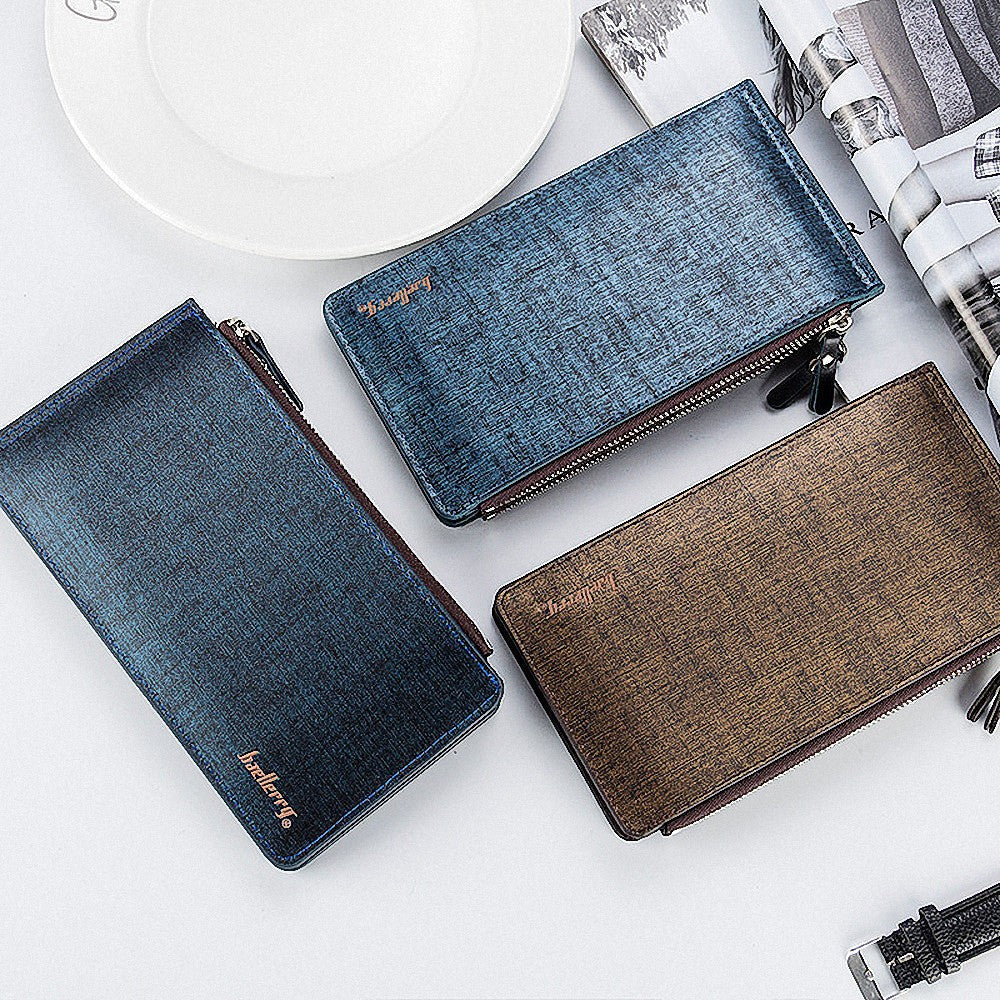 Pure color clutch wallet with zipper snap fastener closure type for men card, SIM card, phone ( size of the phone ≤ 5 inch ), cash, photo, etc.