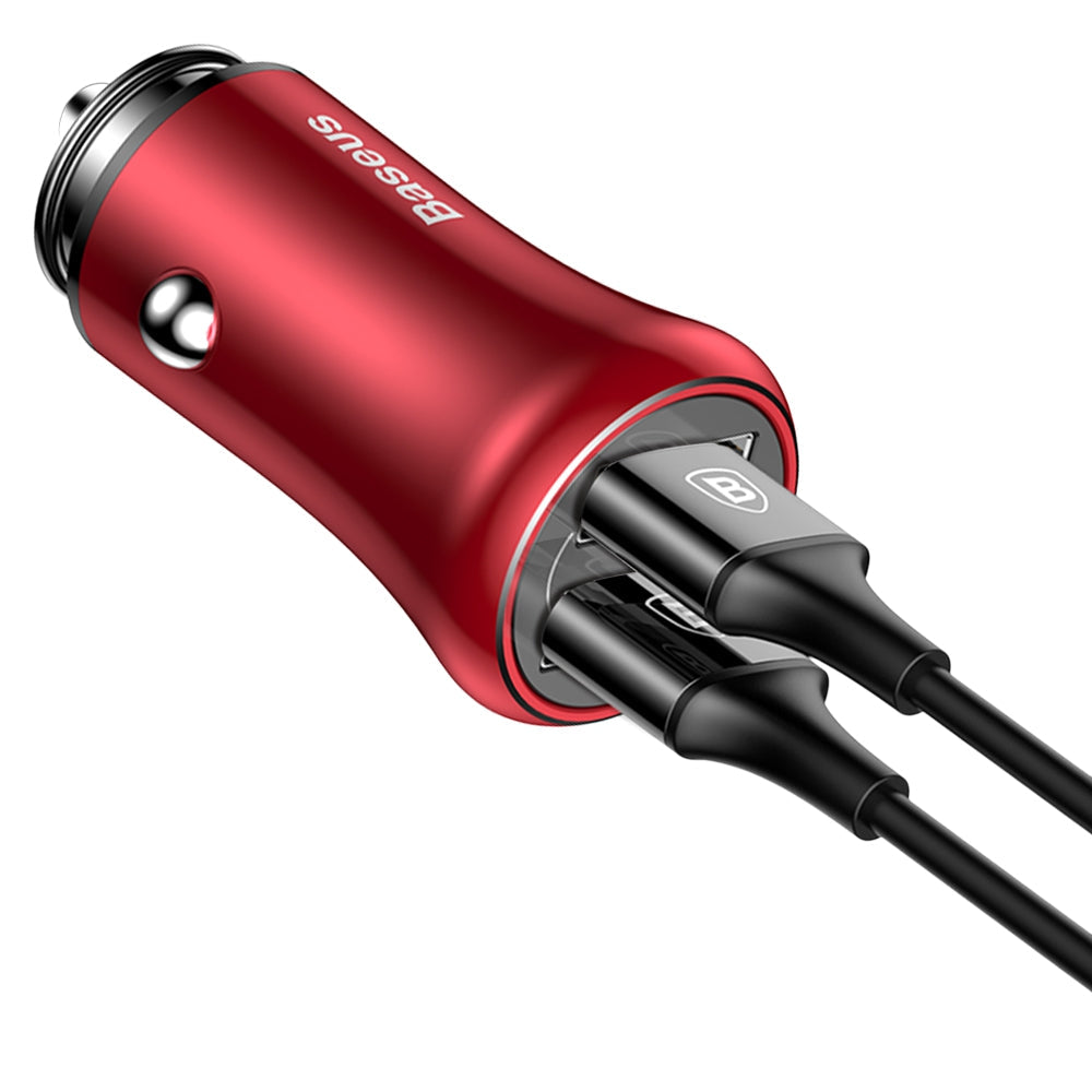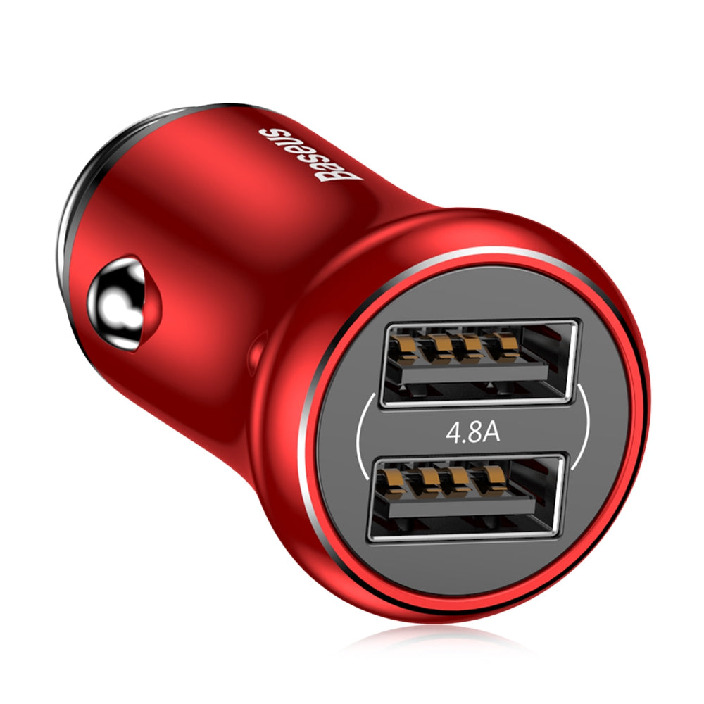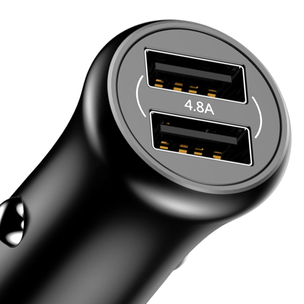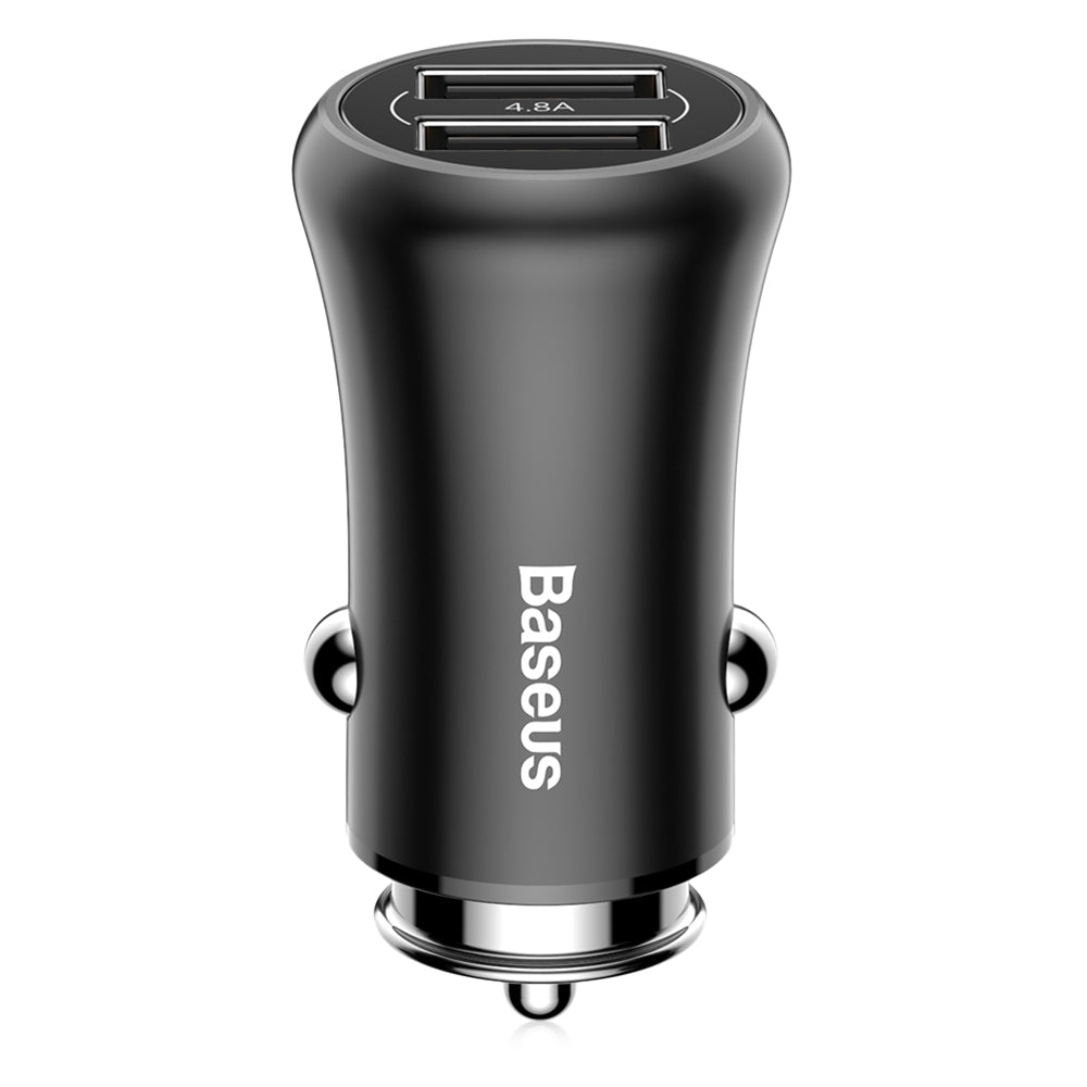 - With dual output and 4.8A high current, Baseus car charger charges digital devices quickly.