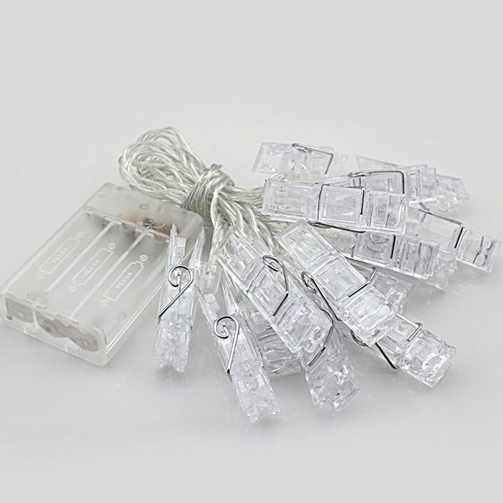 ● 20 clear photo-clip light, each clip contains an LED that emits warm white light.