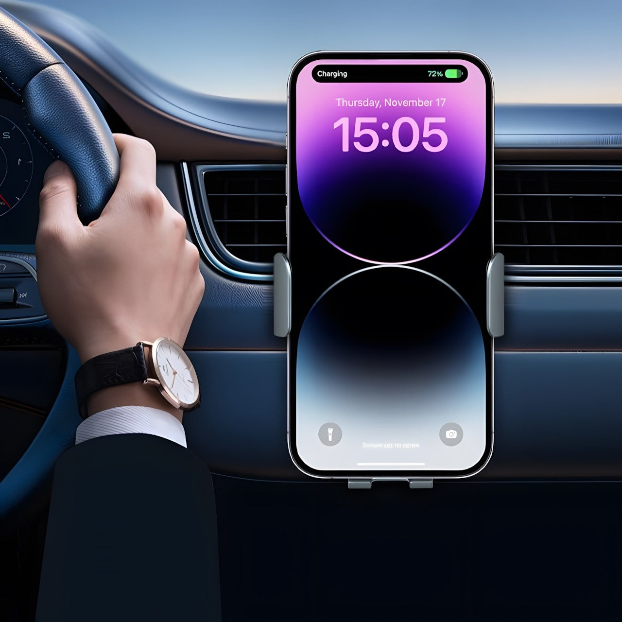Universal Compatibility: Compatible with a wide range of smartphones, this wireless charger phone mount is an essential accessory for any driver, providing seamless wireless charging and a secure phone holder in one.