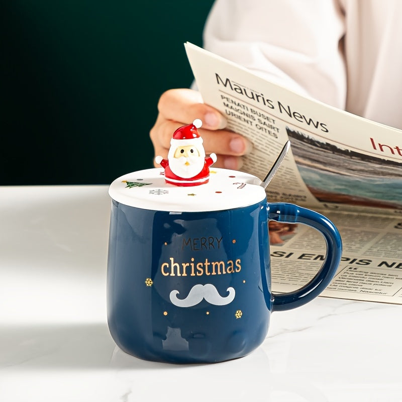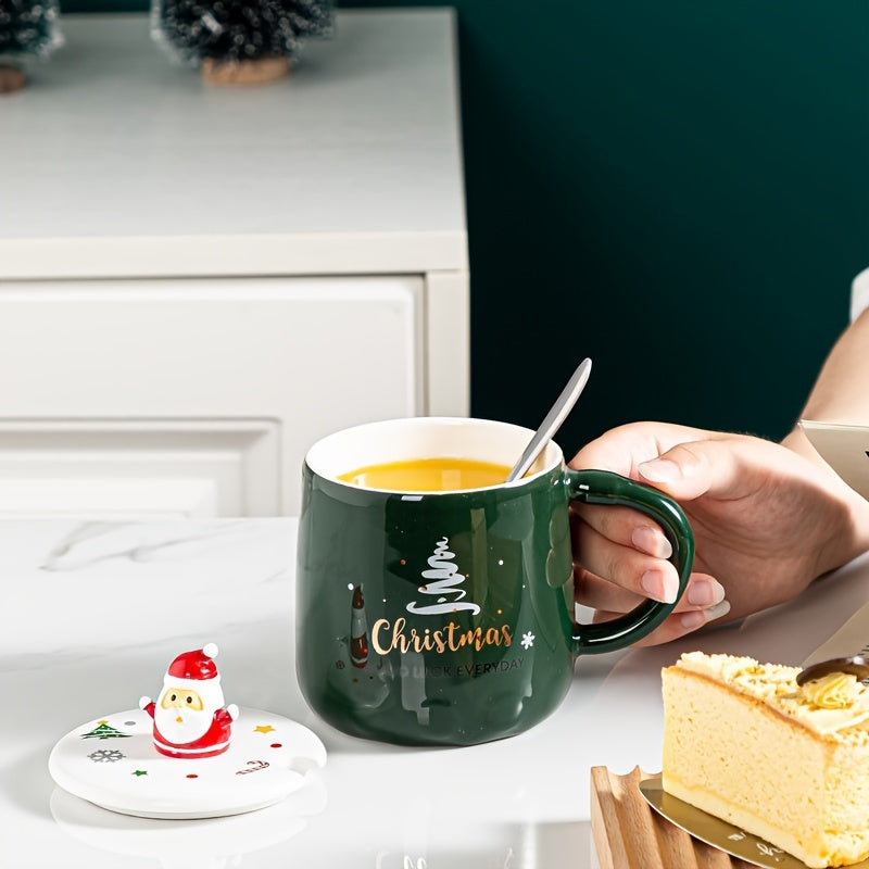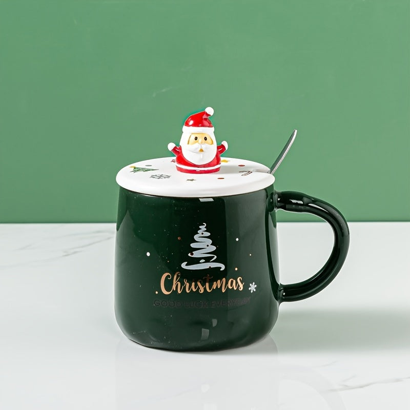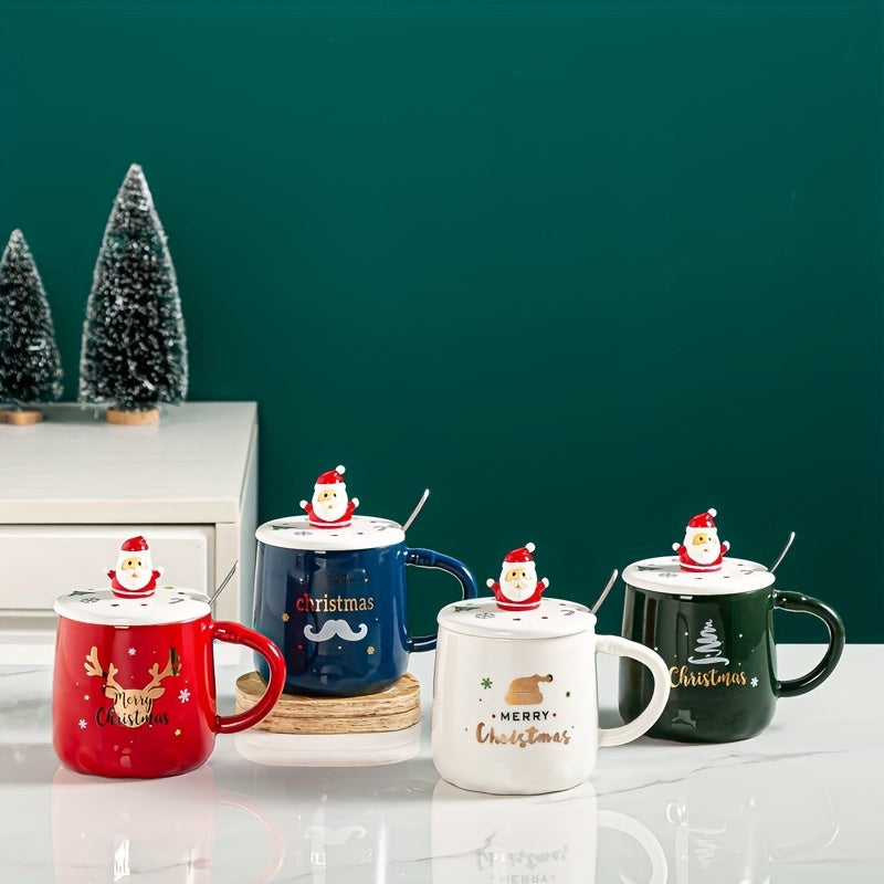 Ceramic Lidded Mug - Christmas Themed Coffee and Tea Cup, Perfect as a Festive Holiday Cup Gift