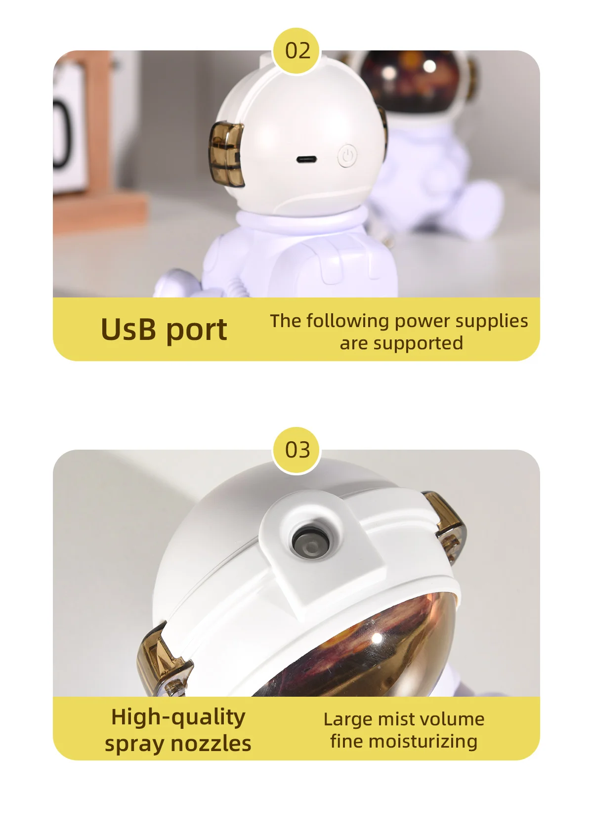 Creative Astronaut Model Humidifier Cotton Swab Air Humidifier Home Quiet USB Rechargeable Home Desktop Gift Star Moon Diffuser
