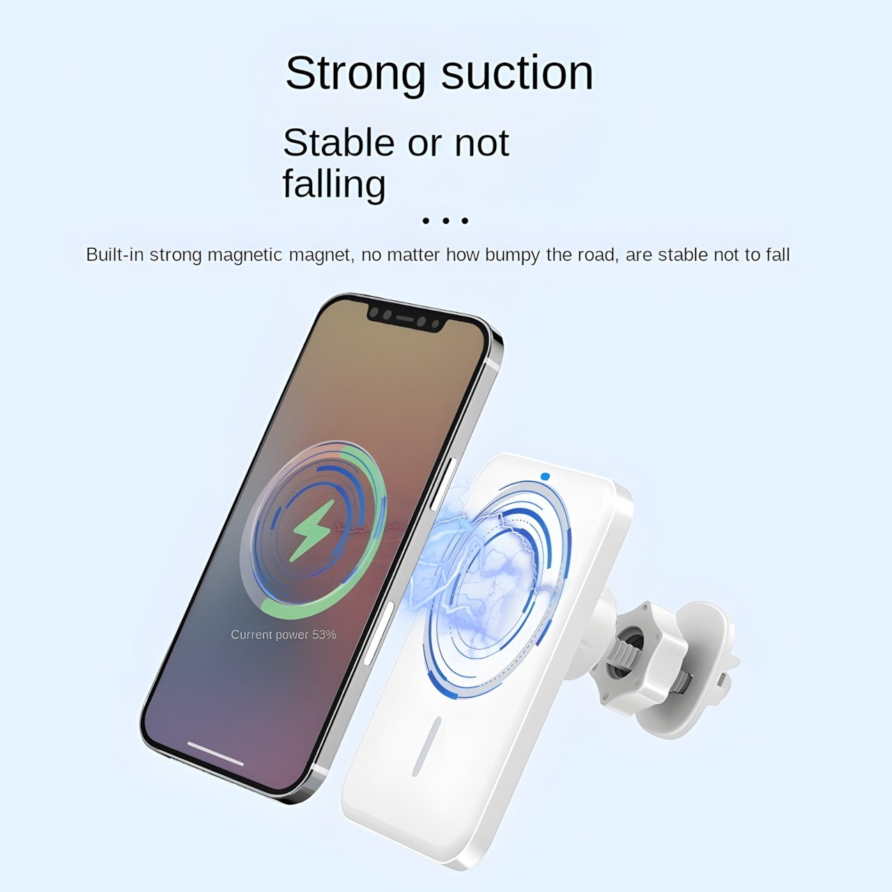 Magnetic Wireless Charging: This car wireless charger features a strong magnetic attachment, ensuring your phone stays securely in place while charging, even on bumpy roads, providing a safe and reliable charging experience.