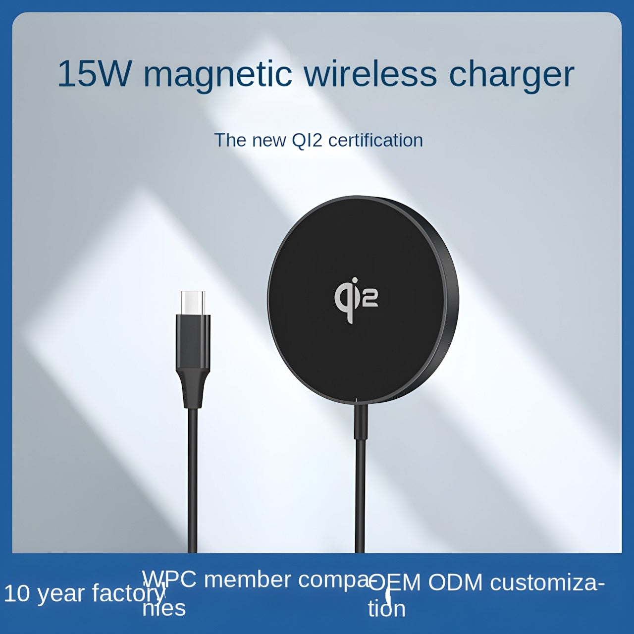Product highlights: OJD-Q203 is a qi2-MPP 15W magnetic charger, made of aluminum alloy, which supports charging mobile phones that meet QI standards